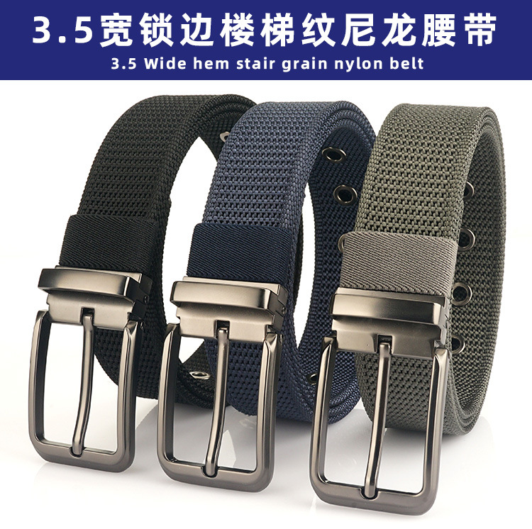 새로운 3.5 실버 핀 버클 캔버스 벨트 남성과 여성의 보편적 인 나일론 바지 벨트 간단한 캐주얼 두꺼운 구멍스토어 가기