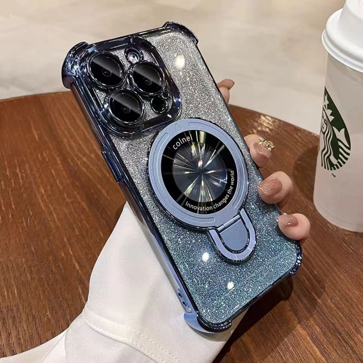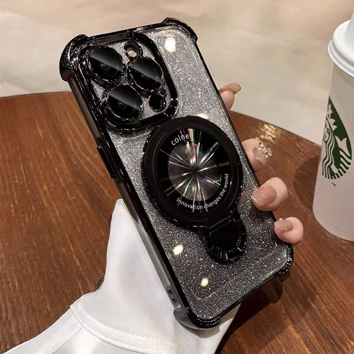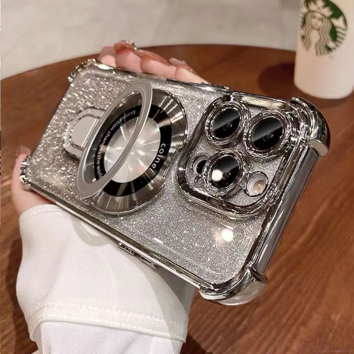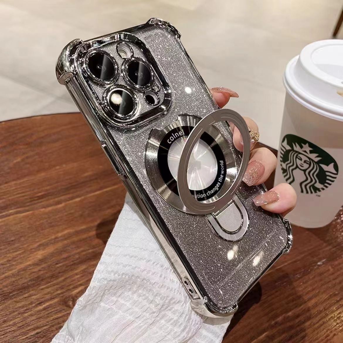 iPhone17 휴대폰 케이스에 적합, 4모서리에 에어백, 낙하 방지, 초박형 자석 스탠드, Apple 16PROMAX 하드 글리터