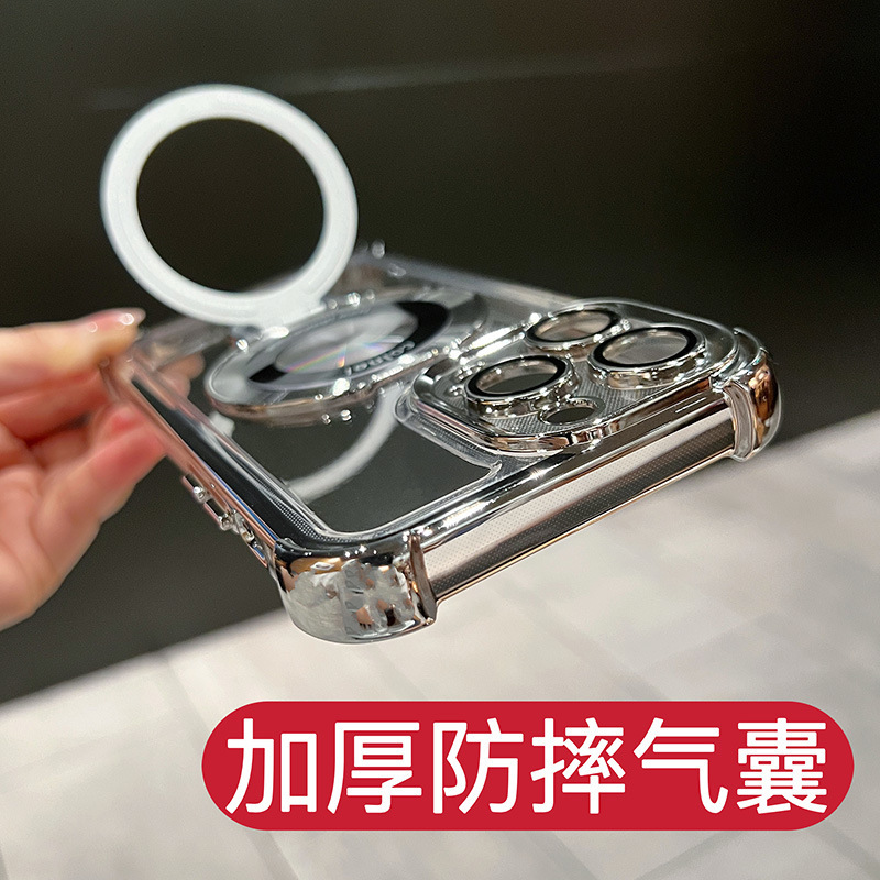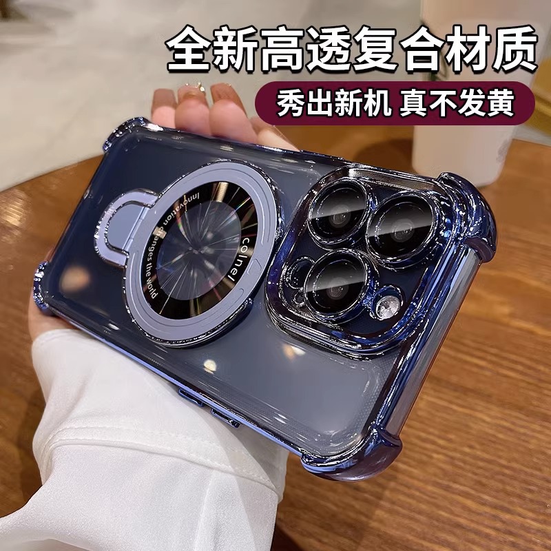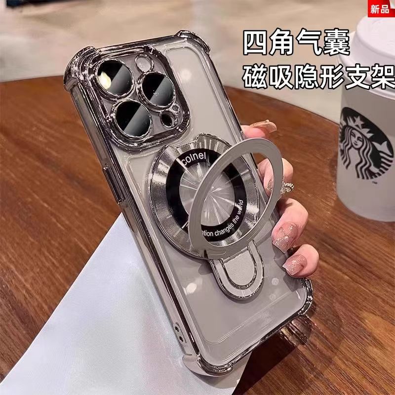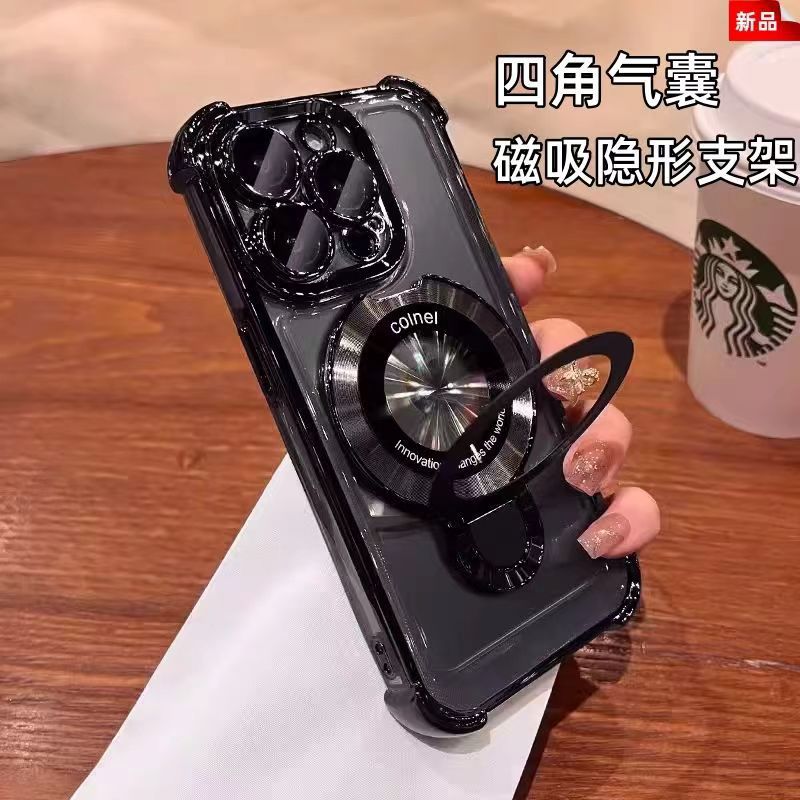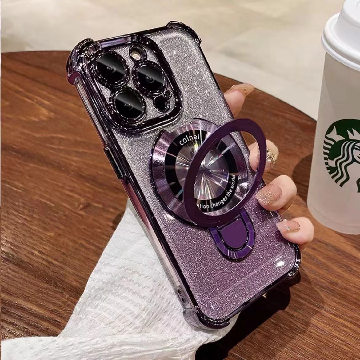 iPhone17 휴대폰 케이스에 적합, 4모서리에 에어백, 낙하 방지, 초박형 자석 스탠드, Apple 16PROMAX 하드 글리터