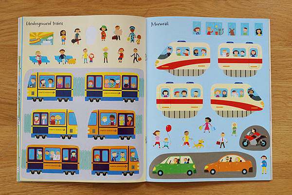 這本收藏著各類不同的火車、電車、地鐵等的貼紙跟場景圖
