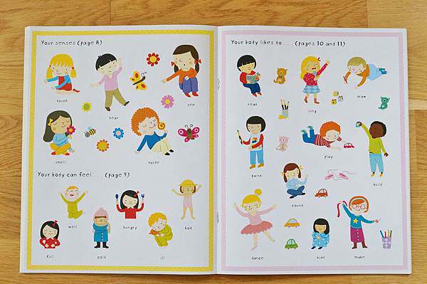 不只人體部位,連人身上穿的衣服、會做出的動作等、會產生的感覺知覺等,也全部都介紹到了,