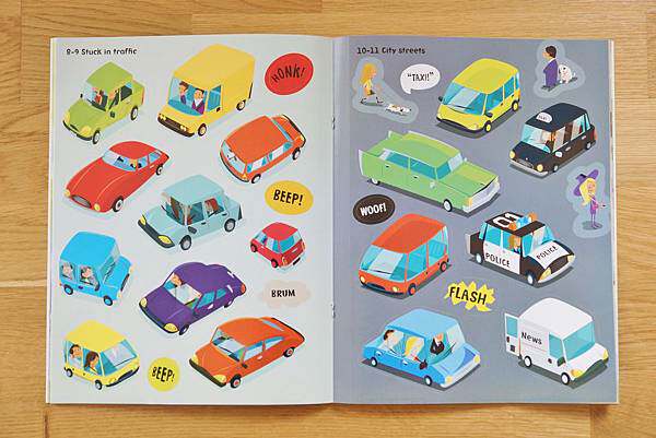貼紙頁中則是琳瑯滿目,各色、各種類的車款,