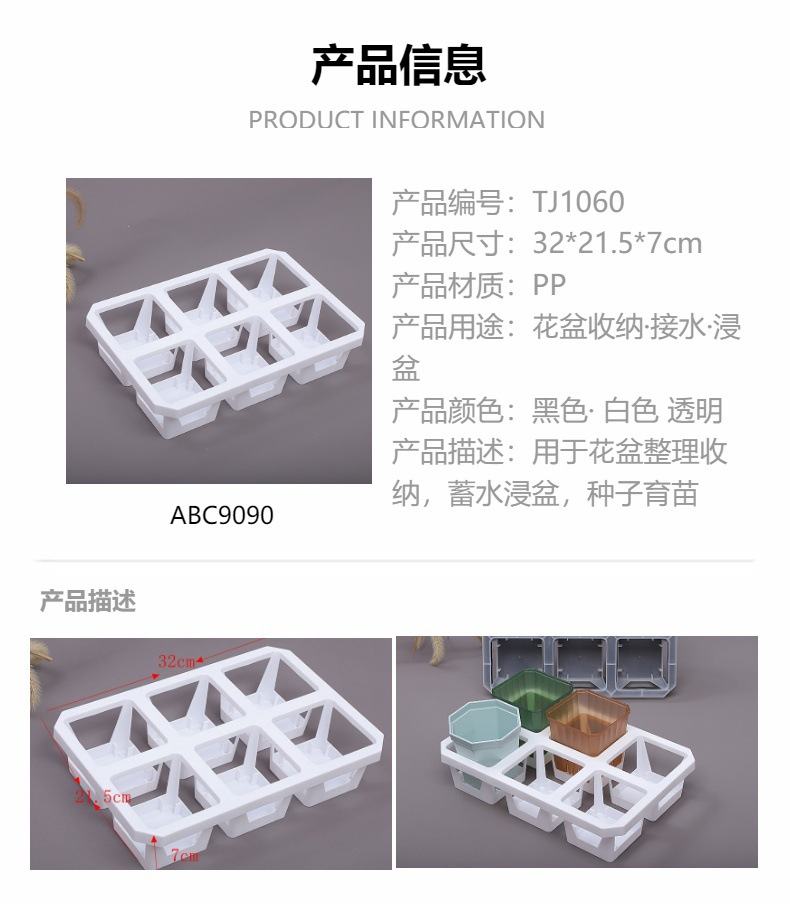 10 사각형 매칭 브래킷 6 구멍 플라스틱 꽃 냄비 물 저장 브래킷 꽃 냄비 조합 트레이 꽃 랙 10 고정 홀더