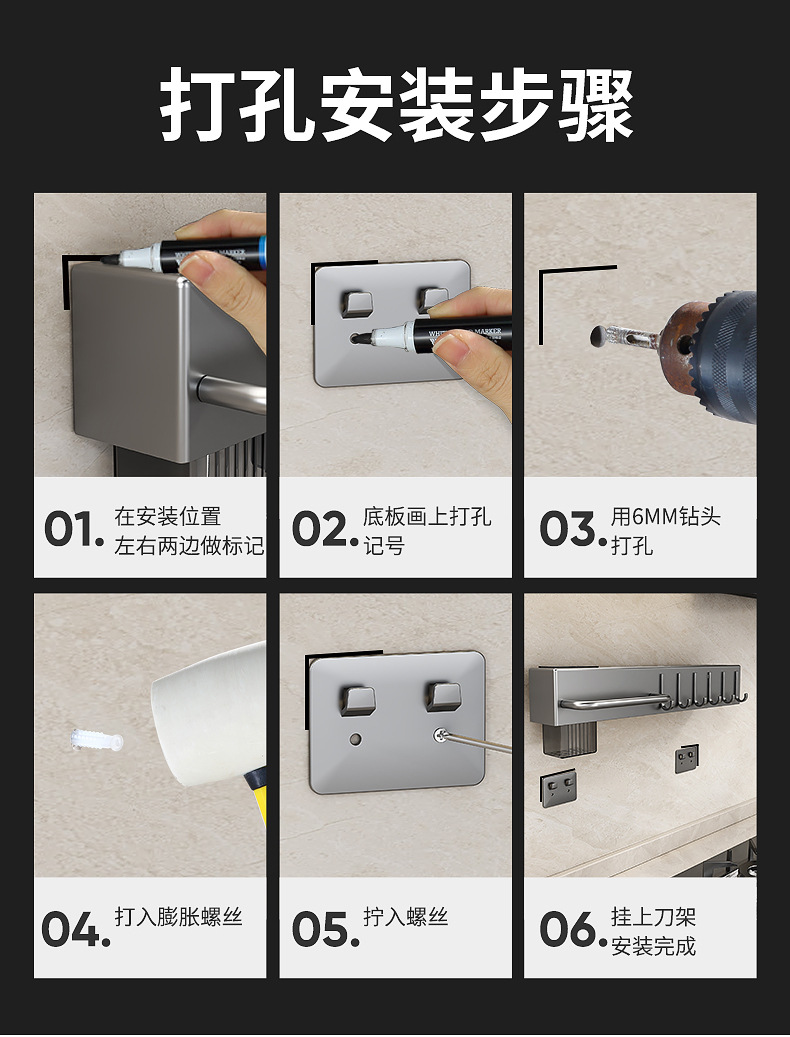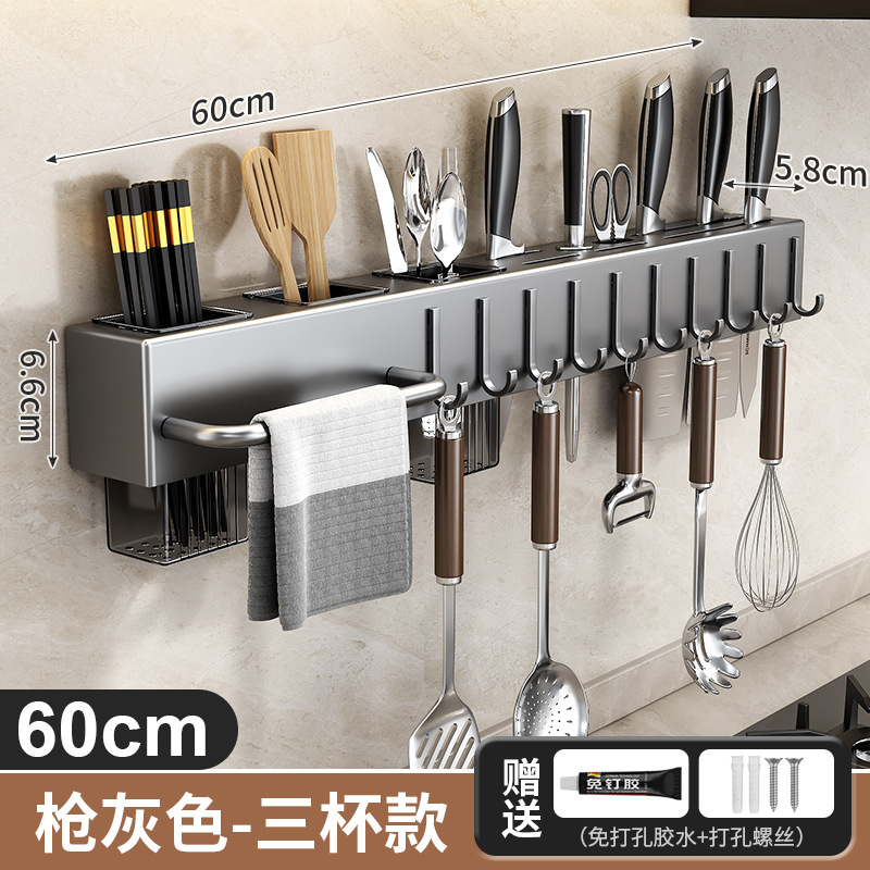 다기능 나이프 홀더 주방 나이프 공급 저장 랙 젓가락 케이지 통합 스토리지 랙 젓가락 튜브 벽에 장착 된 펀치 프리