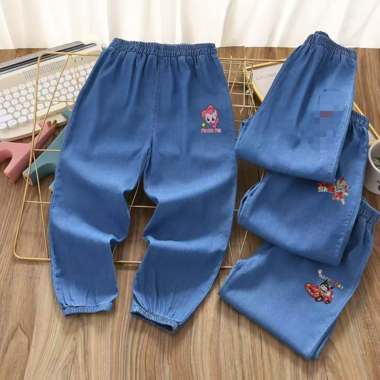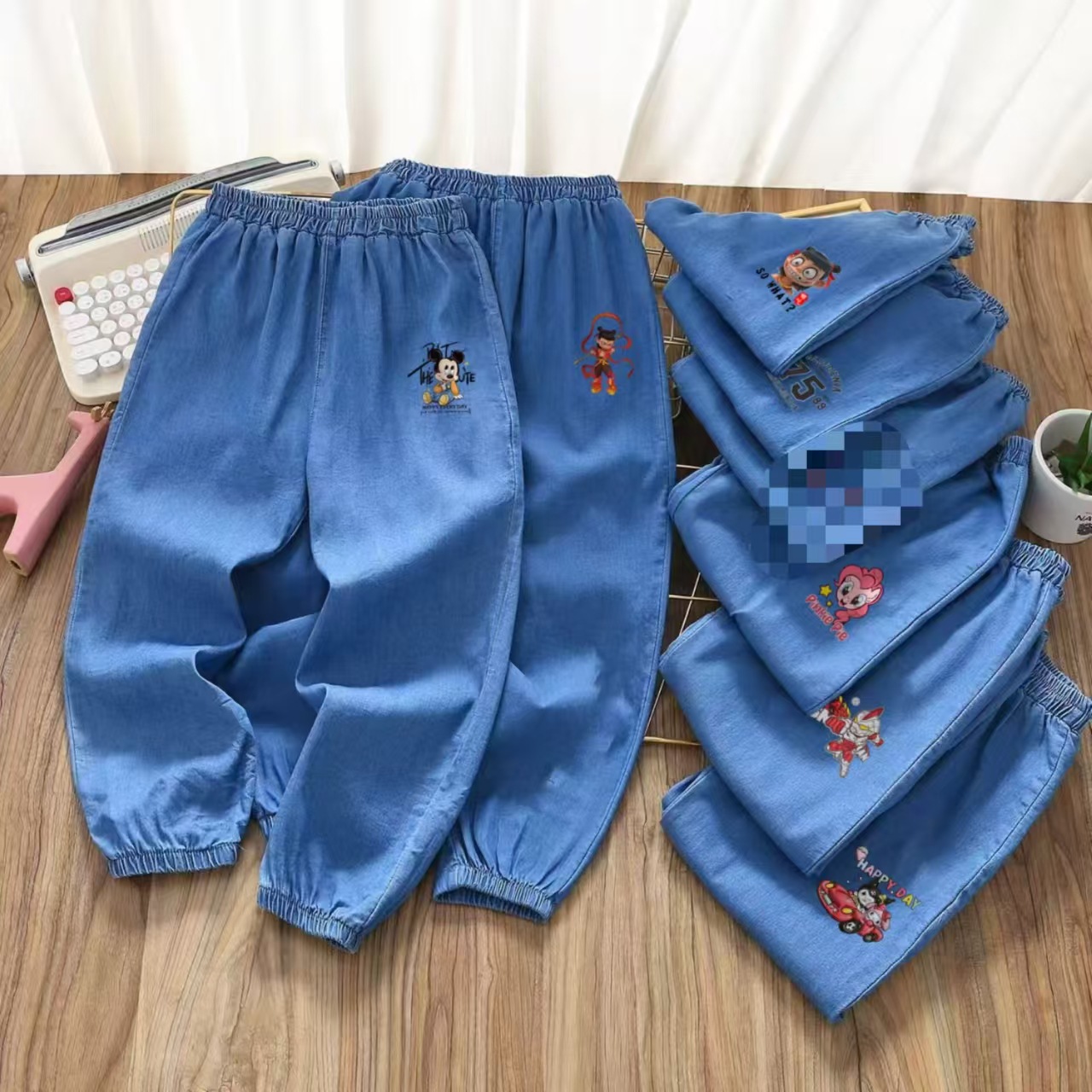 텐셀 데님 모기 바지 어린이 청바지 여름 소년 소녀 만화 어린이 바지 공장 도매스토어 가기