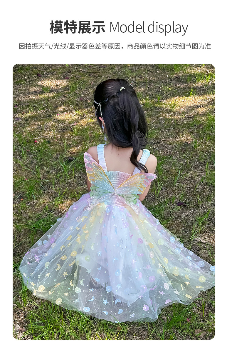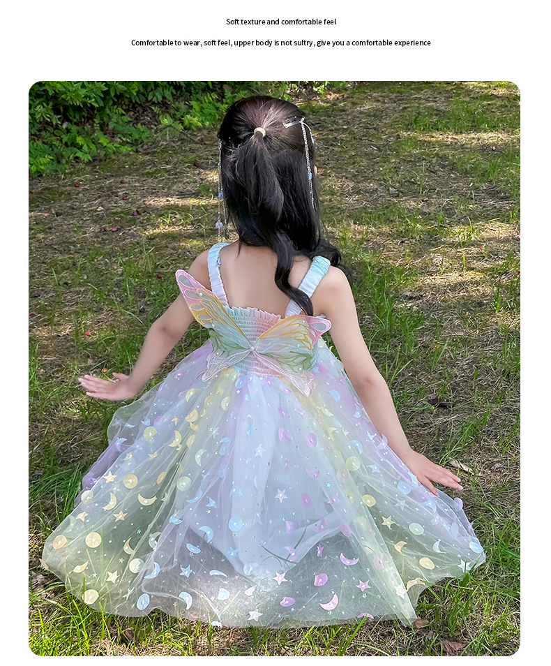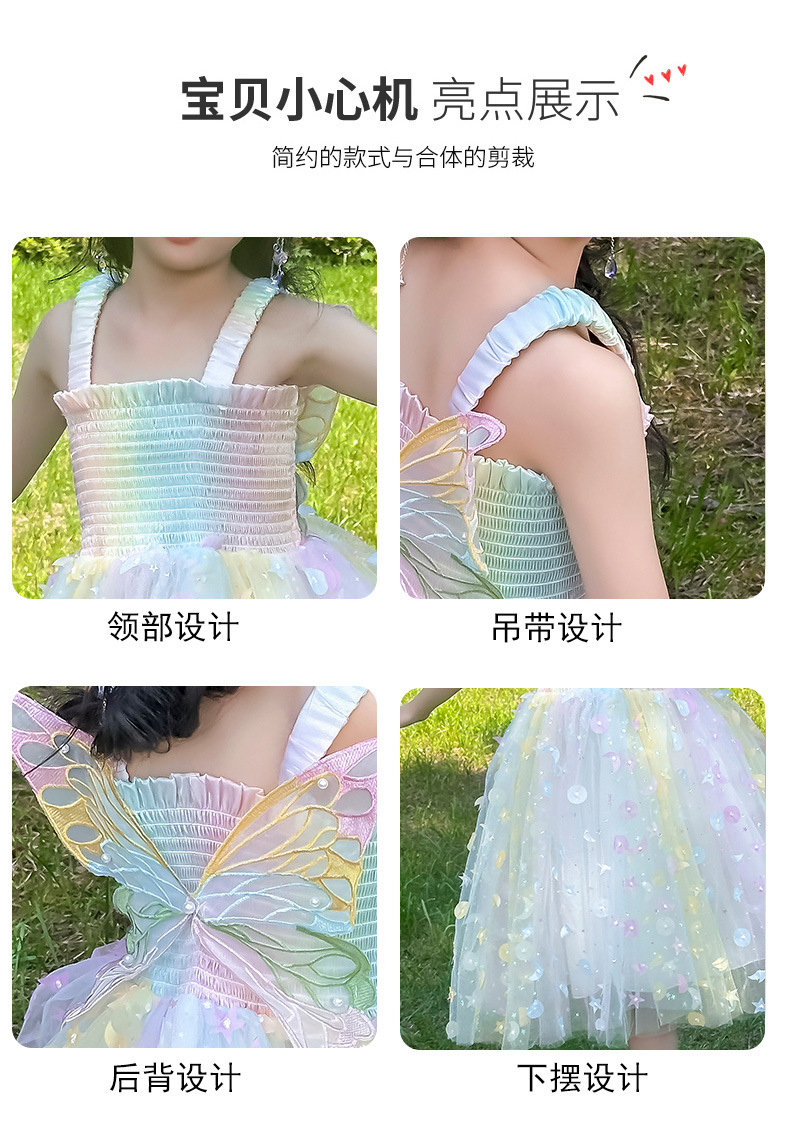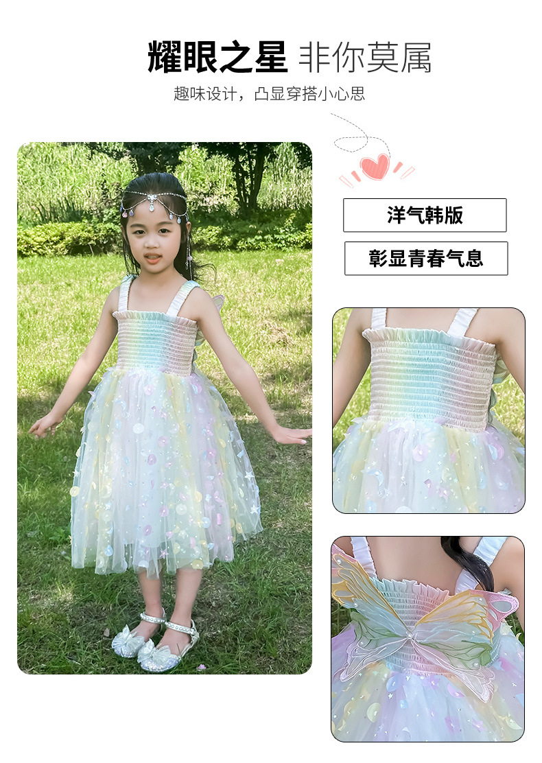 소녀의 원피스 2024 여름 새로운 어린이 판타지 엘프 나비 무지개 원피스 아기의 슬링 공주 원피스스토어 가기