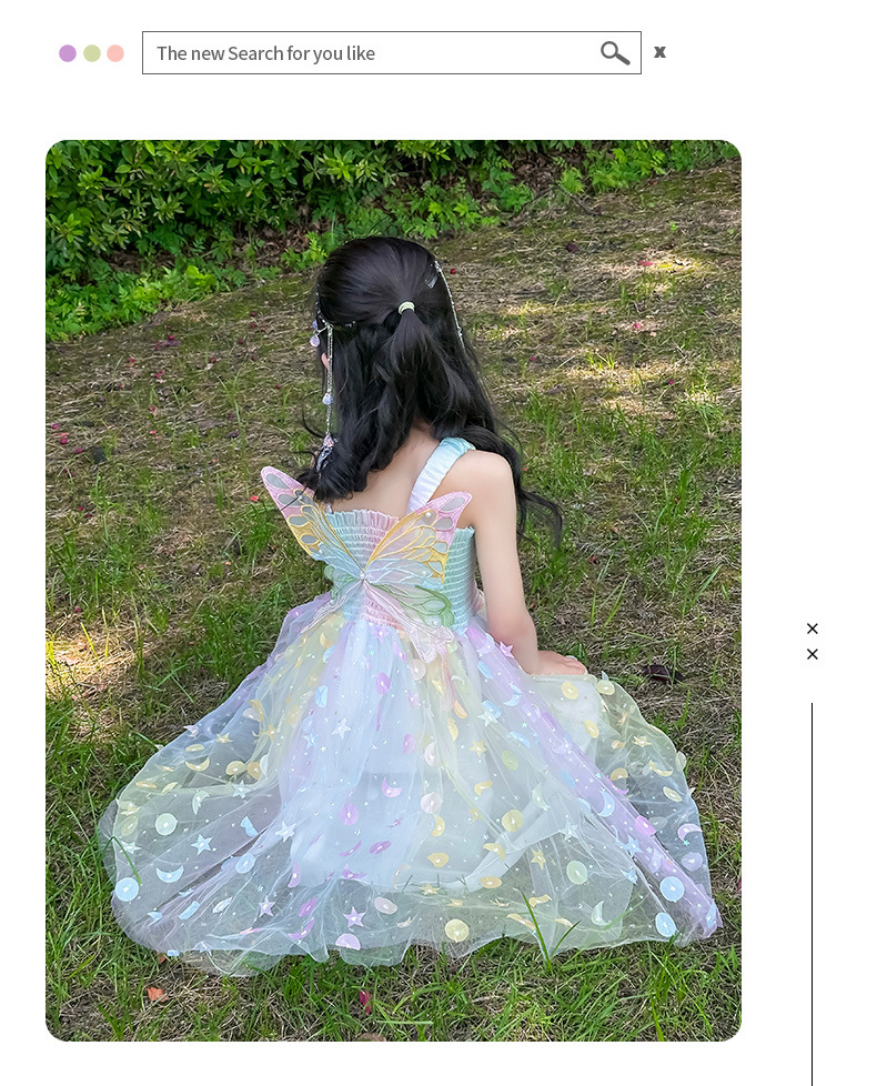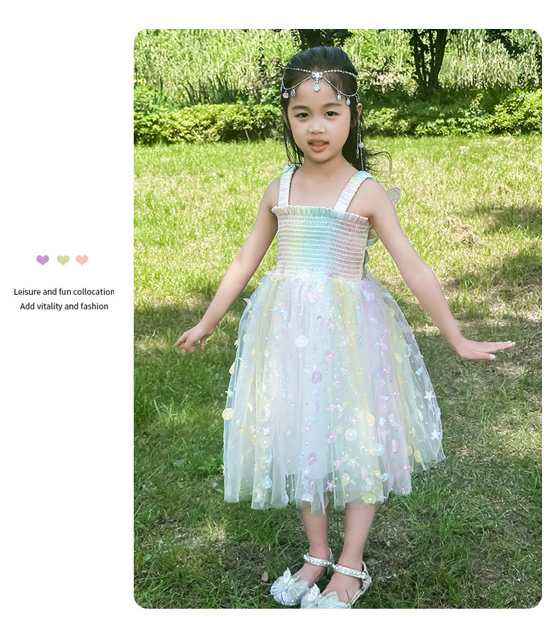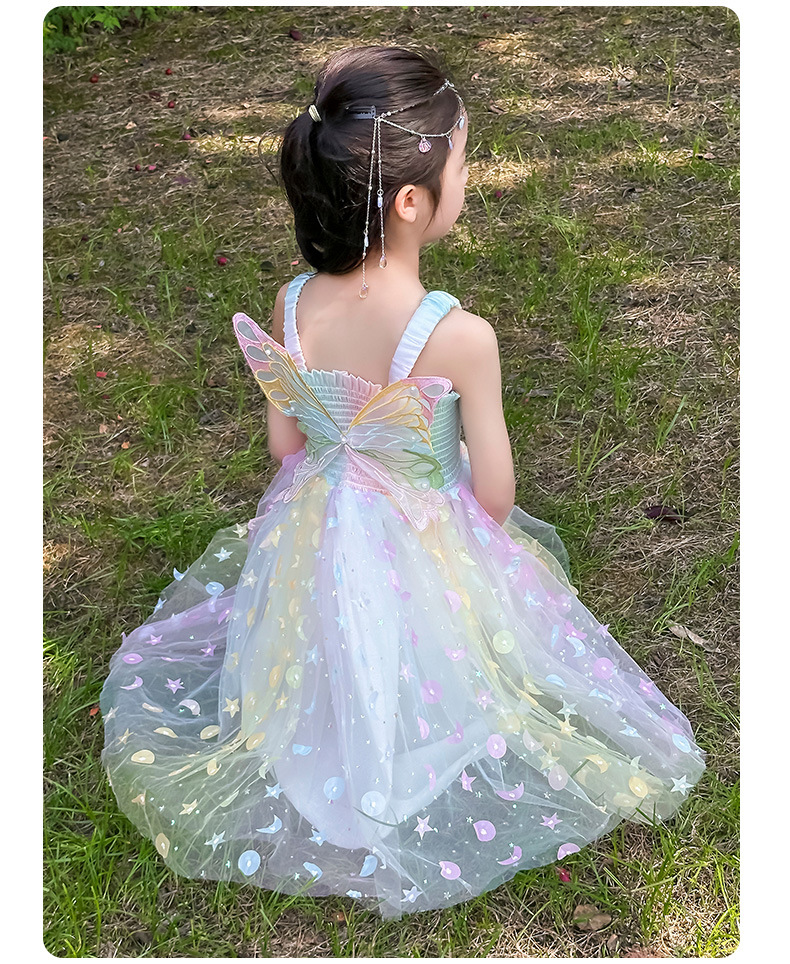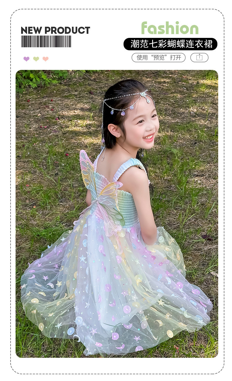 소녀의 원피스 2024 여름 새로운 어린이 판타지 엘프 나비 무지개 원피스 아기의 슬링 공주 원피스스토어 가기