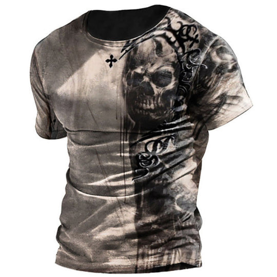 플러스 사이즈 남성 빈티지 프린트 대형 프로필 티셔츠 여름 야외 레저 느슨한 탑 재고