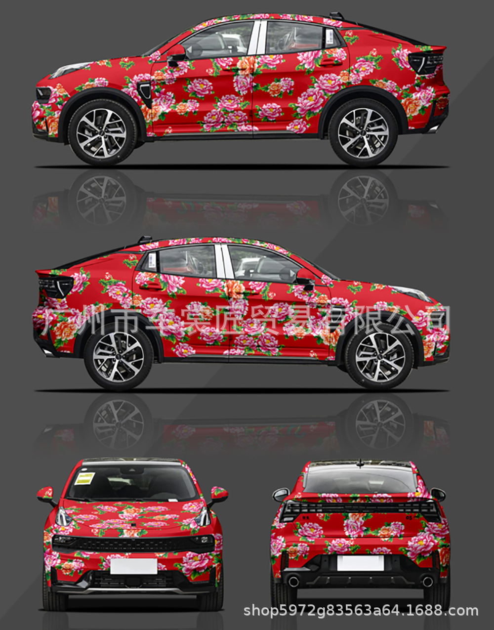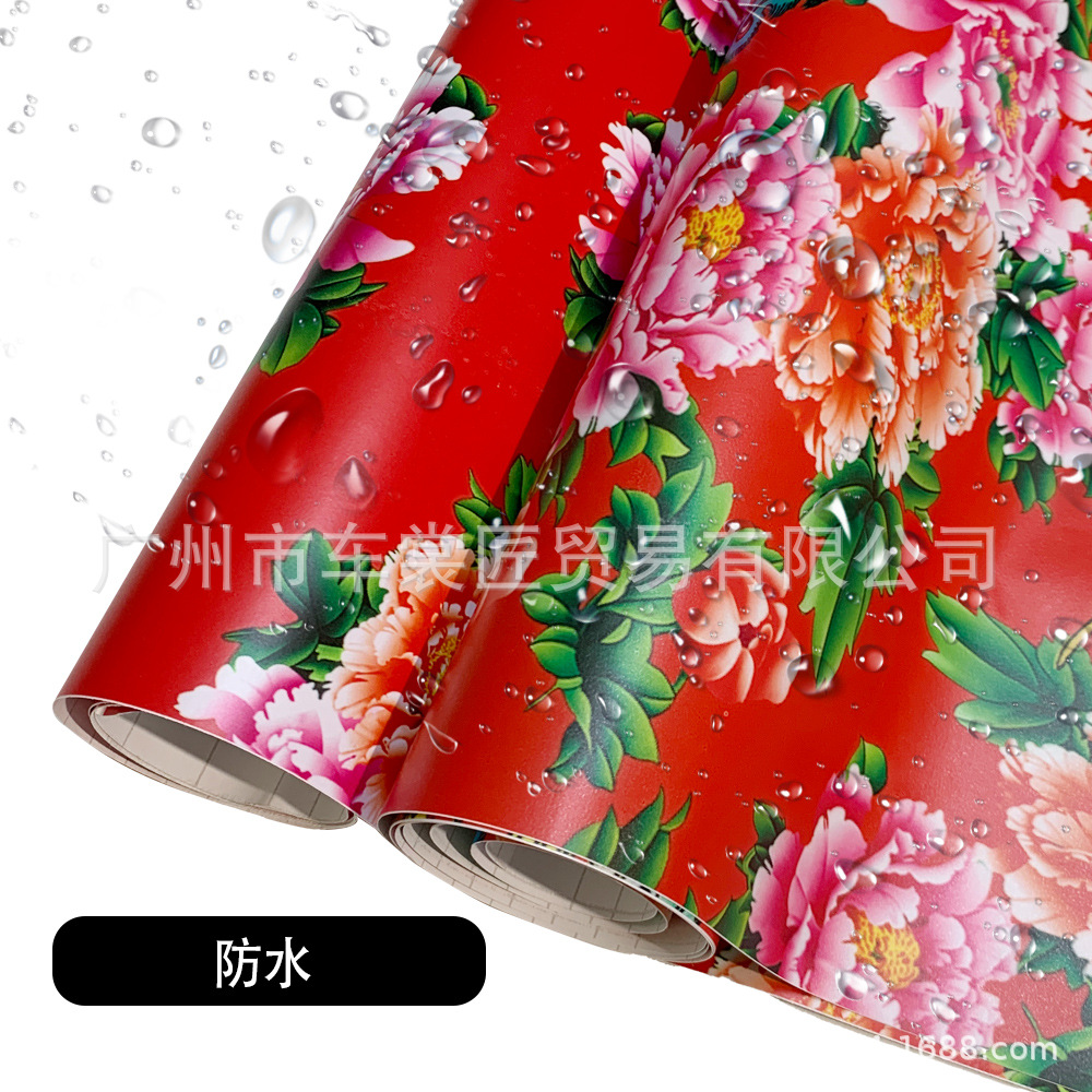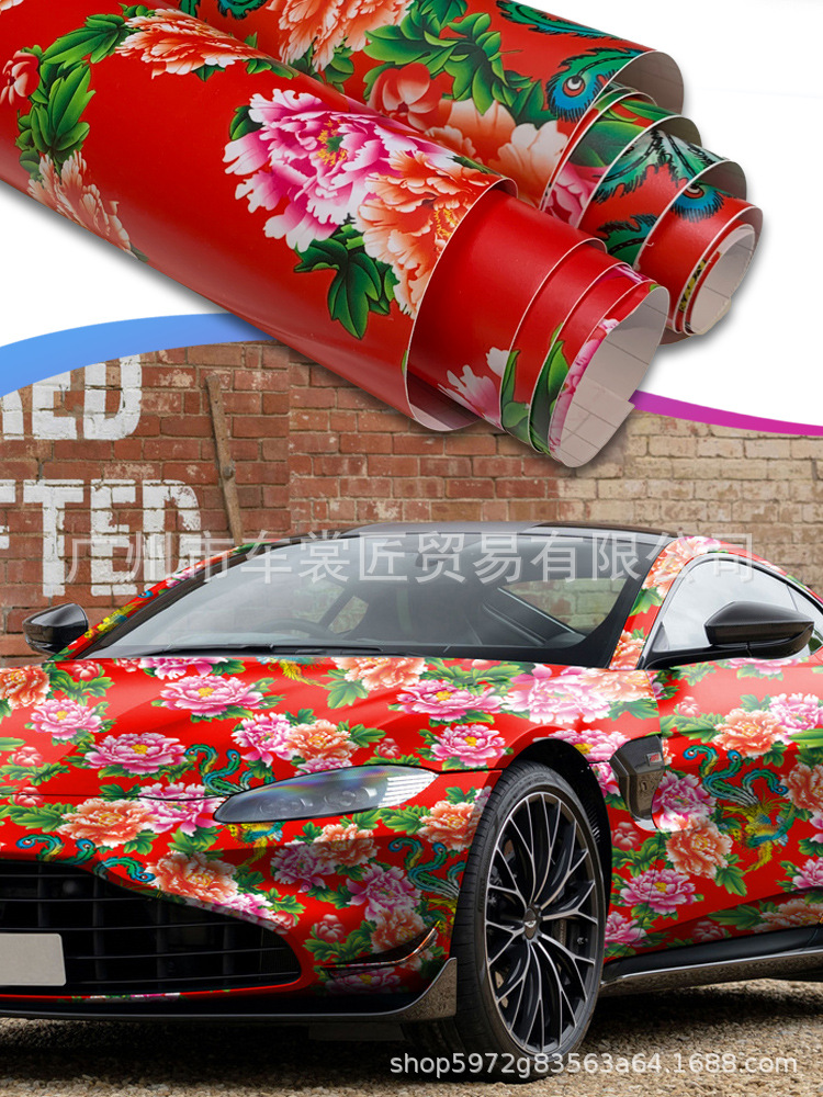 자체 접착 자동차 바디 컬러 변경 필름 북동쪽 대형 플로럴 재킷 중국 스타일 자동차 스티커 색상 변경 스티커 사이드 스커트 자동차 프론트 커버 갈랜드스토어 가기