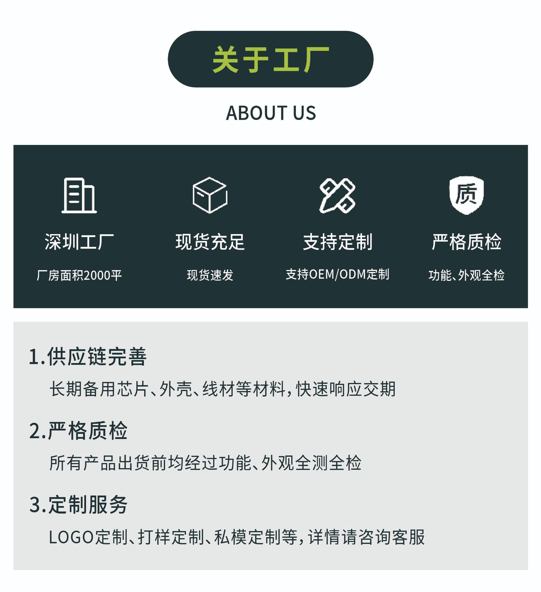 从产品的设计研发—模具开发—来料检验—生产组装—出厂测试等过程,均严格把控质量