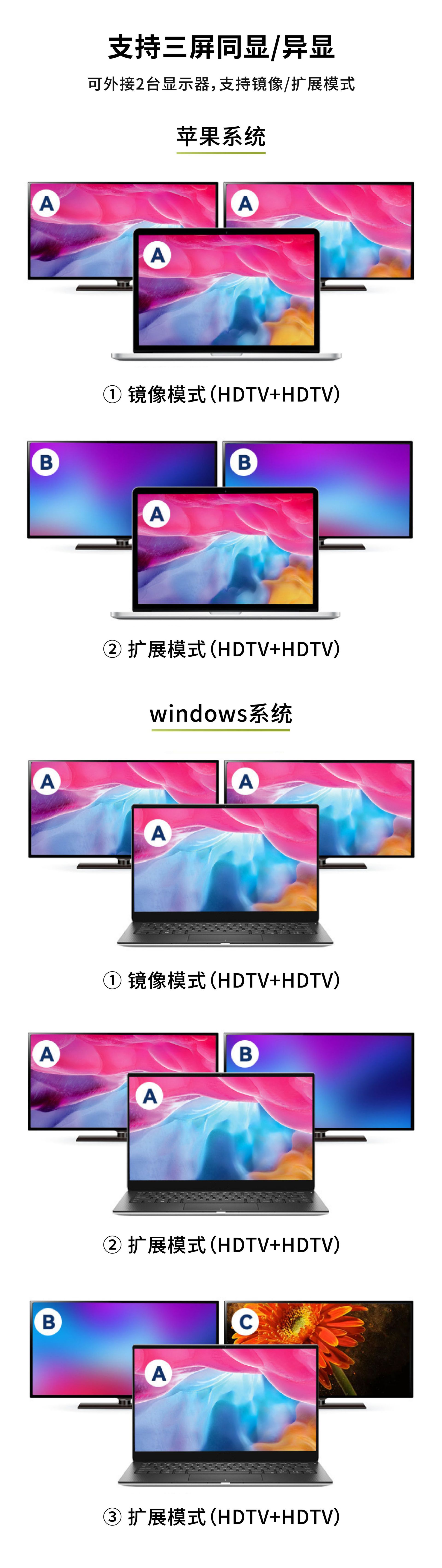 Type-c-듀얼 hdtv 4-in-one 도킹 스테이션 스위처 4k hd 확장 화면 usb 비디오 컨버터스토어 가기