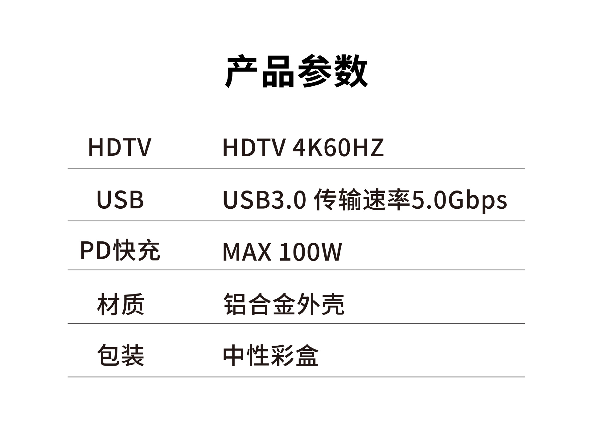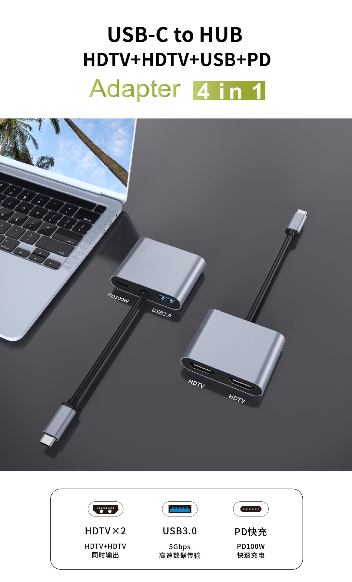 • 3 in 1(HDTV+USB+PD)