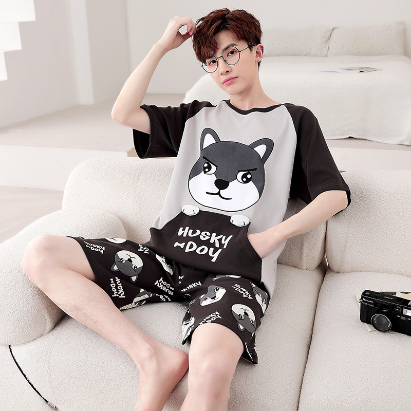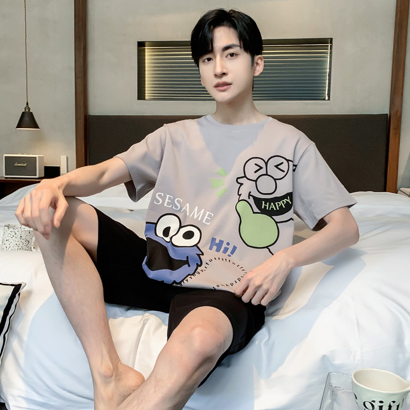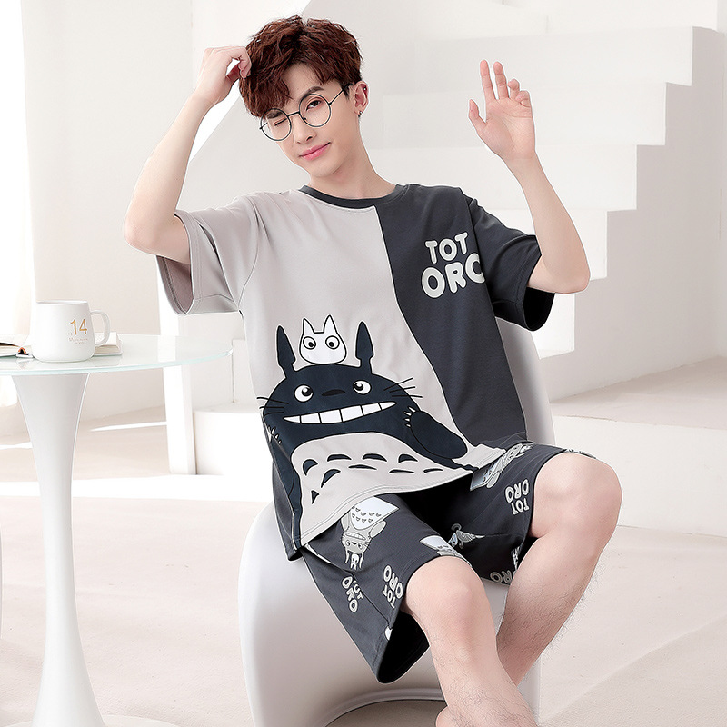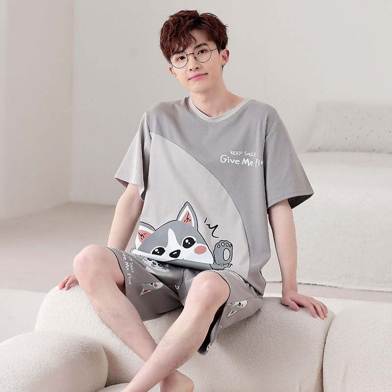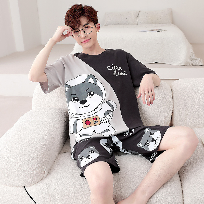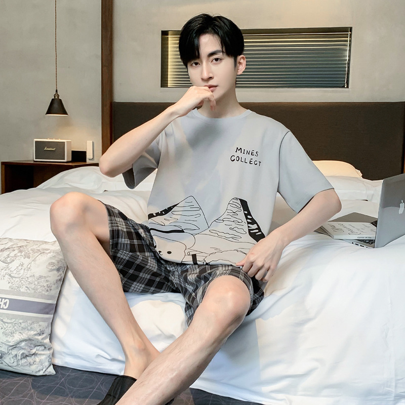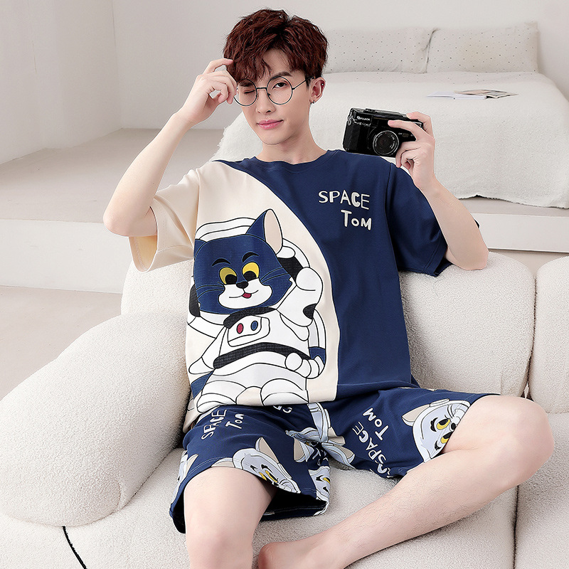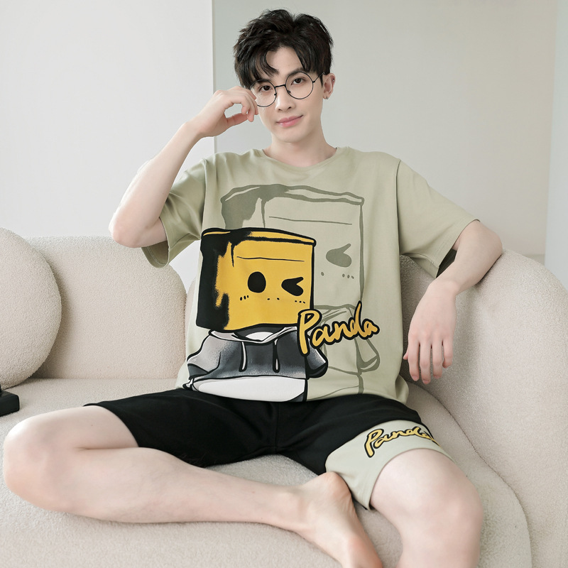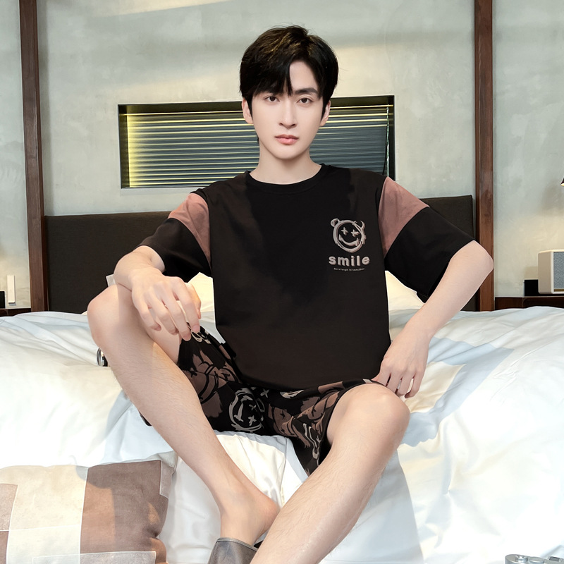 잠옷 남자 2024 년 새 여름 순면 짧은 소매 바지 십대 대형 소년 학생 홈 세트스토어 가기