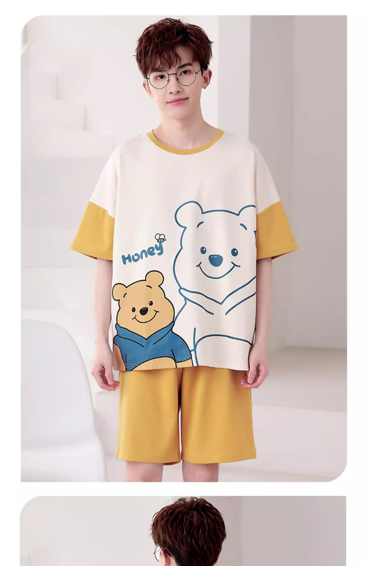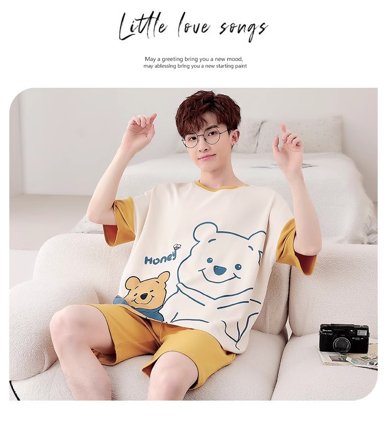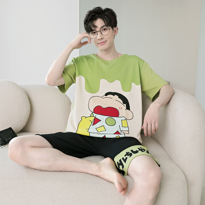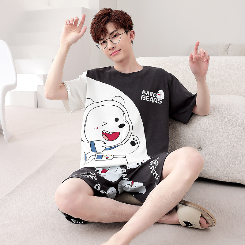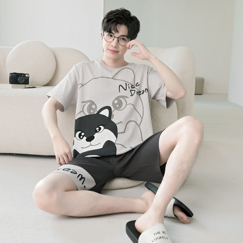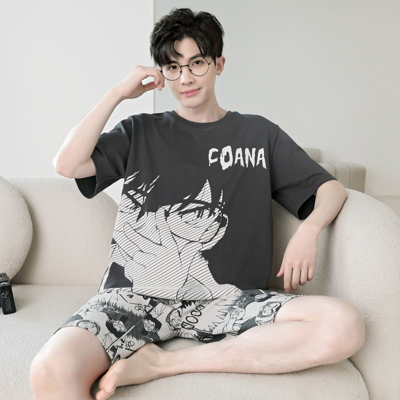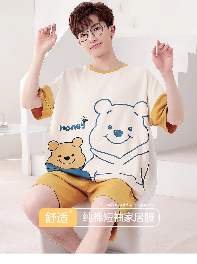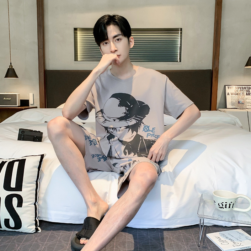 잠옷 남자 2024 년 새 여름 순면 짧은 소매 바지 십대 대형 소년 학생 홈 세트스토어 가기
