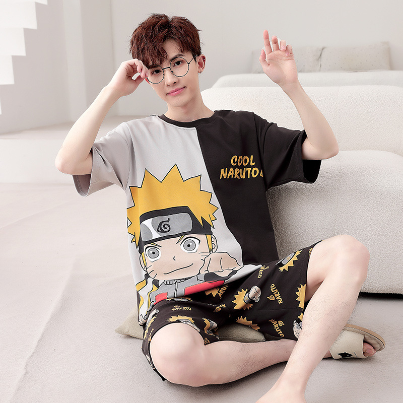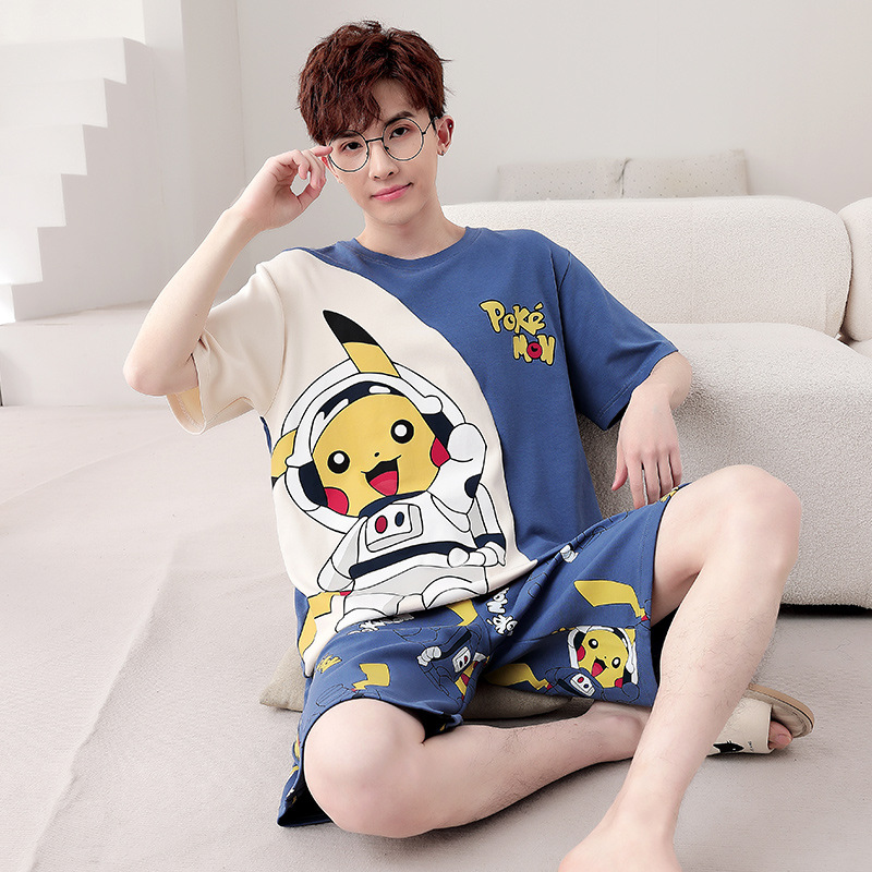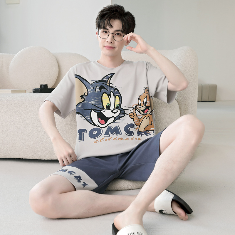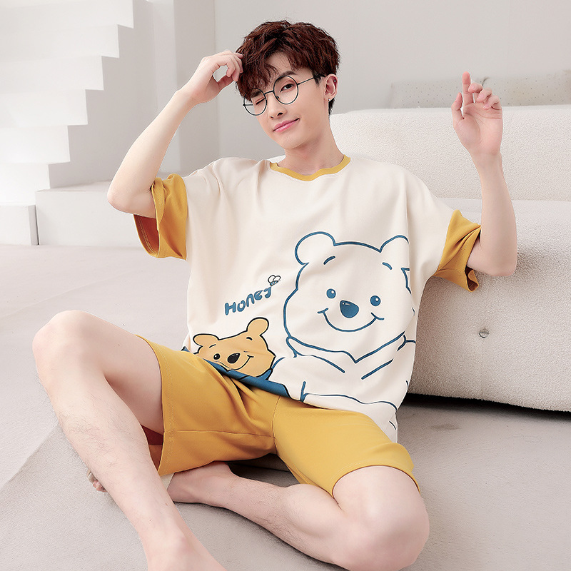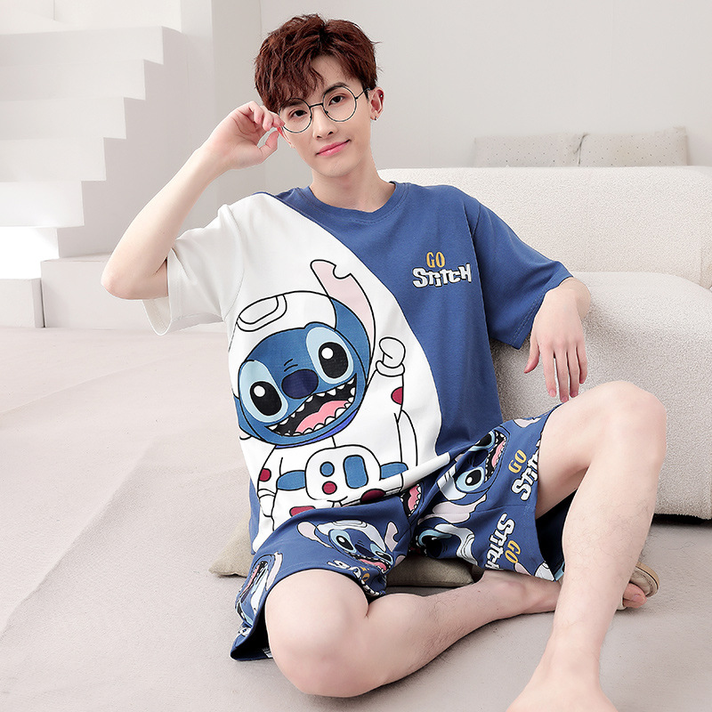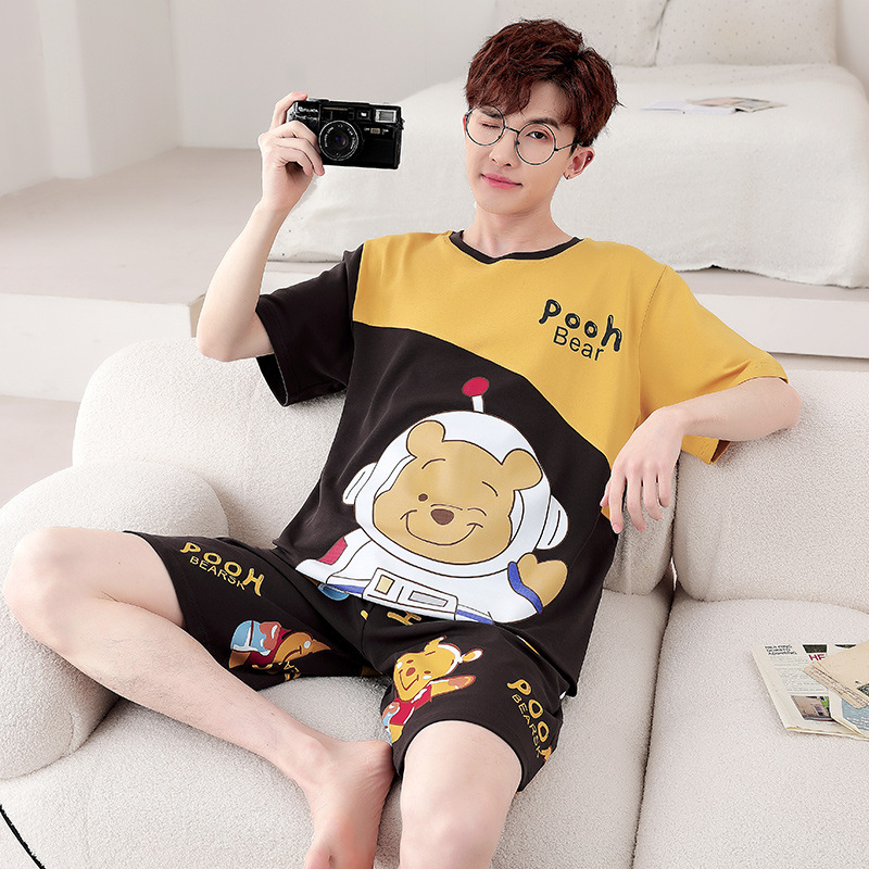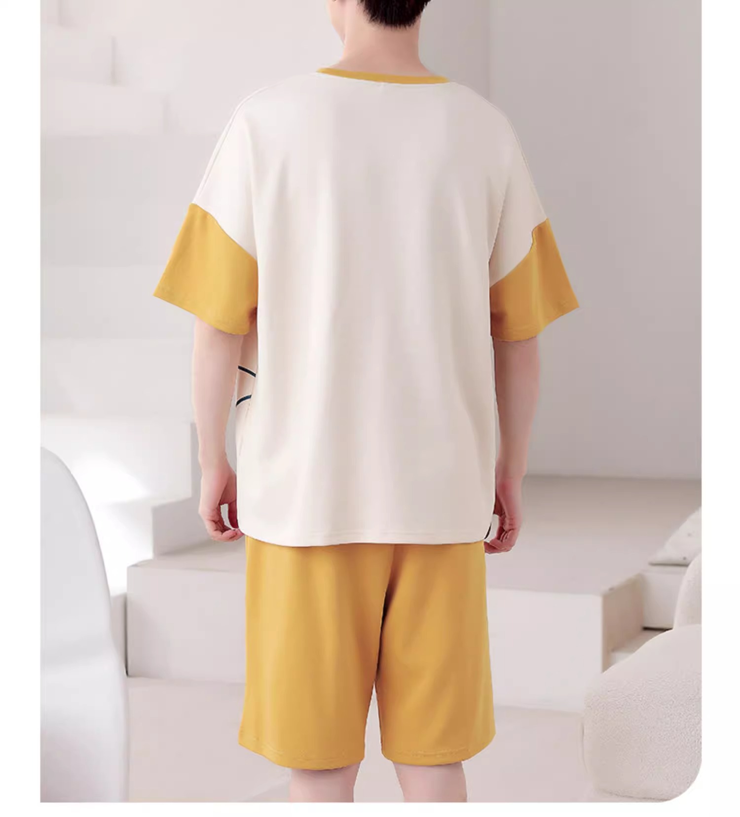 잠옷 남자 2024 년 새 여름 순면 짧은 소매 바지 십대 대형 소년 학생 홈 세트스토어 가기