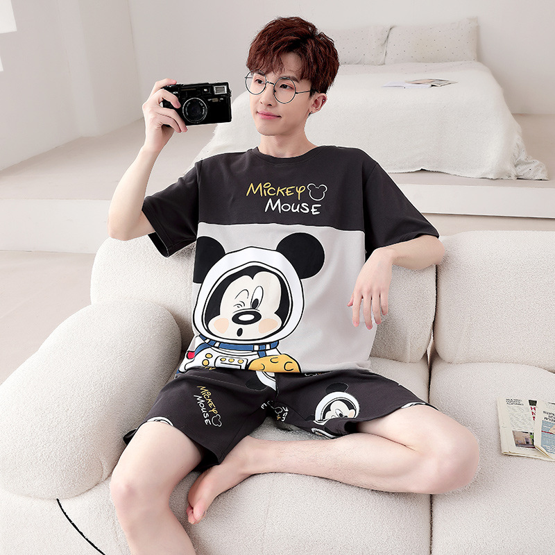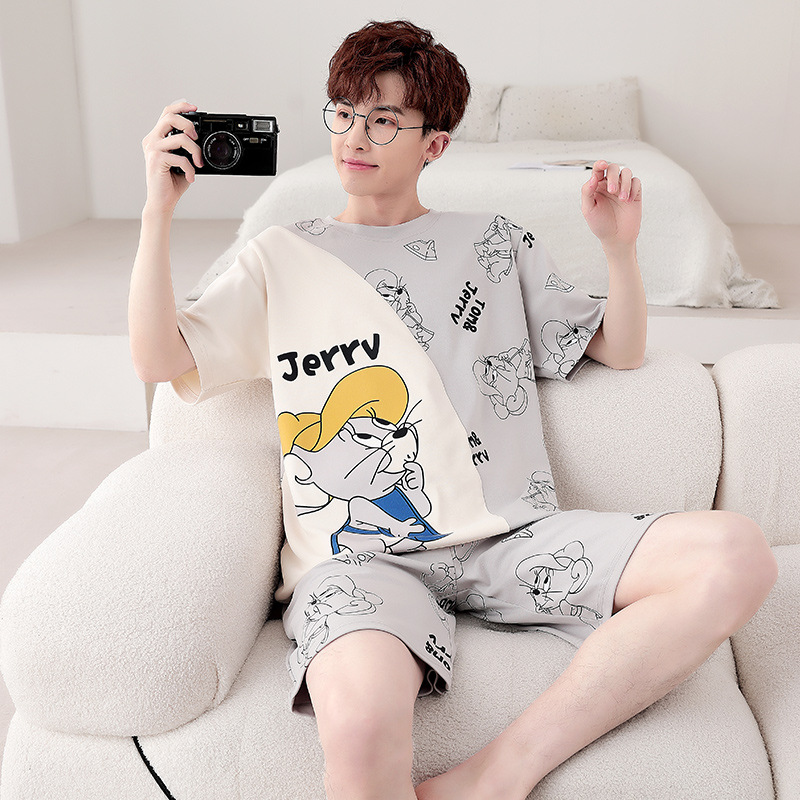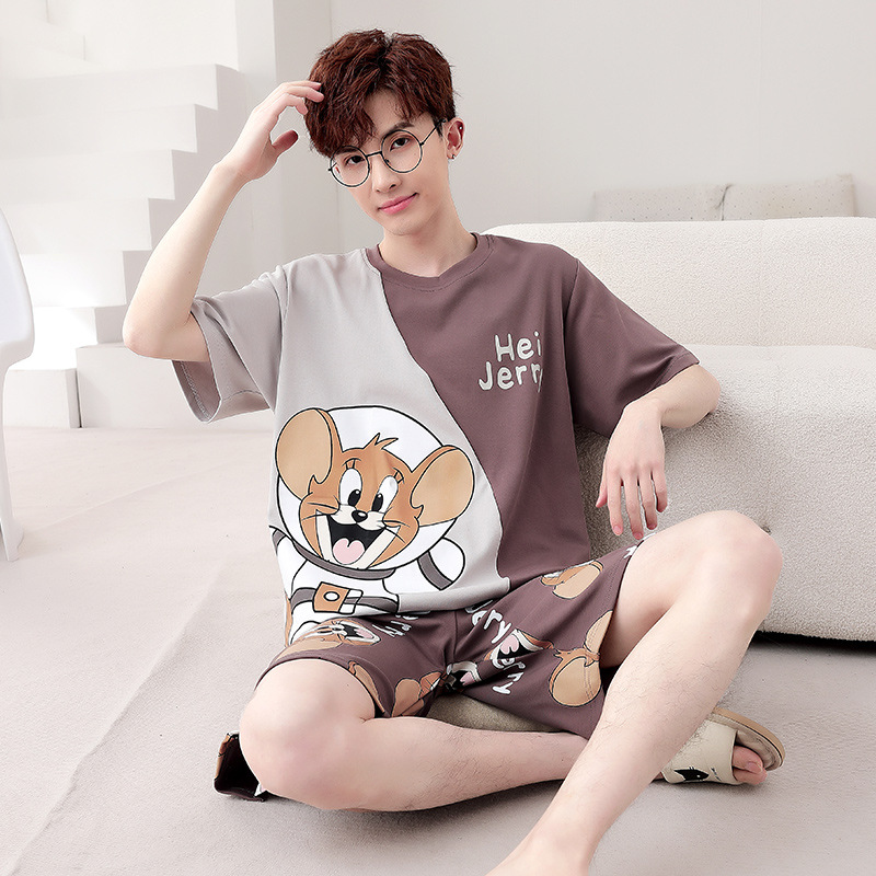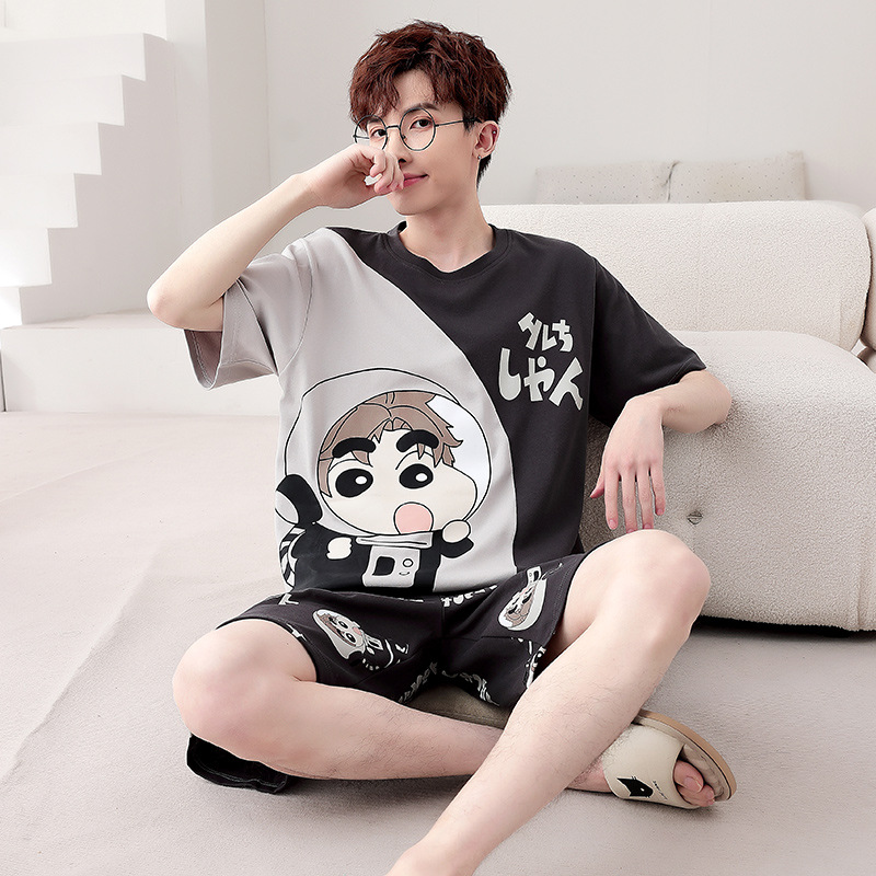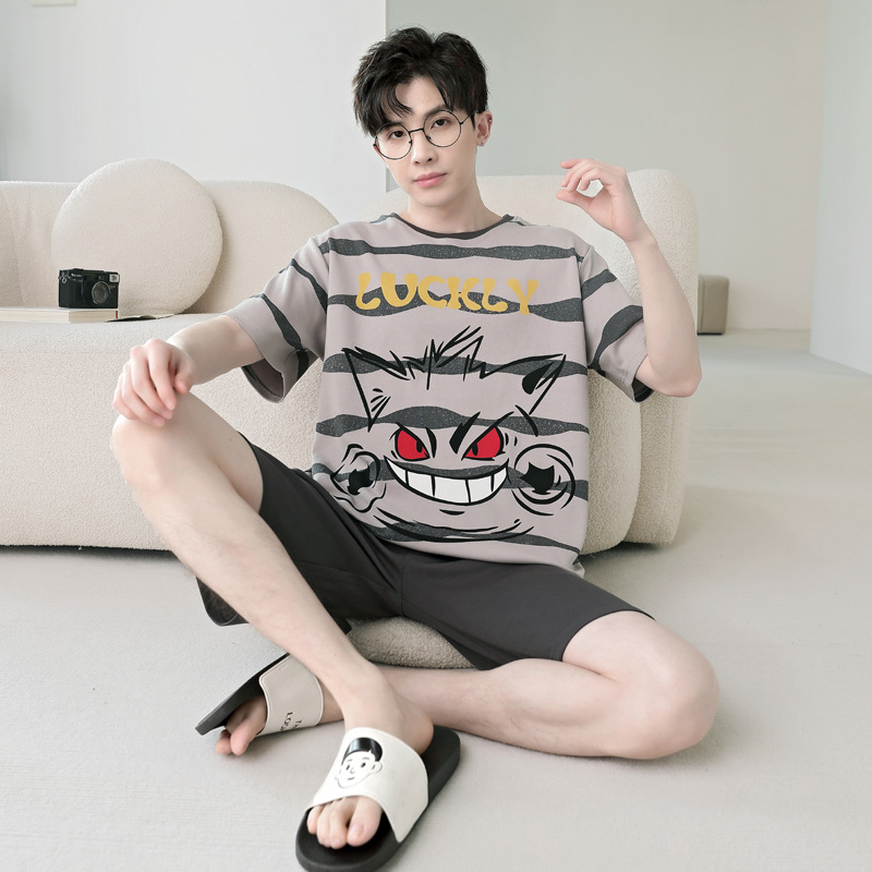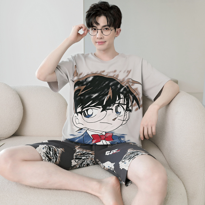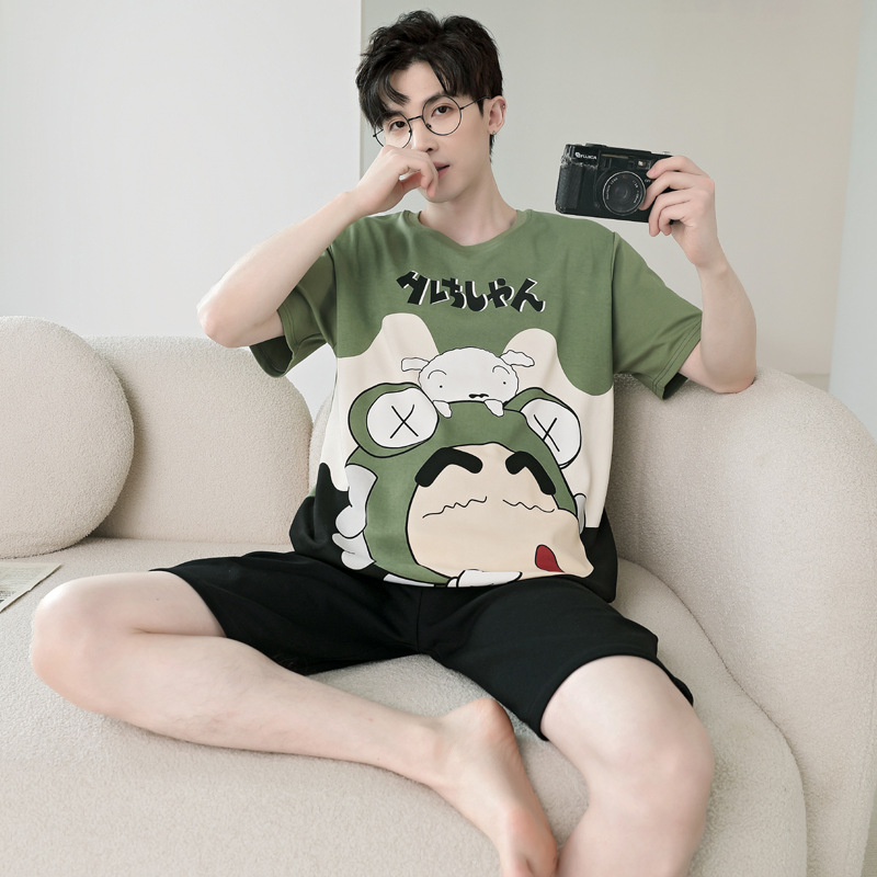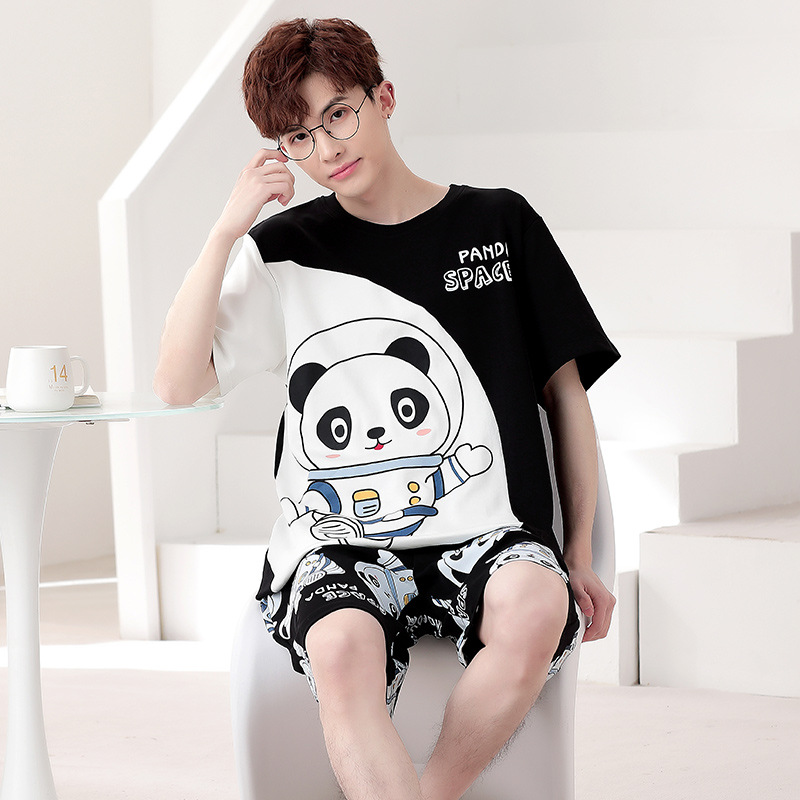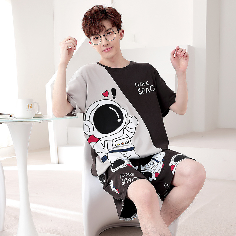 잠옷 남자 2024 년 새 여름 순면 짧은 소매 바지 십대 대형 소년 학생 홈 세트