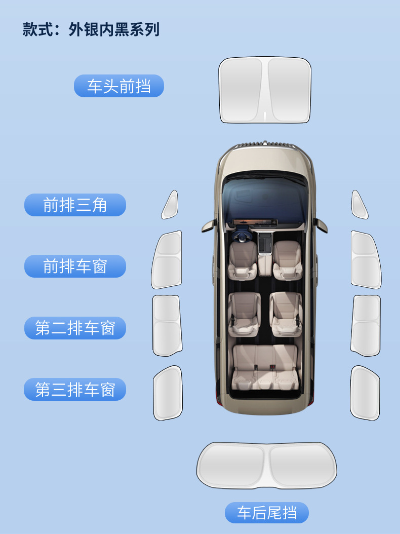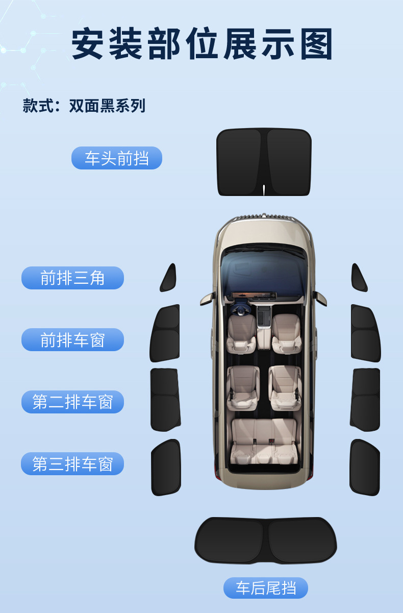 • 사이드 윈도우 + 프론트 블록 7 피스 세트 [양면 블랙]]