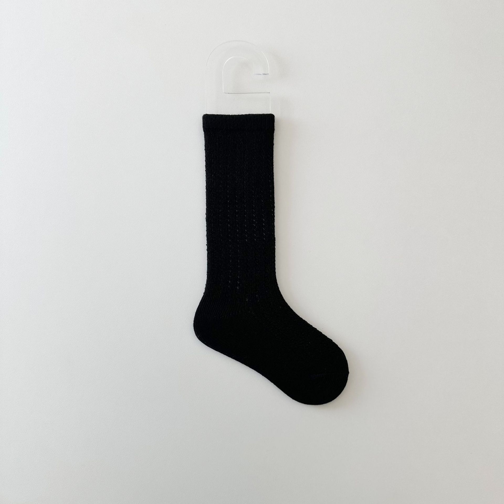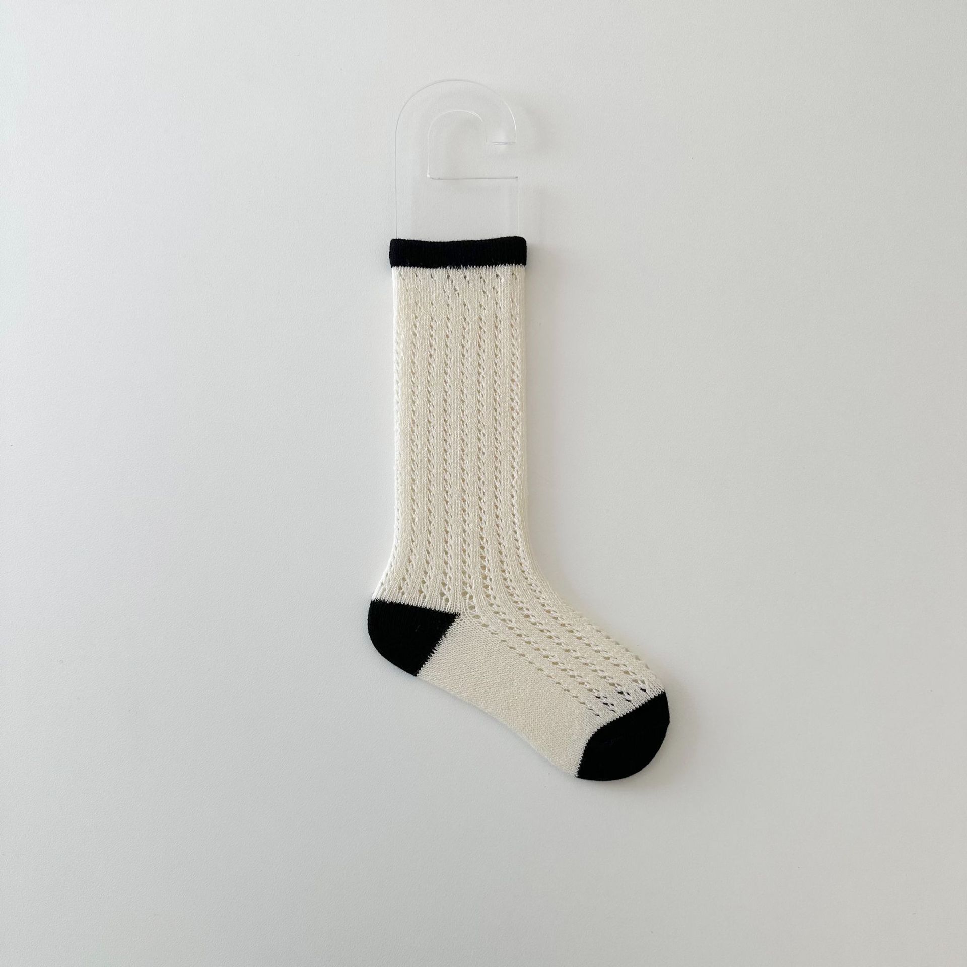 봄 새로운 한국 스타일 중공 컬러 매칭 어린이 중간 송아지 양말 단색 메쉬 트렌디 한 어린이 통기성 면 양말 스타킹