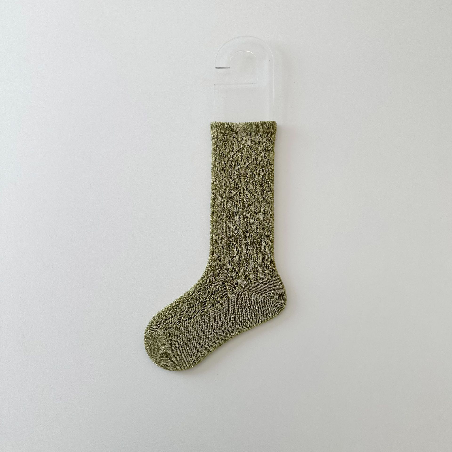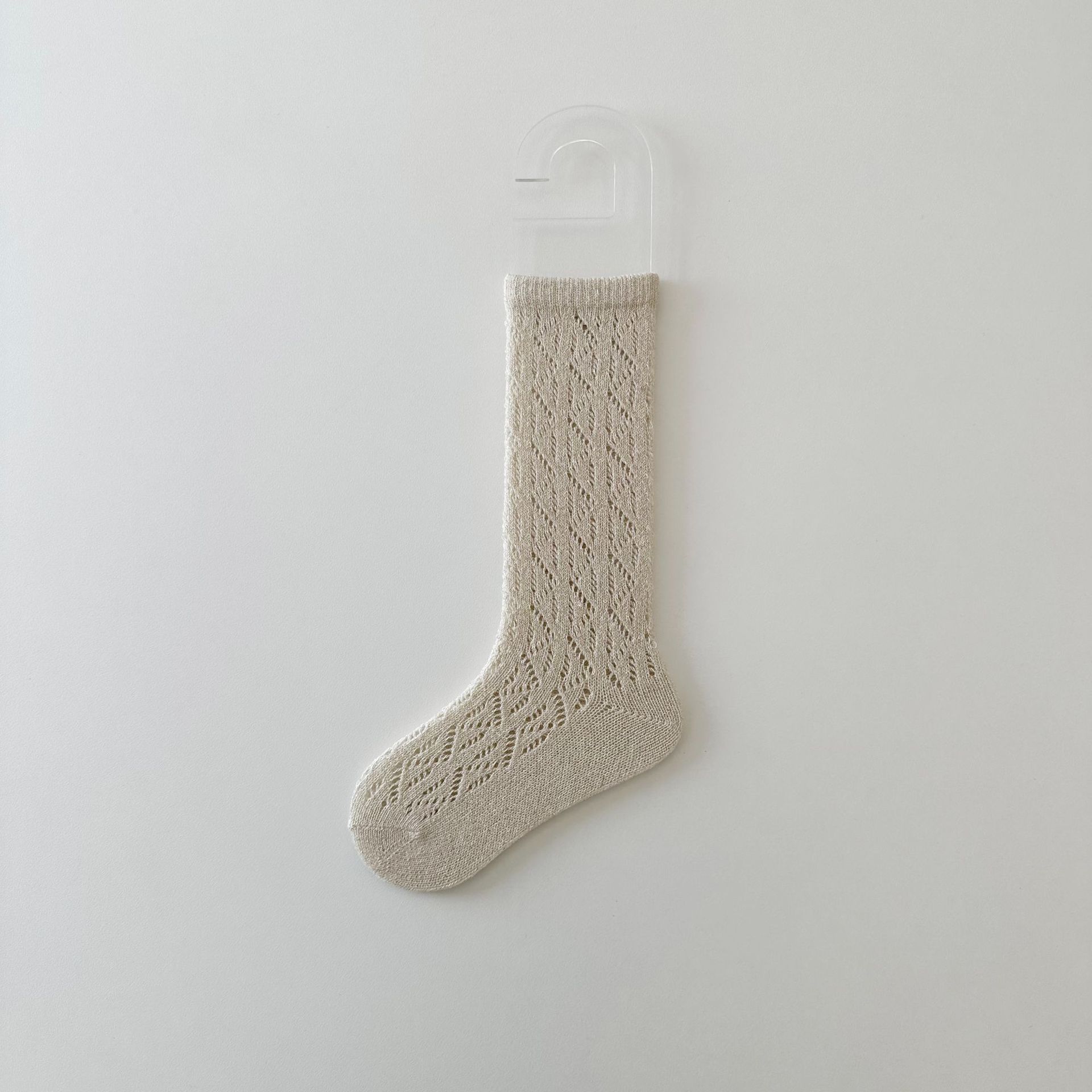 봄 새로운 한국 스타일의 밝은 실크 중공 어린이 송아지 양말 단색 신선한 소녀의 통기성 면 양말 공주 양말스토어 가기