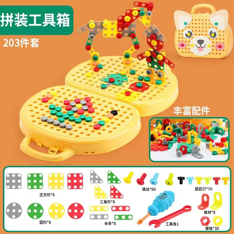 국경 간 어린이 수동 분해 도구 상자 너트 DIY 입체 나사 조립 빌딩 블록 장난감 조기 교육 도매스토어 가기