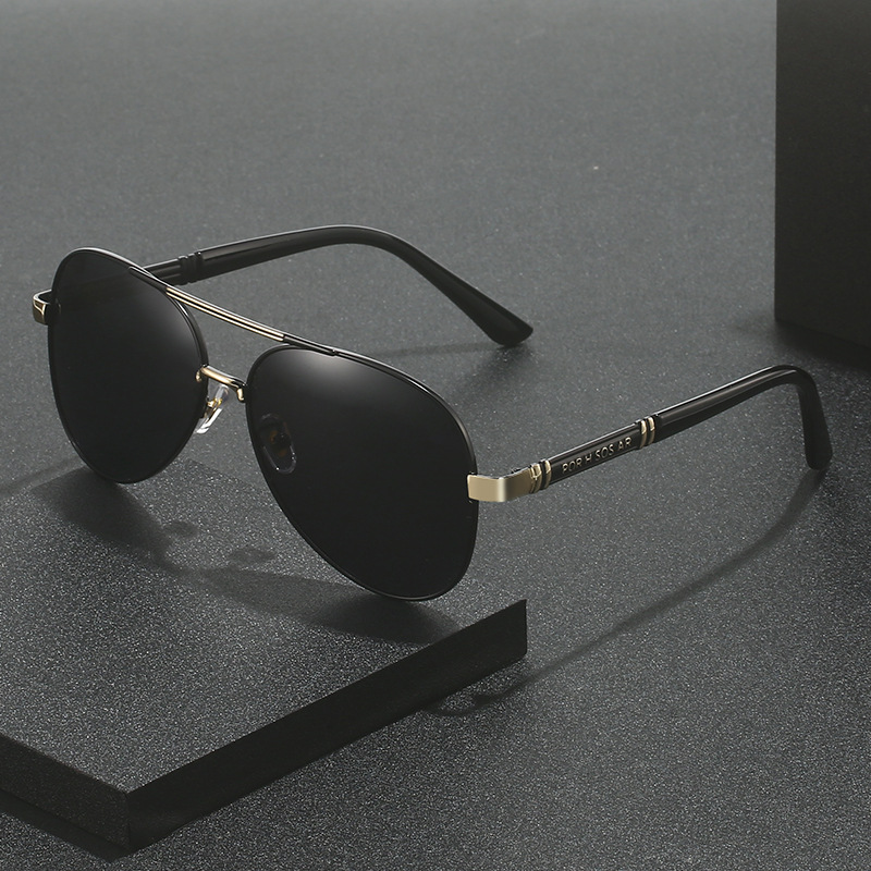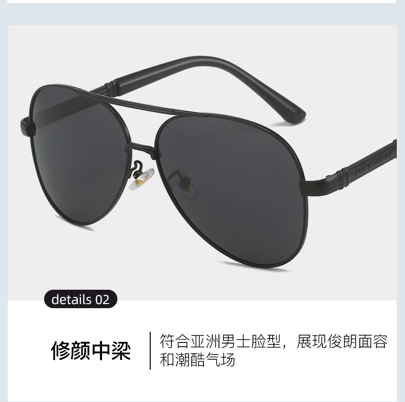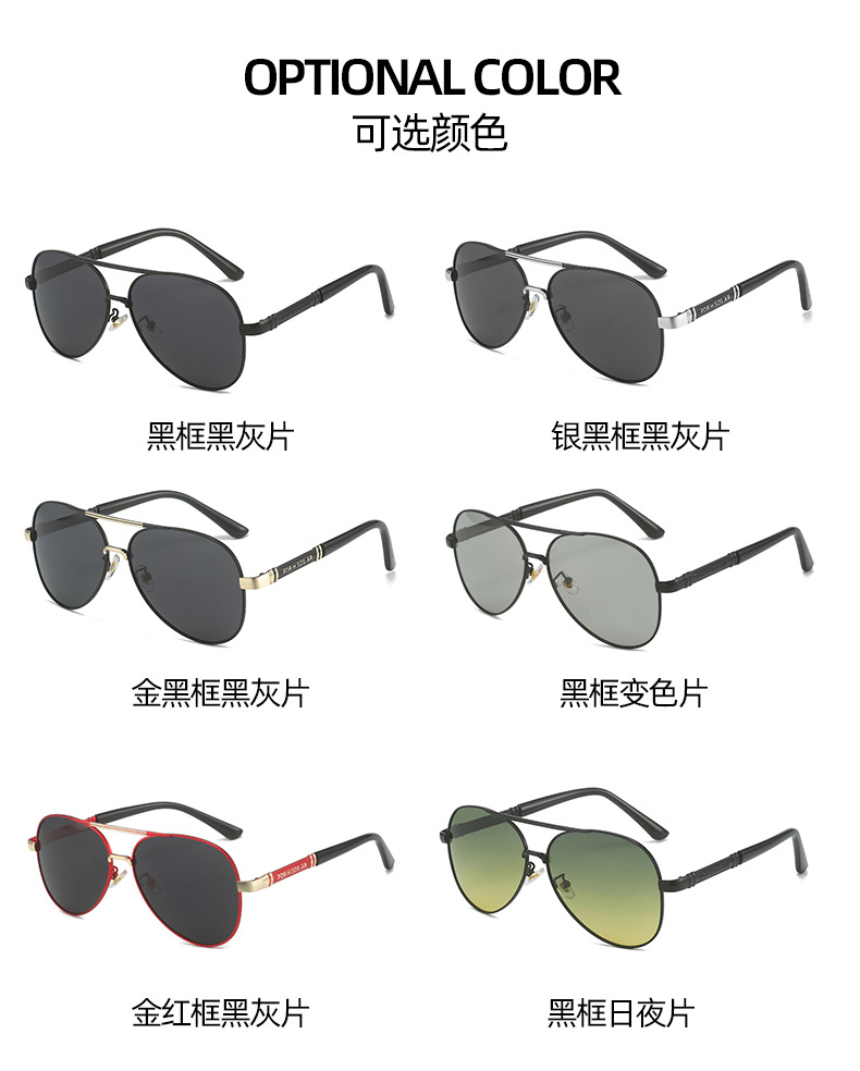 2024 새로운 편광 선글라스 감광성 색상 변경 남자 선글라스 금속 두꺼비 거울 블랙 프레임 안경 제조 업체 도매