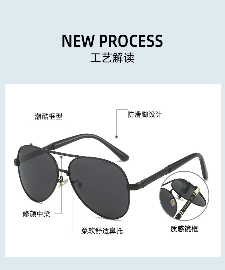 2024 새로운 편광 선글라스 감광성 색상 변경 남자 선글라스 금속 두꺼비 거울 블랙 프레임 안경 제조 업체 도매스토어 가기