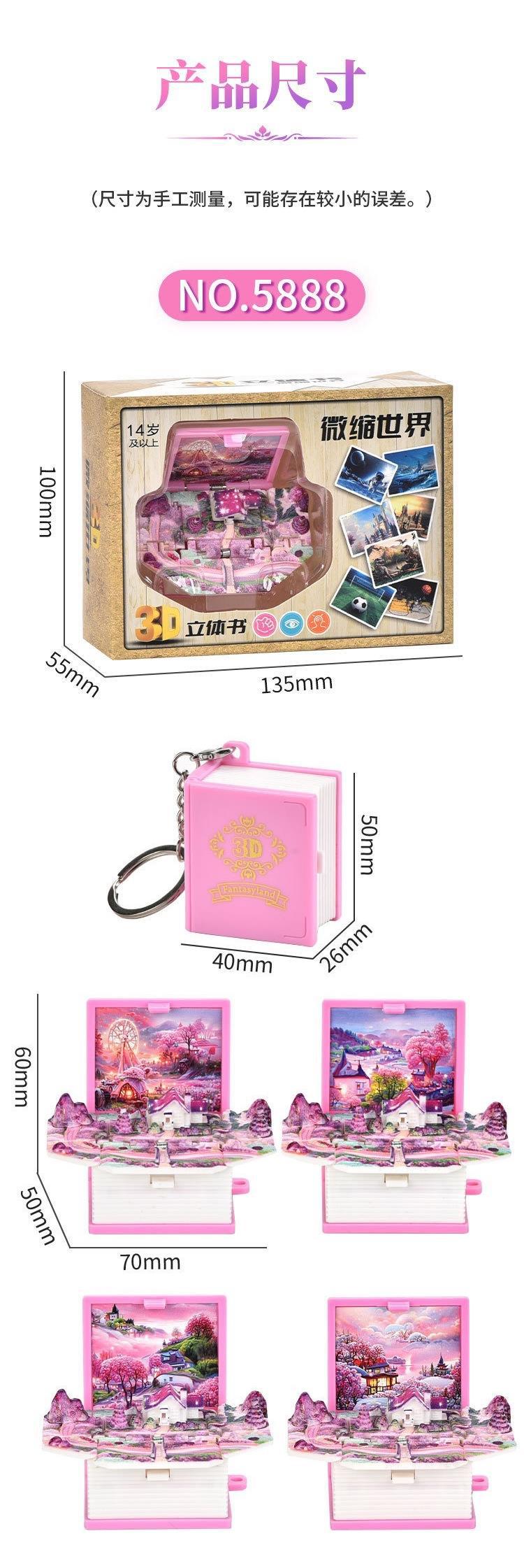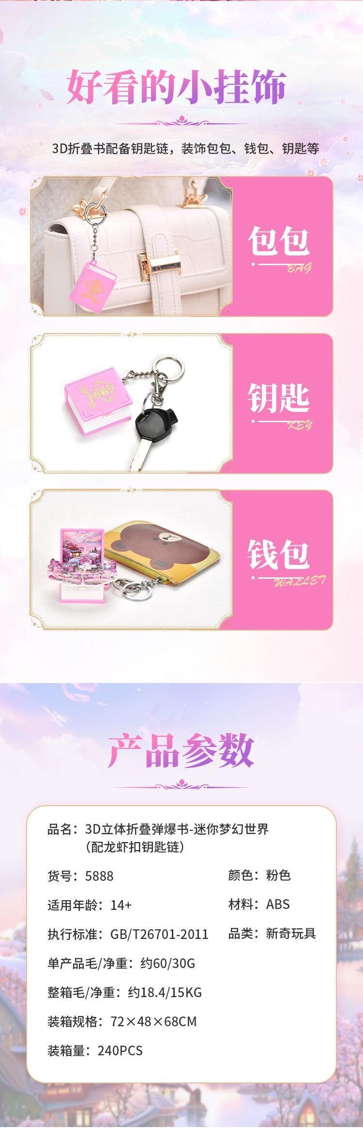 3D 입체 접이식 팝업 책 판타지 코티지 스쿨 백 펜던트 키 체인 창조적 인 감압 장난감 작은 선물 도매스토어 가기