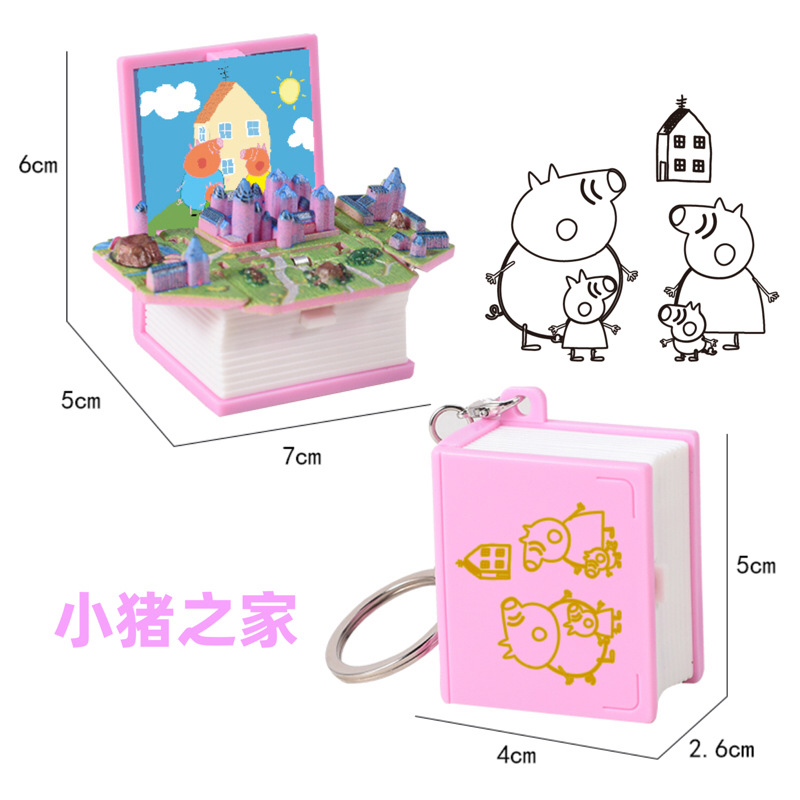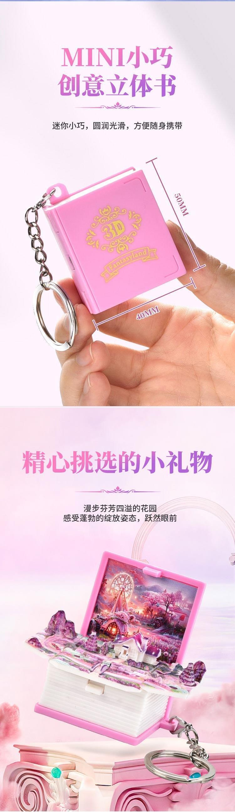 3D 입체 접이식 팝업 책 판타지 코티지 스쿨 백 펜던트 키 체인 창조적 인 감압 장난감 작은 선물 도매