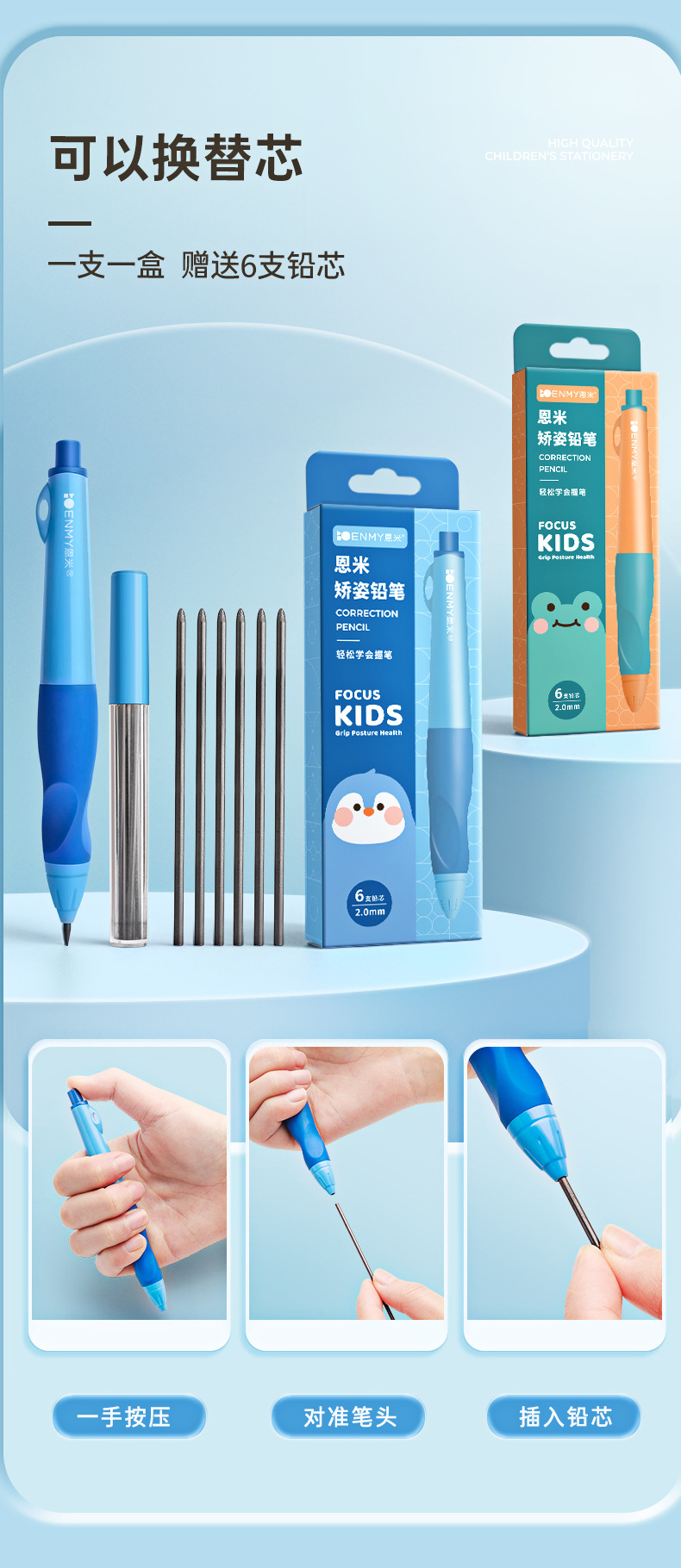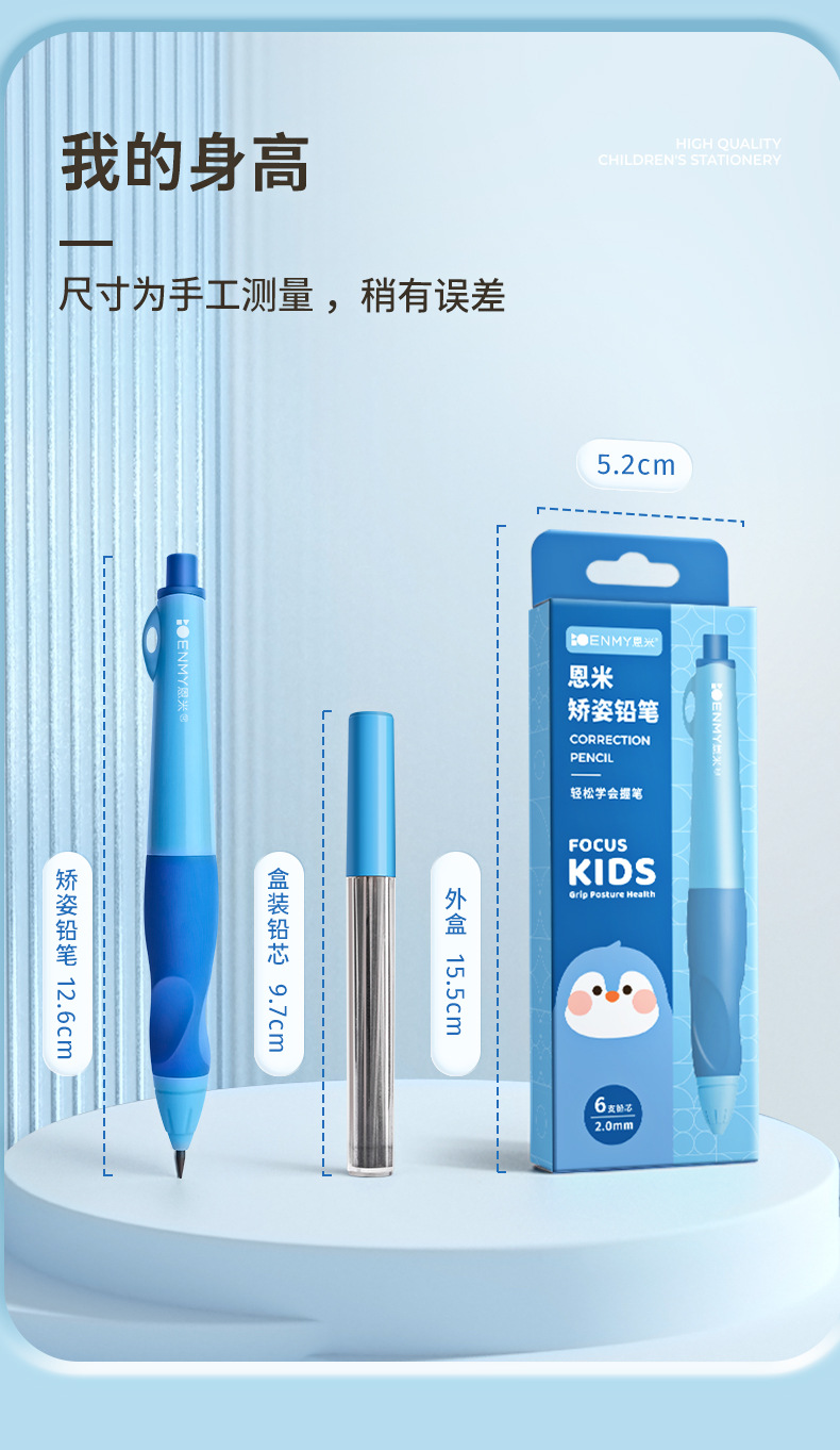 Enmi 초등학교 학생 교정 자동 연필 연속 코어 어린이 지방 특수 연필 서예 연습 자세 교정 펜