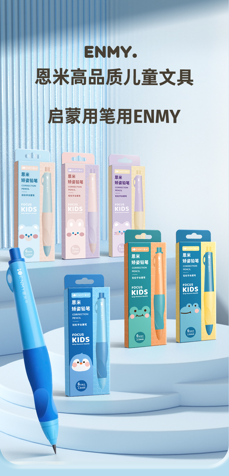 Enmi 초등학교 학생 교정 자동 연필 연속 코어 어린이 지방 특수 연필 서예 연습 자세 교정 펜스토어 가기