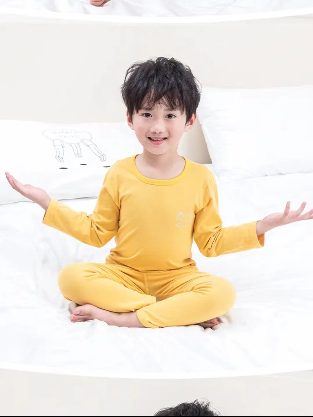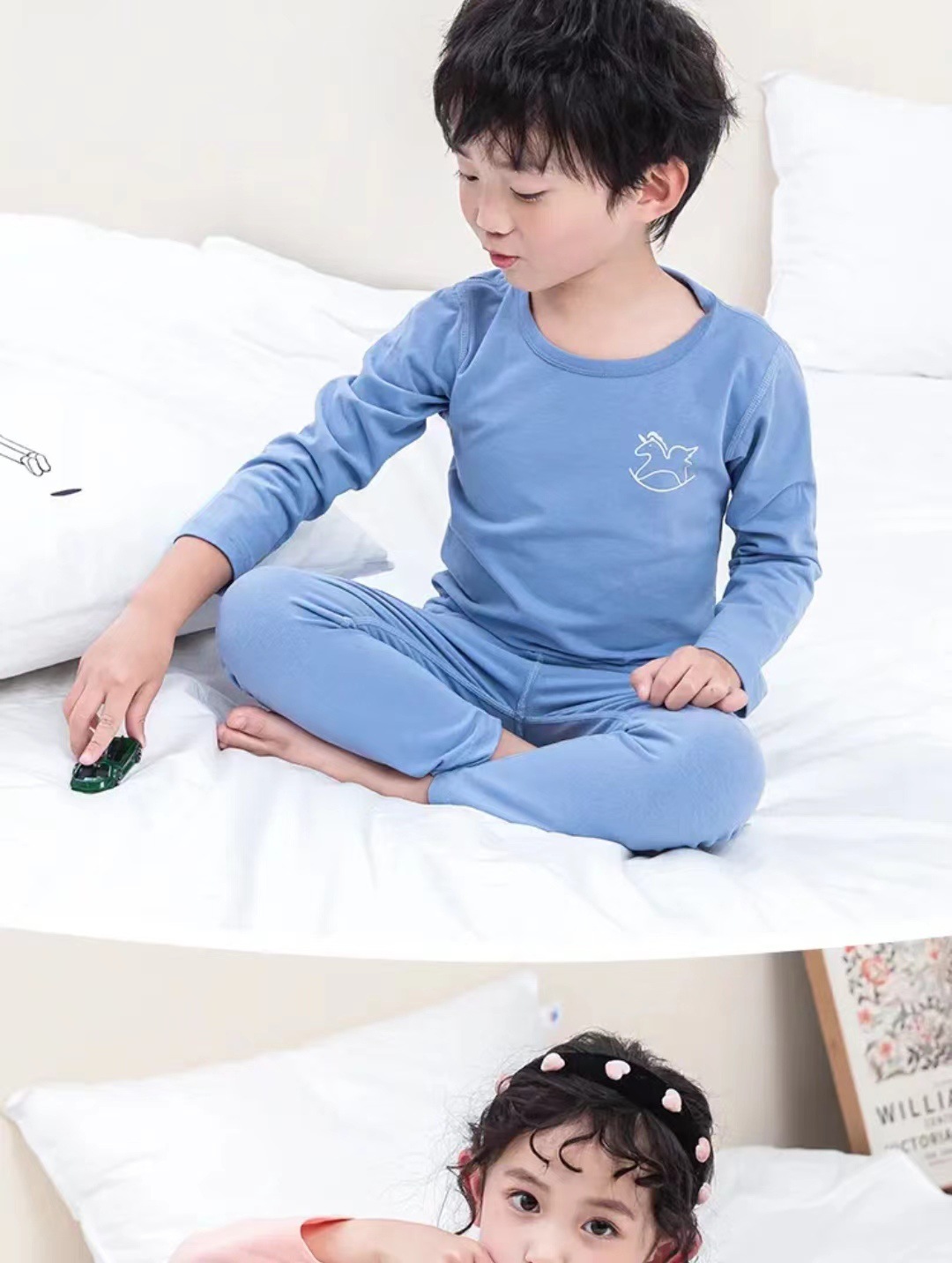 봄 뼈없는 라이크라 코튼 어린이 속옷 중형 및 대형 어린이 아기 가을 옷 긴 바지 세트 소년 소녀면 잠옷스토어 가기