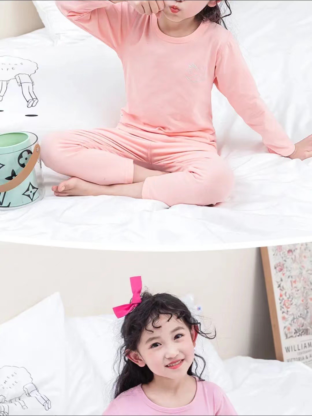 봄 뼈없는 라이크라 코튼 어린이 속옷 중형 및 대형 어린이 아기 가을 옷 긴 바지 세트 소년 소녀면 잠옷