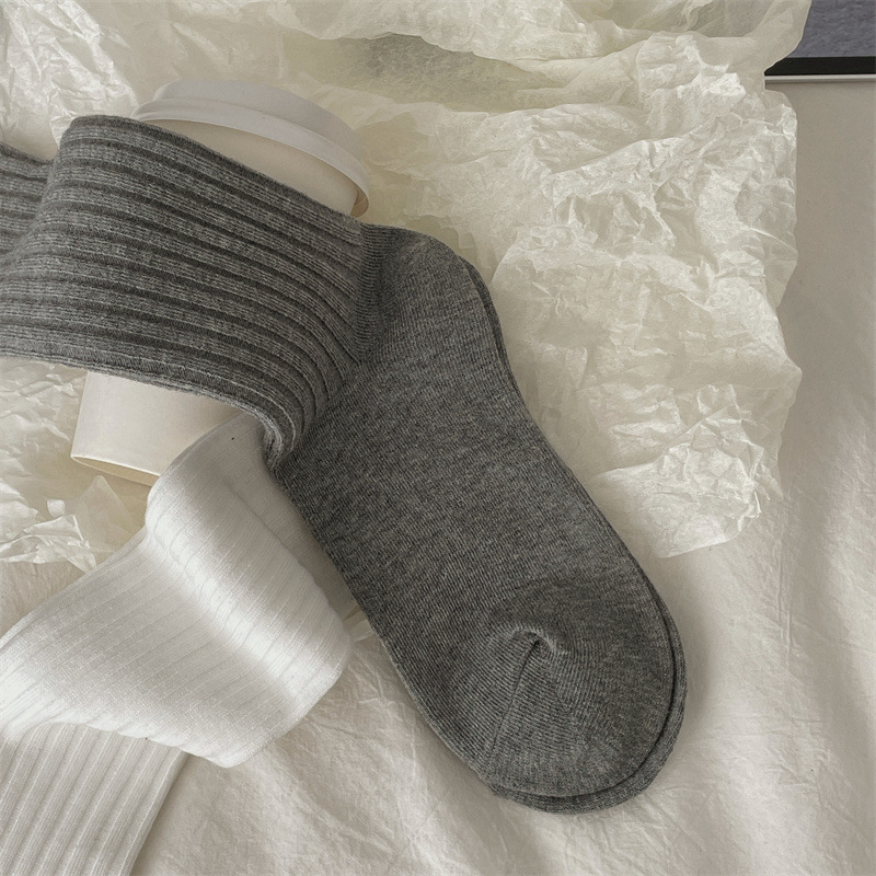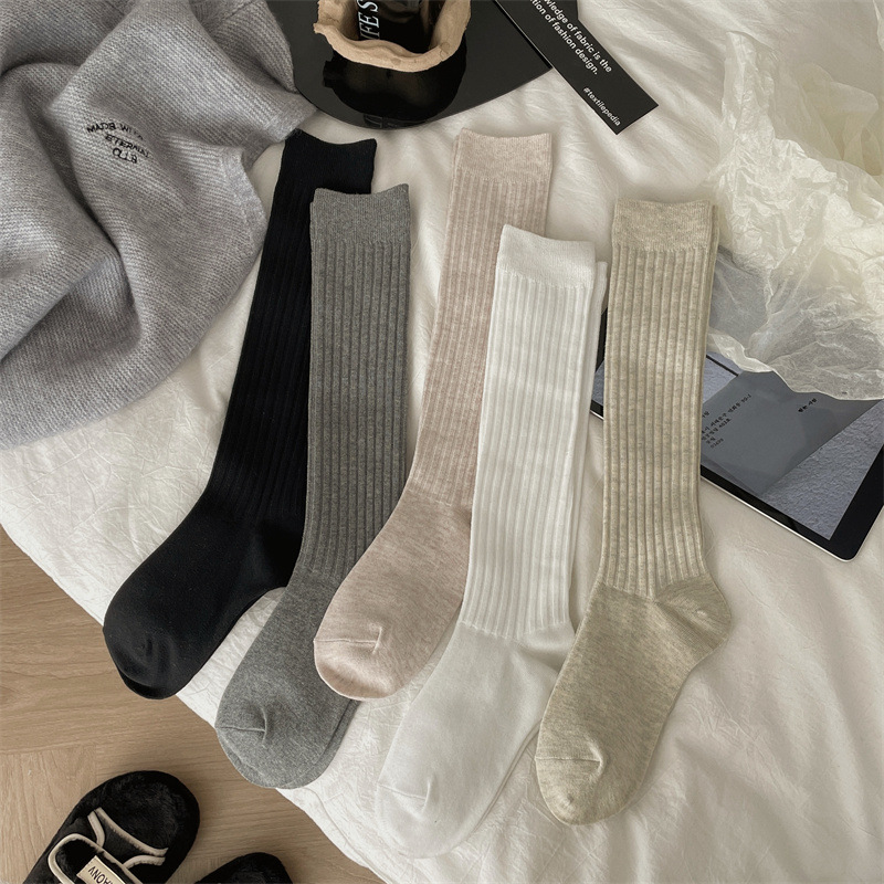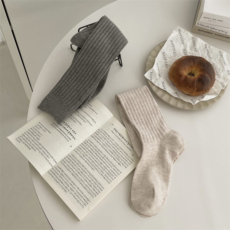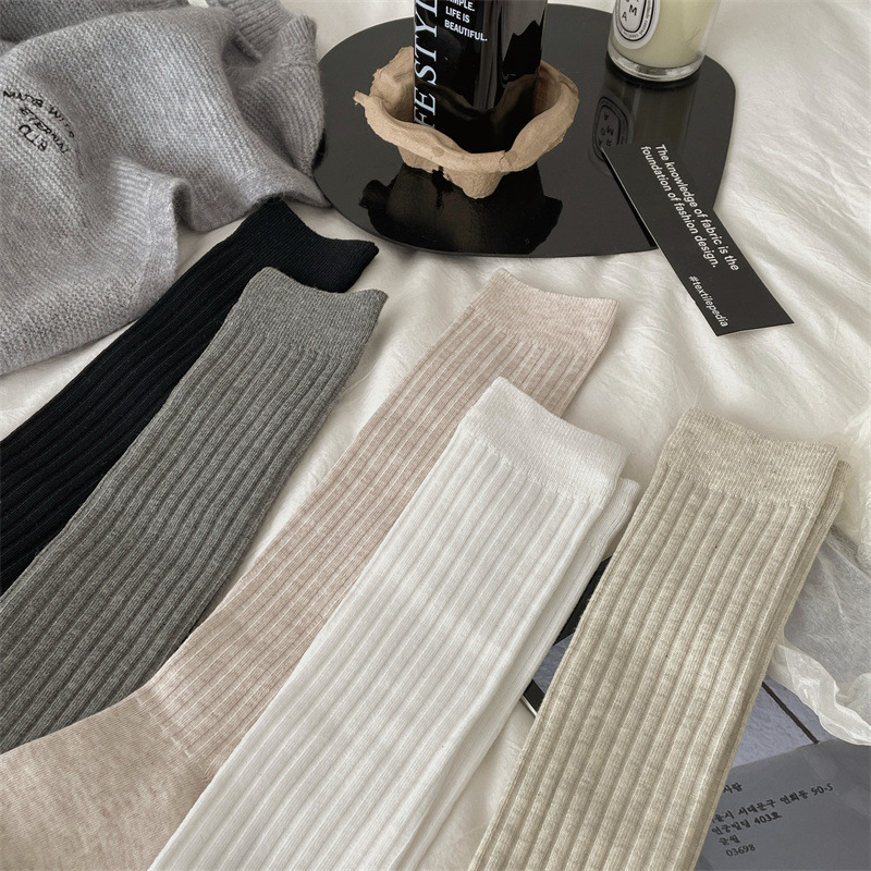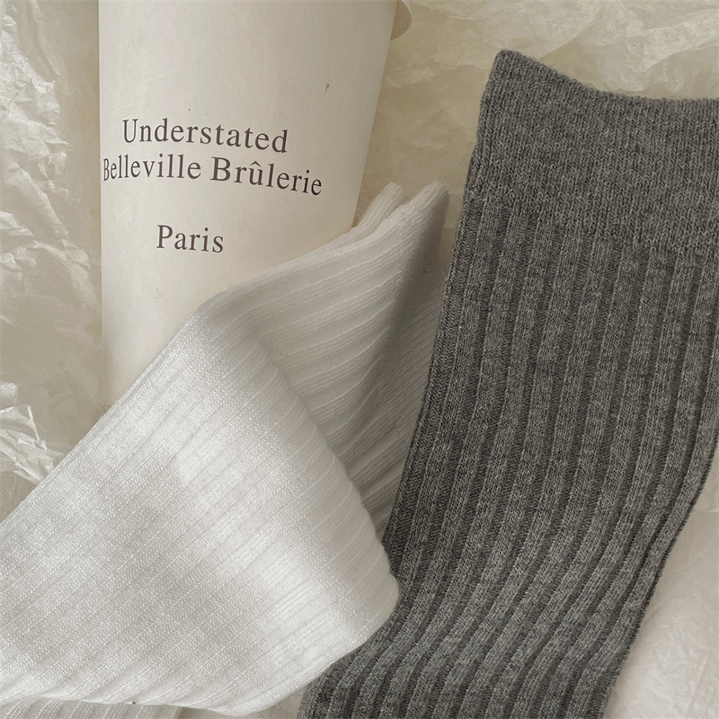 한국 동대문 새로운 순수 컬러 더블 바늘 간단한 파일 양말 스타일 송아지 흰색 양말 여성 슬리밍 한국 스타일스토어 가기