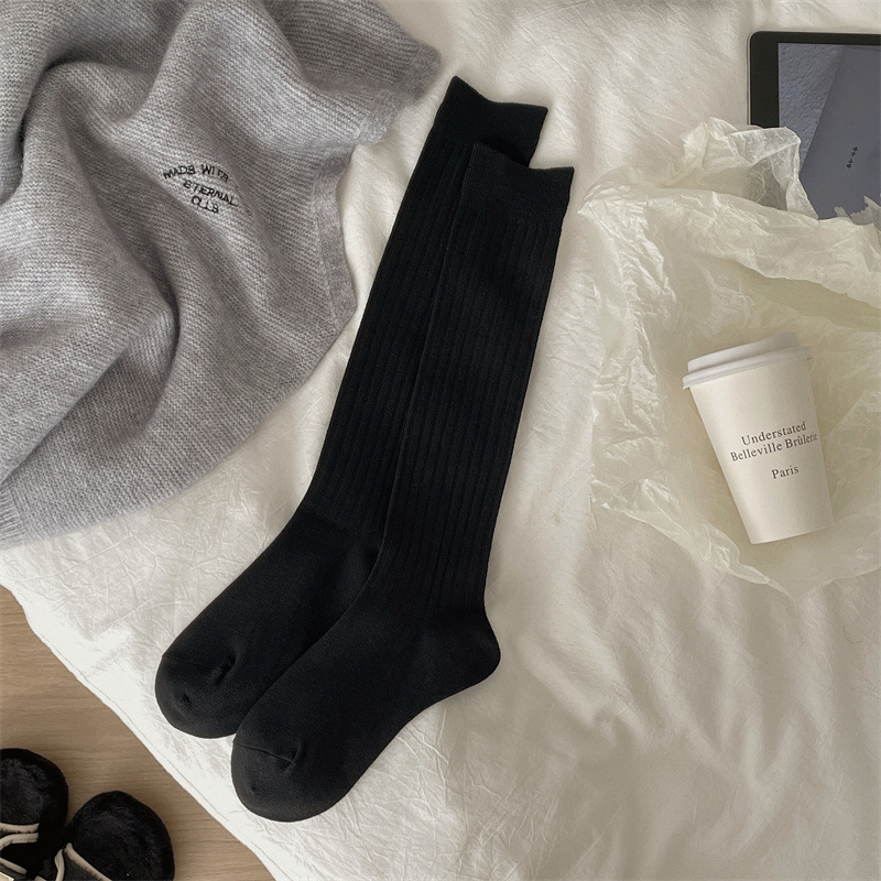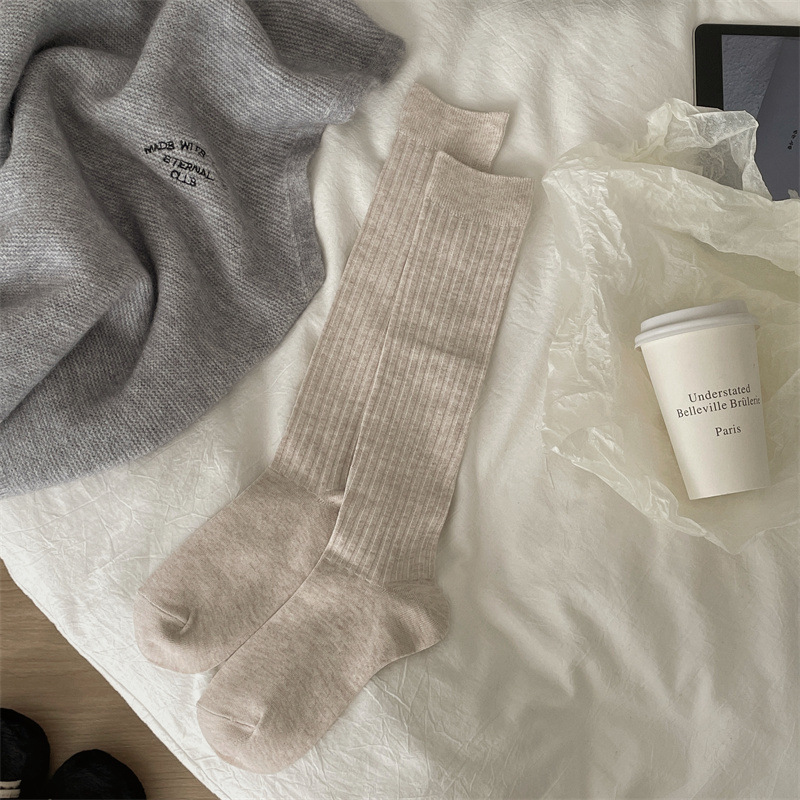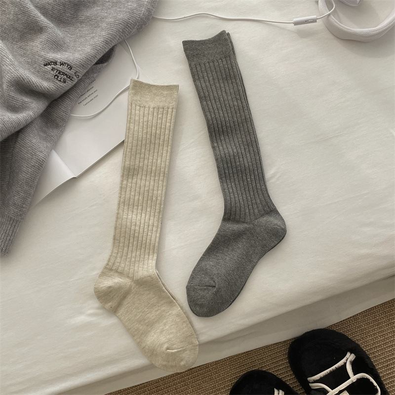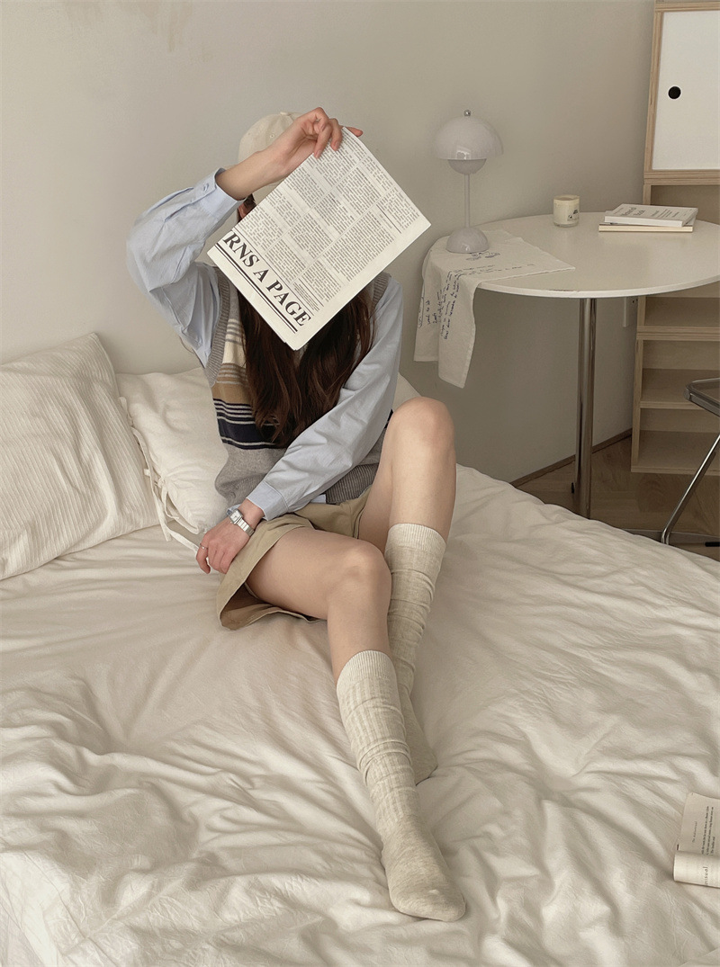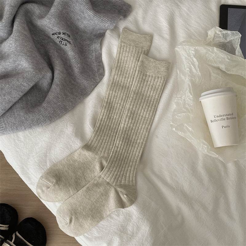 한국 동대문 새로운 순수 컬러 더블 바늘 간단한 파일 양말 스타일 송아지 흰색 양말 여성 슬리밍 한국 스타일스토어 가기