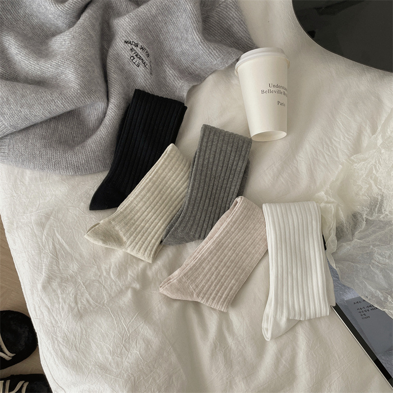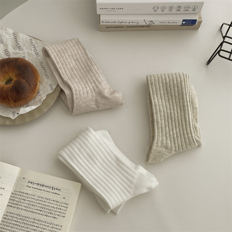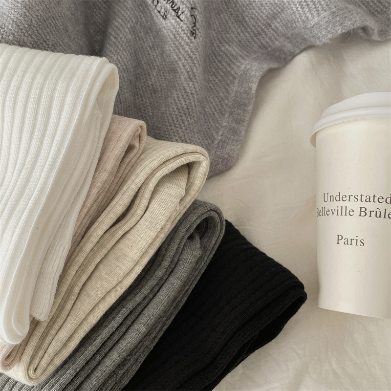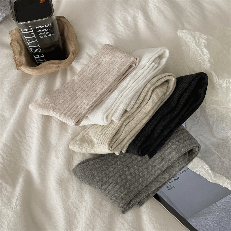 한국 동대문 새로운 순수 컬러 더블 바늘 간단한 파일 양말 스타일 송아지 흰색 양말 여성 슬리밍 한국 스타일