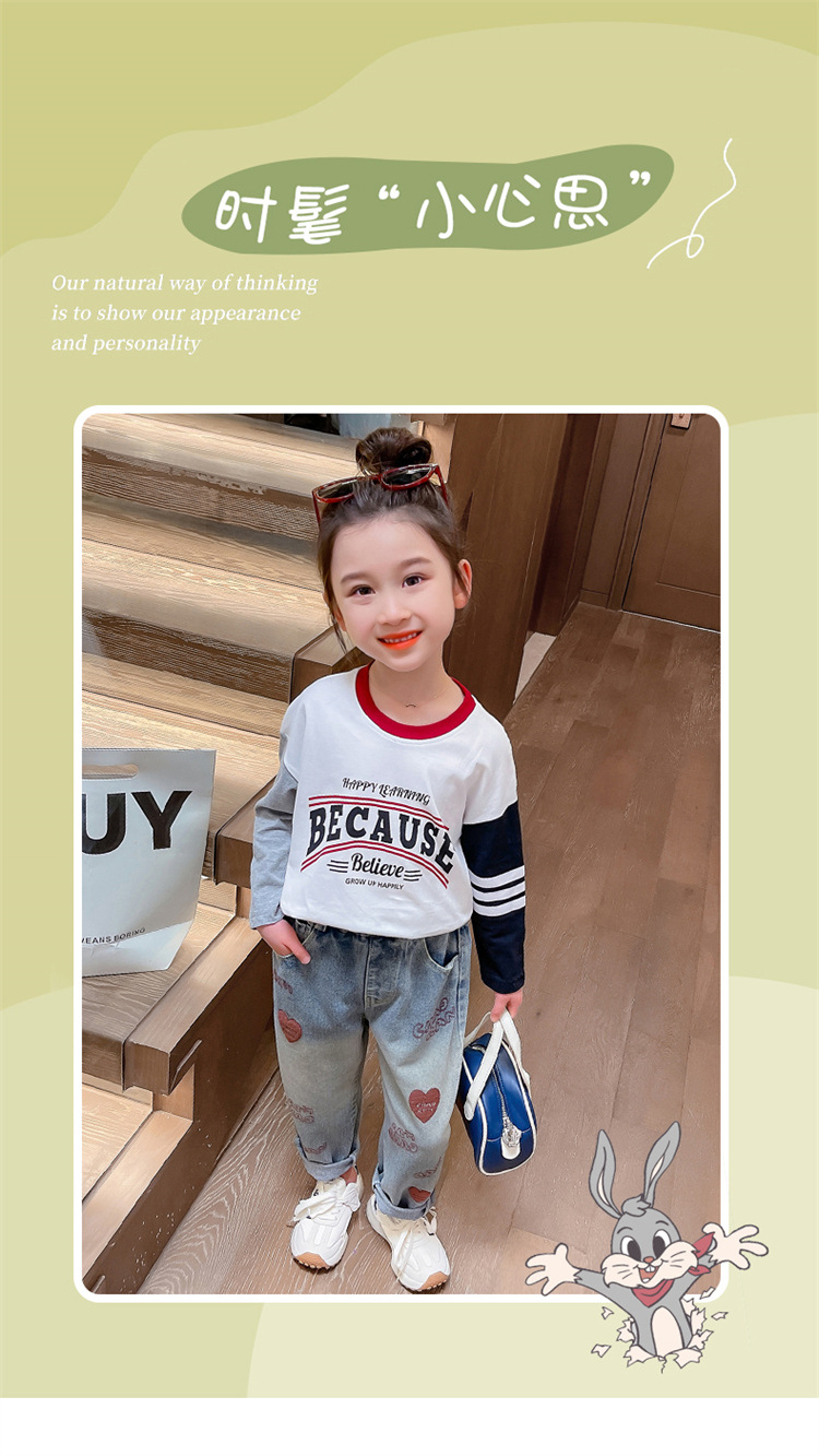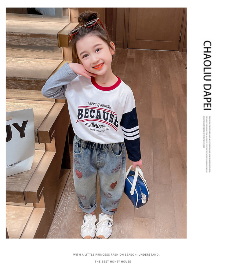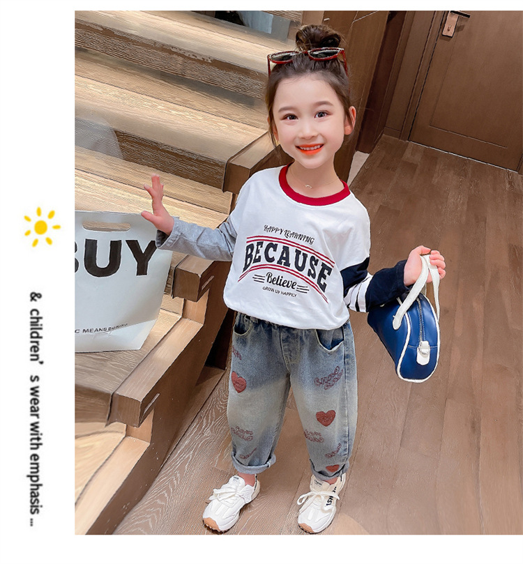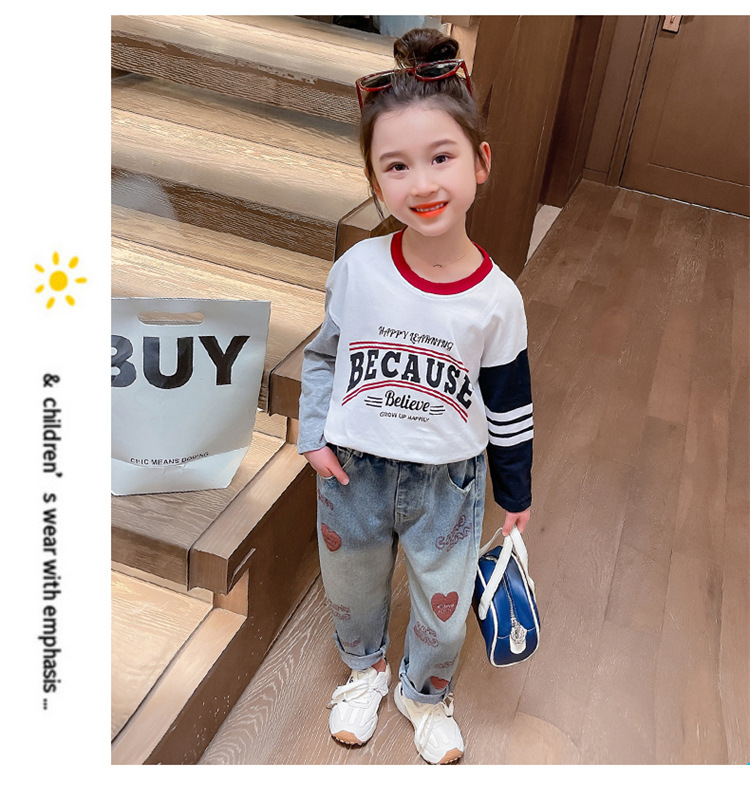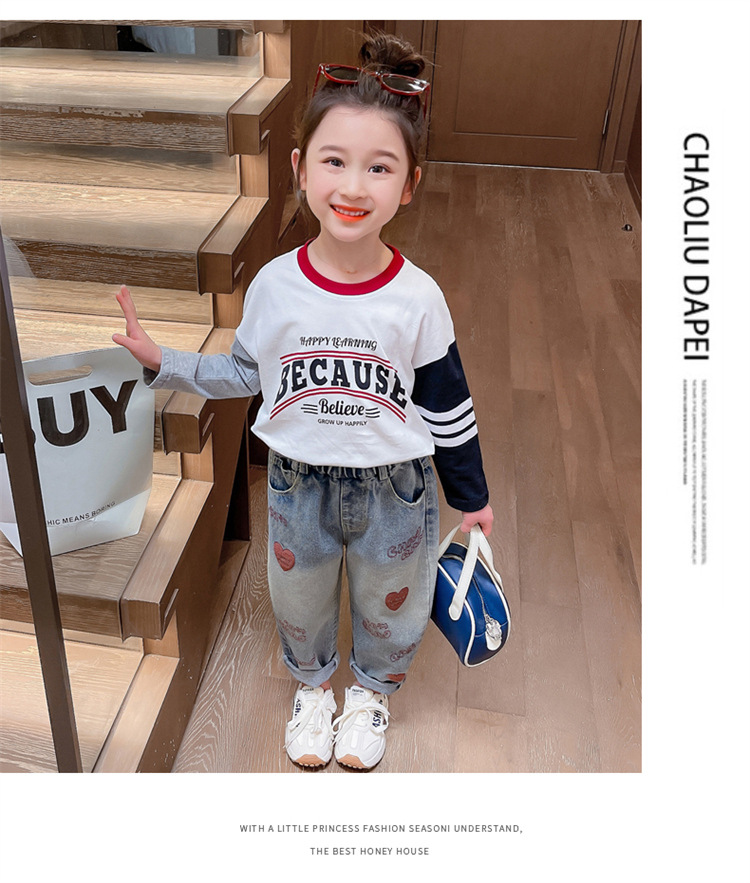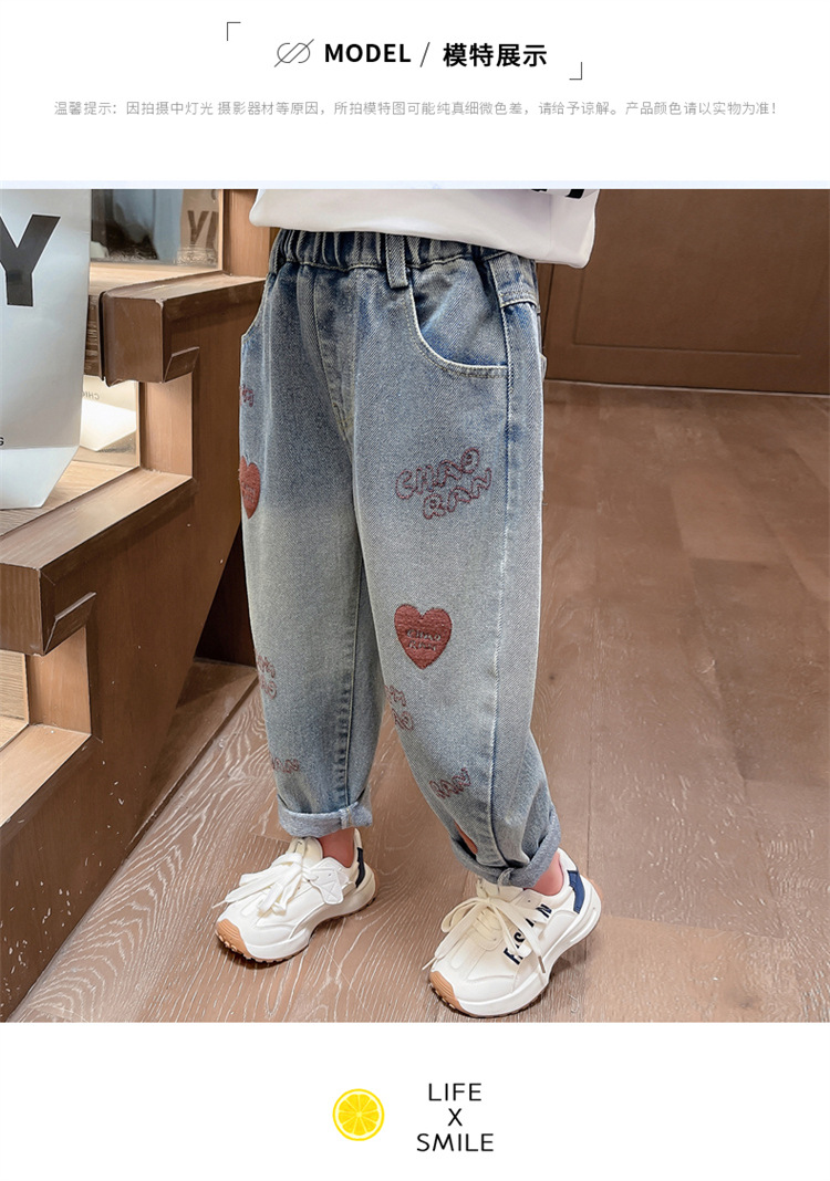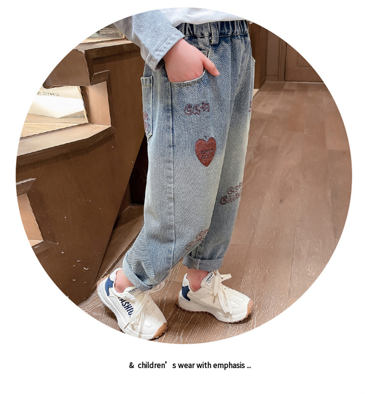 소녀 청바지 봄과 가을 2024 새로운 서양식 한국 스타일 아동복 느슨한 봄 아기 봄 긴 바지스토어 가기