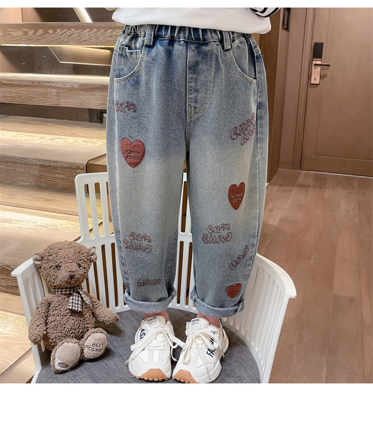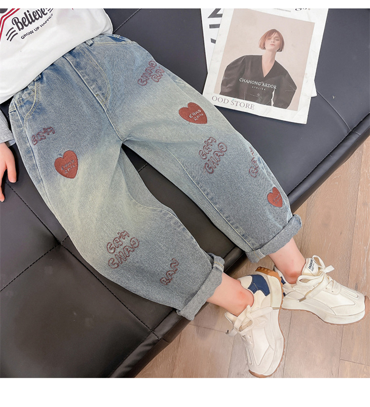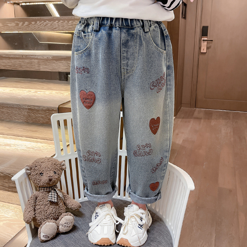 소녀 청바지 봄과 가을 2024 새로운 서양식 한국 스타일 아동복 느슨한 봄 아기 봄 긴 바지