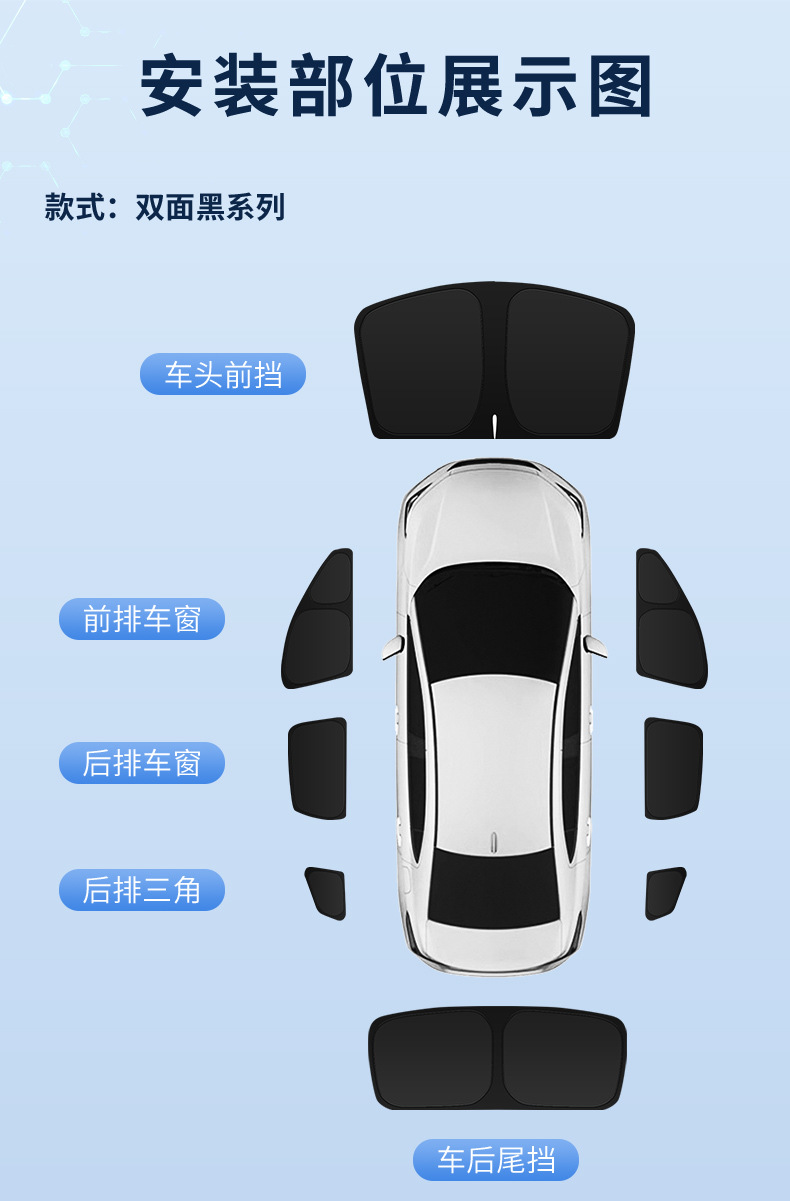 • 사이드 윈도우 + 프론트 블록 7 피스 세트 [양면 블랙]]