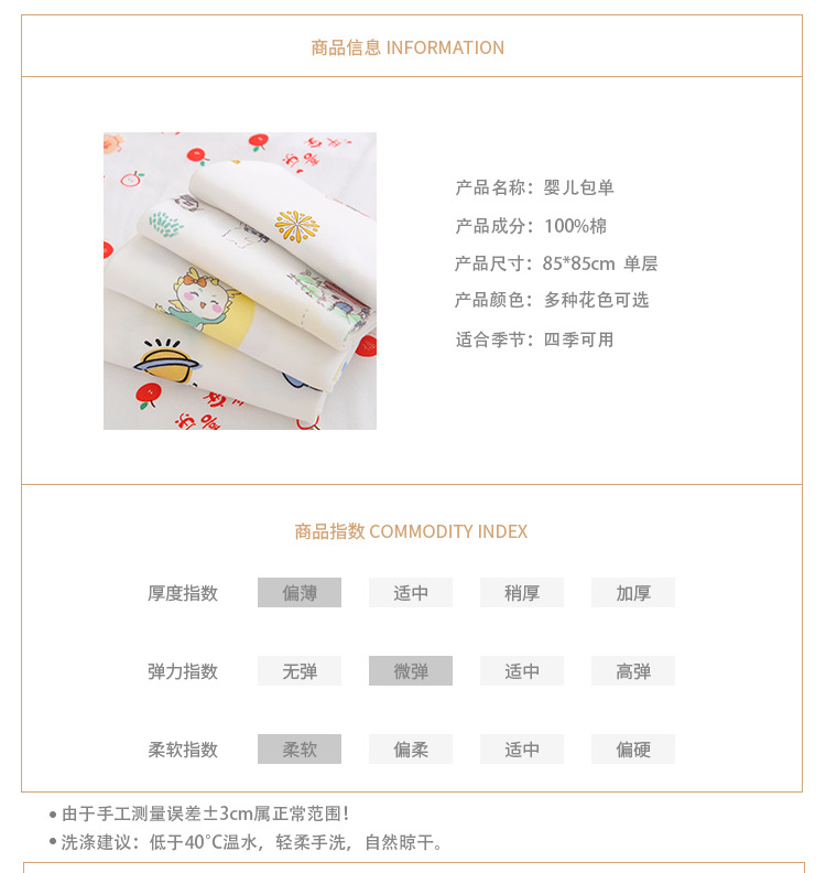 애니메이션 순면 신생아 이불, 사계절 신생아 분만실 포대기, 봄과 가을 얇은 아기 포대기 이불스토어 가기