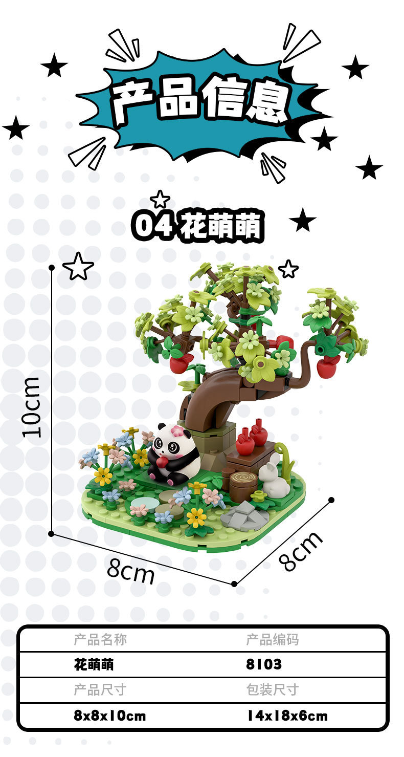 Weilezi 작은 입자 팬더 꽃 매일 썩은 시리즈 어린이 조립 퍼즐 빌딩 블록 생일 선물 도매스토어 가기