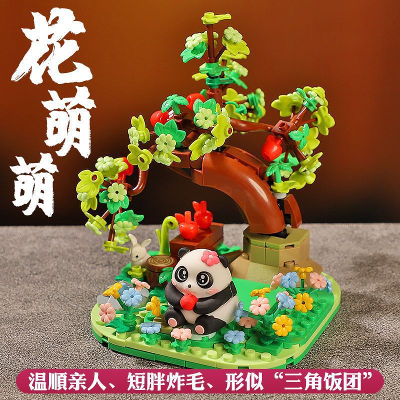 Weilezi 작은 입자 팬더 꽃 매일 썩은 시리즈 어린이 조립 퍼즐 빌딩 블록 생일 선물 도매