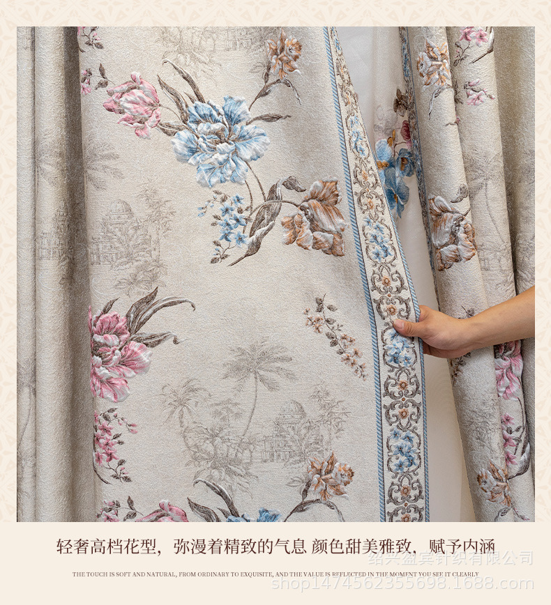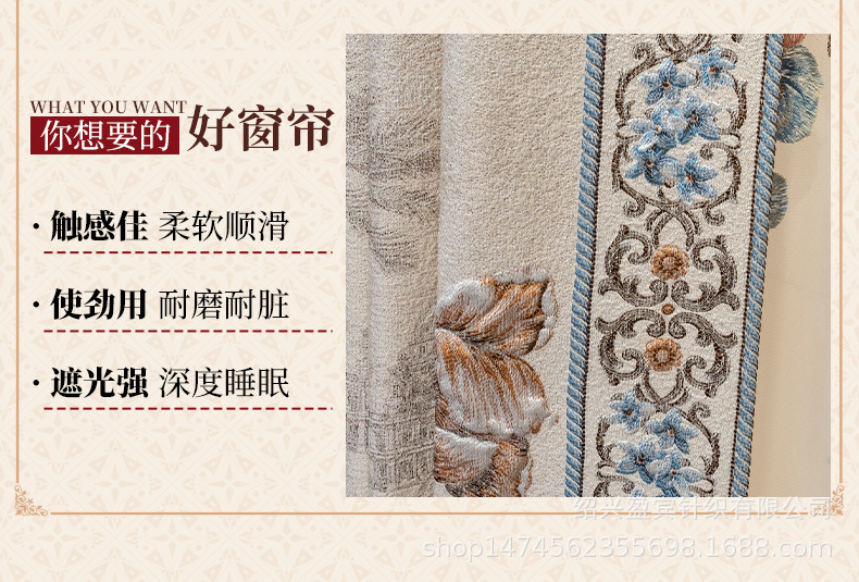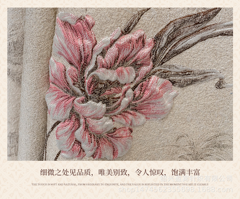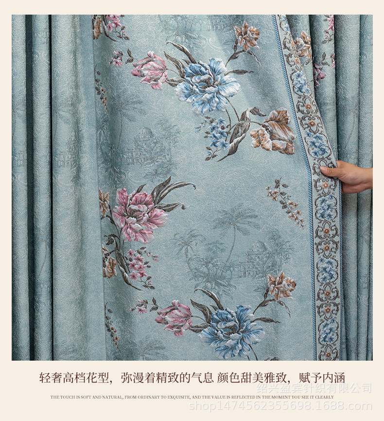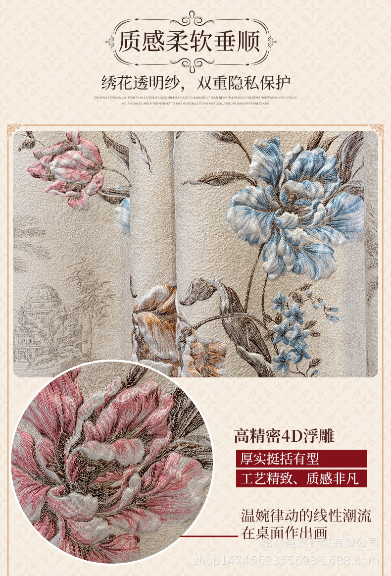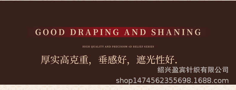 Shaoxing Keqiao 커튼은 새로운 고정밀 4D 대형 구호 커튼 럭셔리 라이트 럭셔리 인기있는 자카드 커튼 천을 완성했습니다.스토어 가기