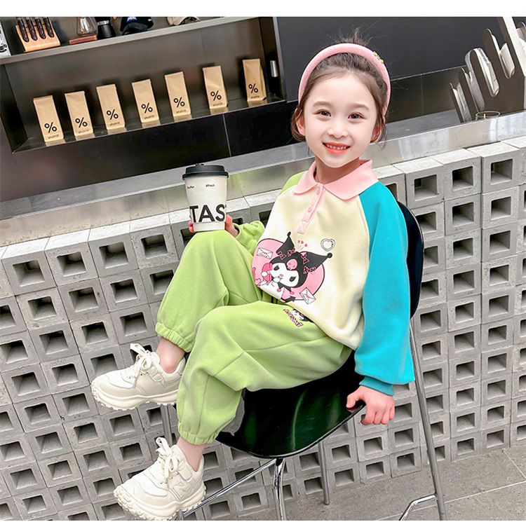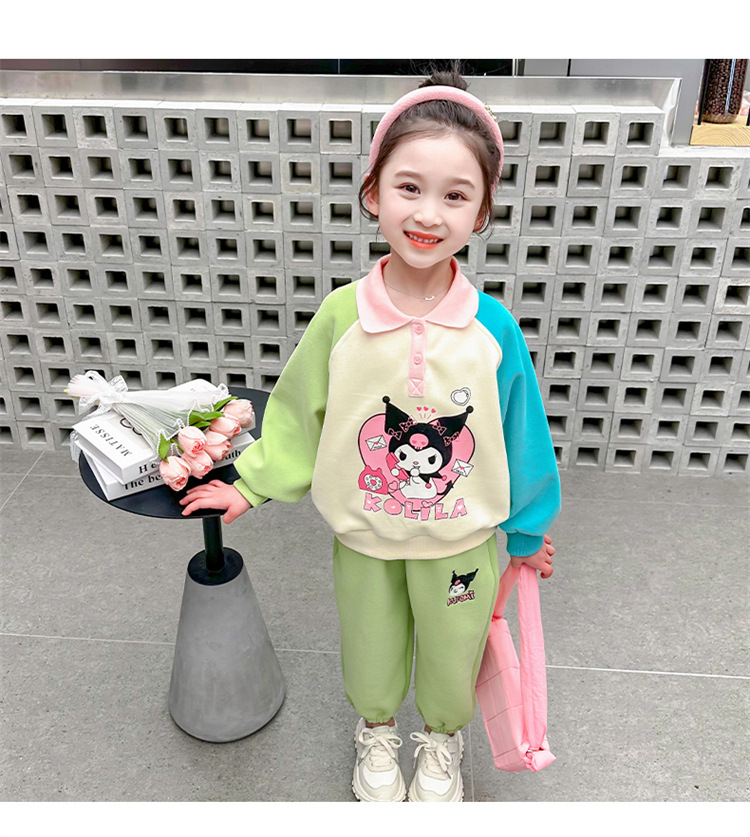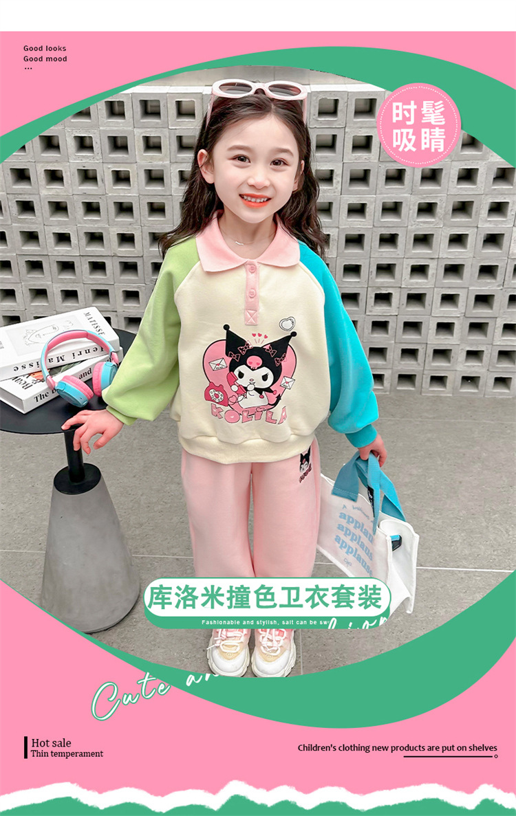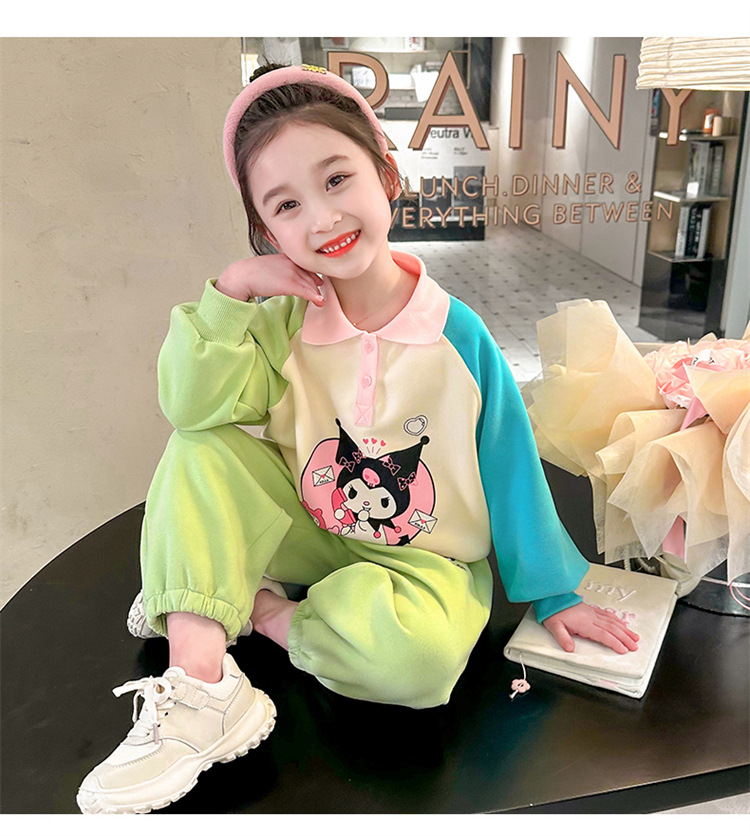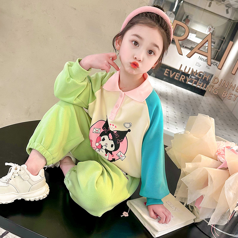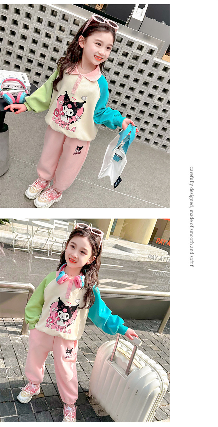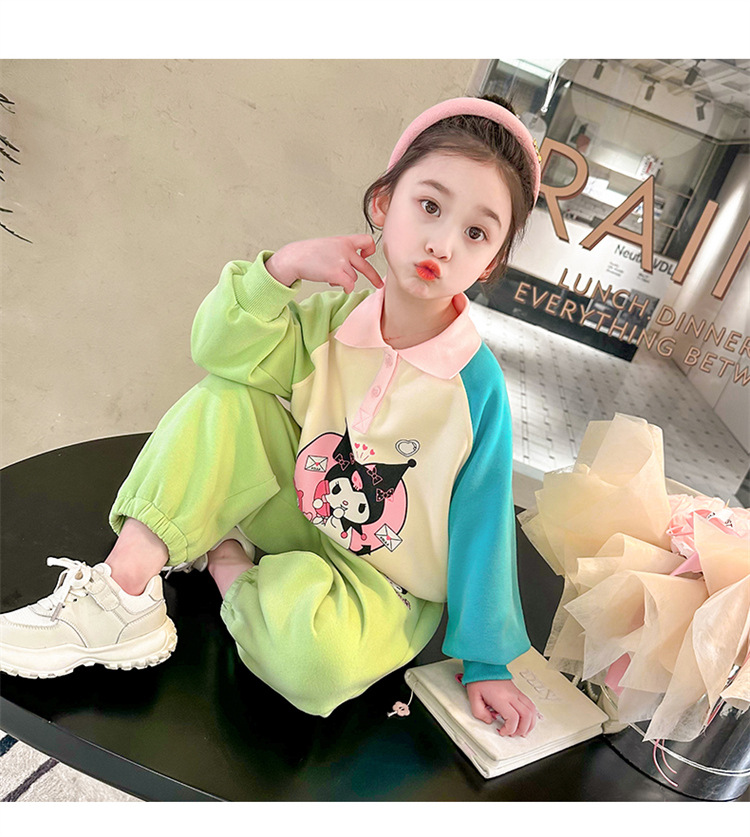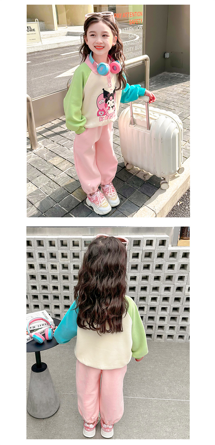 여아 만화 캐릭터 배색 스웨트셔츠 세트 2026 봄 한국 스타일 투피스 세트 아동복 트렌디한 한국 스타일 아동복