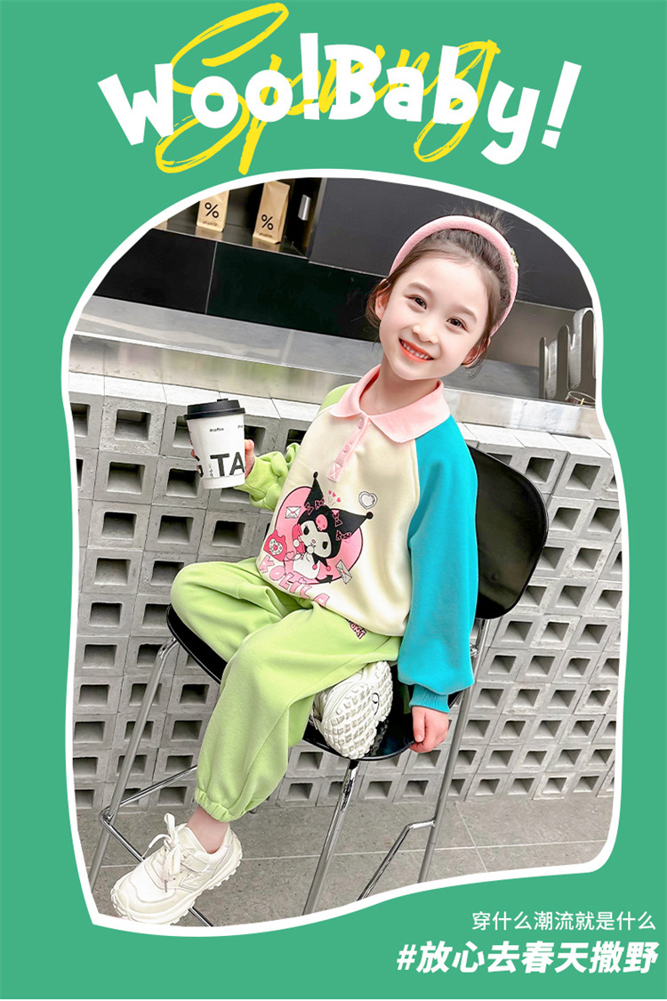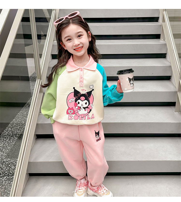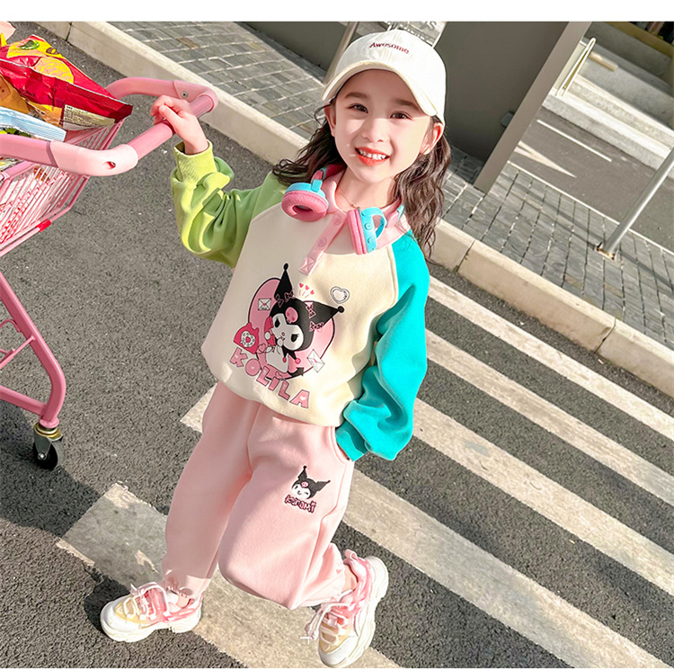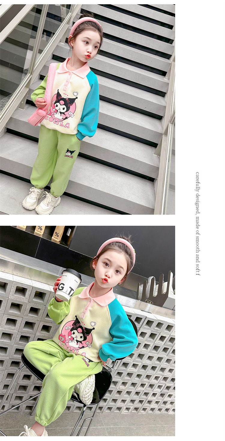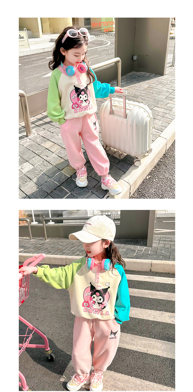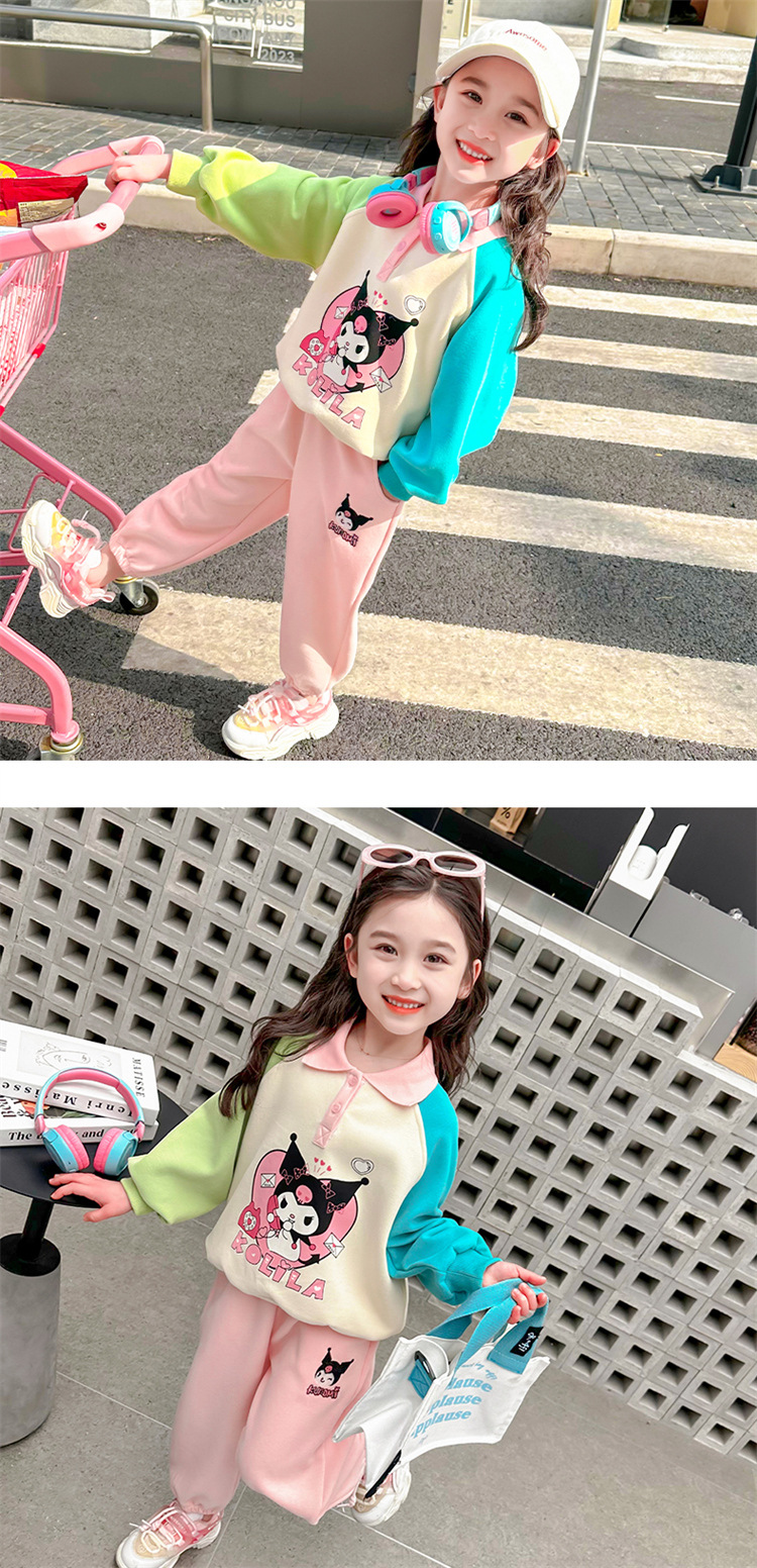여아 만화 캐릭터 배색 스웨트셔츠 세트 2026 봄 한국 스타일 투피스 세트 아동복 트렌디한 한국 스타일 아동복