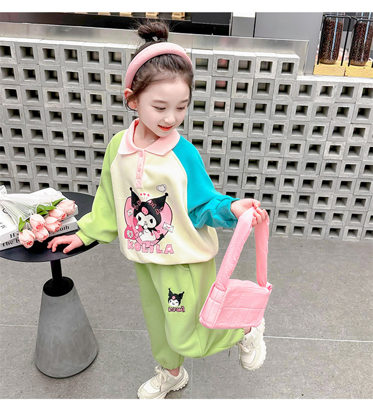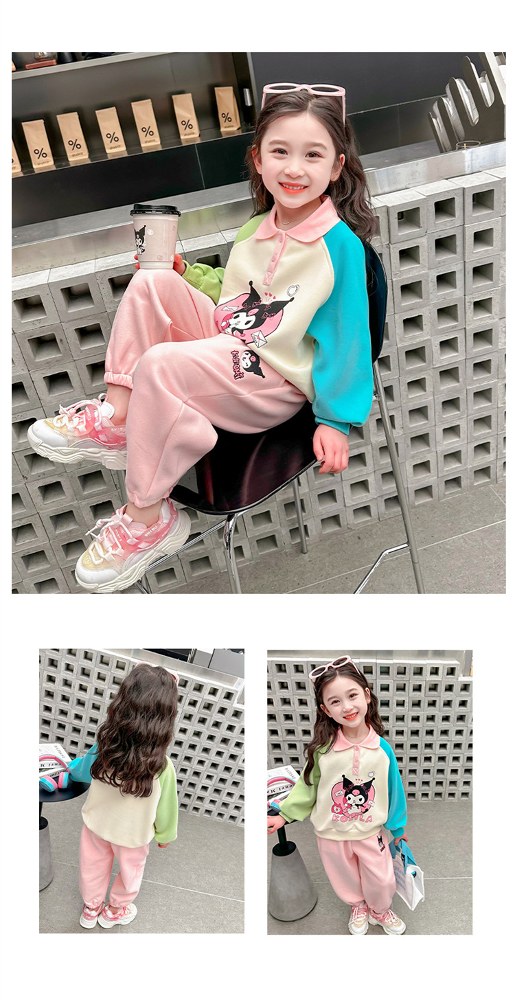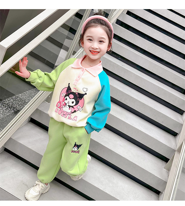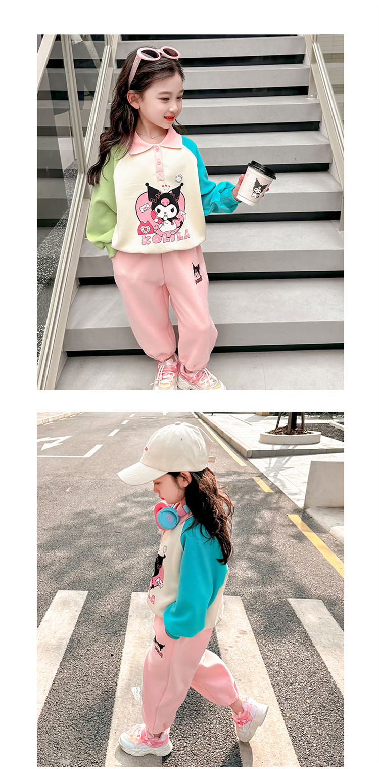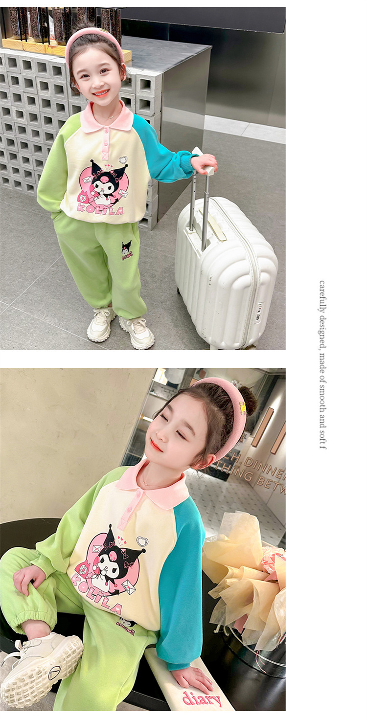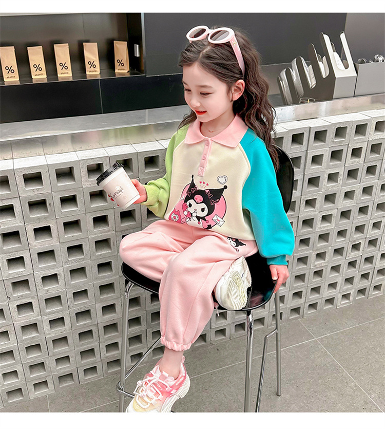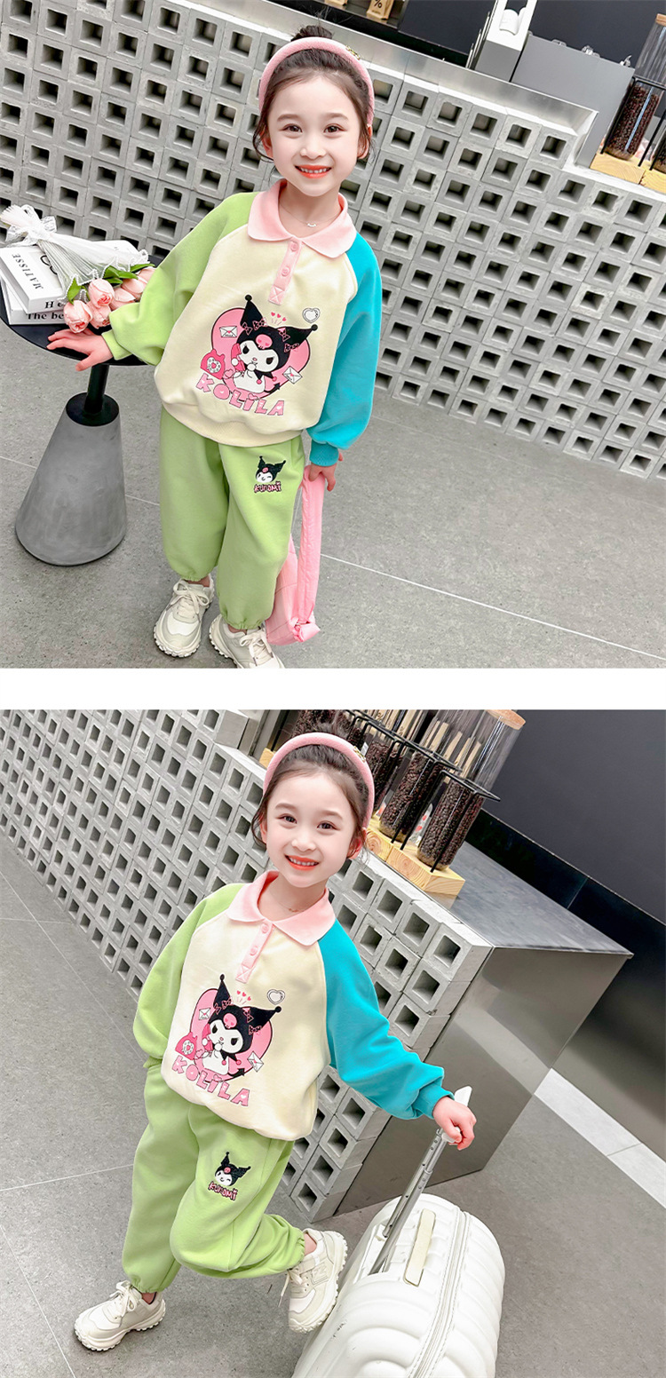 여아 만화 캐릭터 배색 스웨트셔츠 세트 2026 봄 한국 스타일 투피스 세트 아동복 트렌디한 한국 스타일 아동복