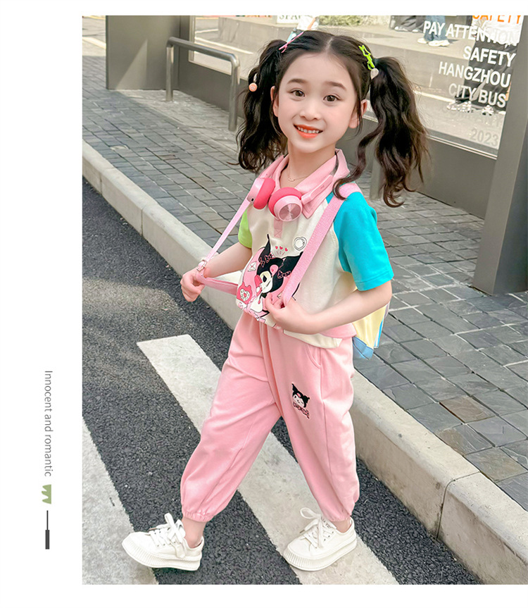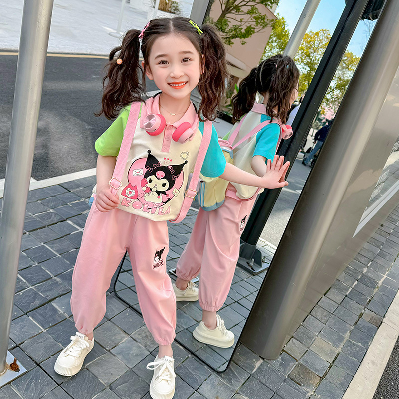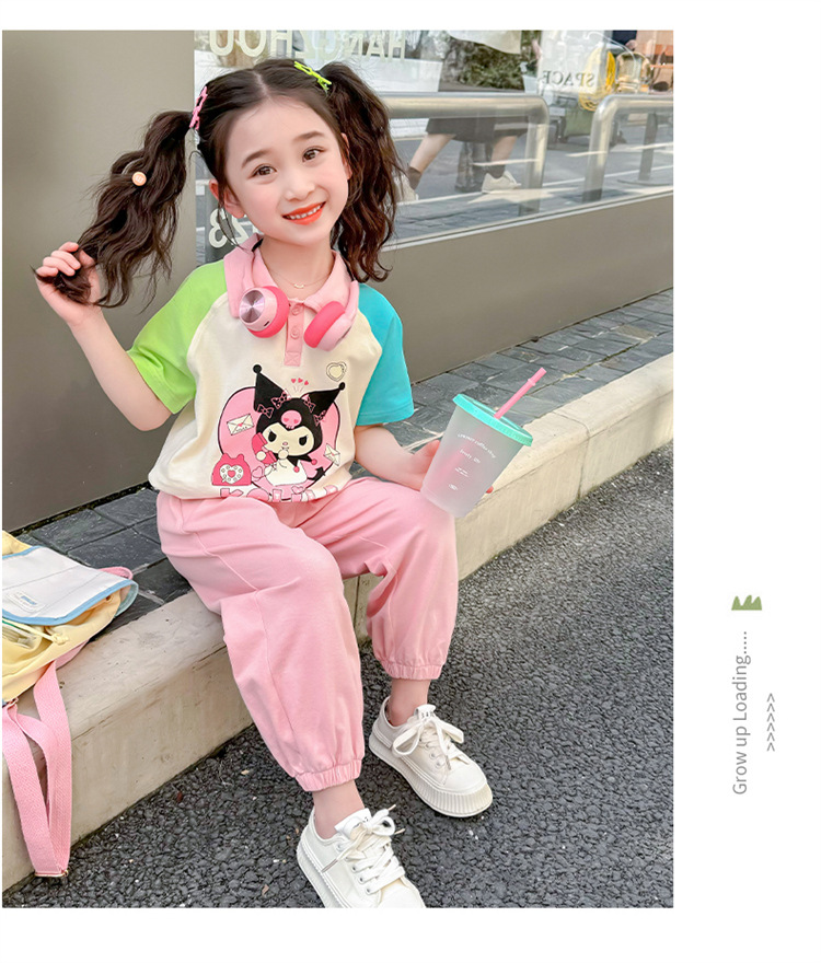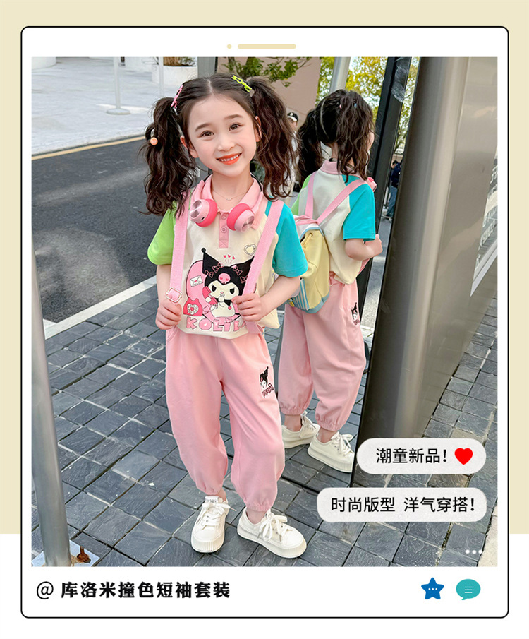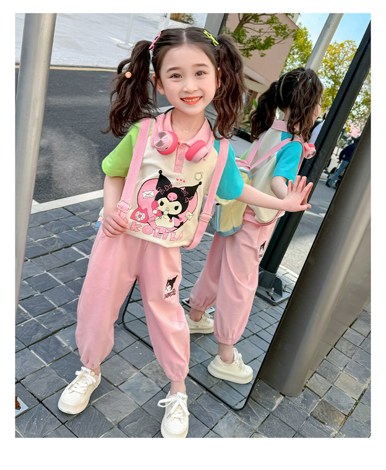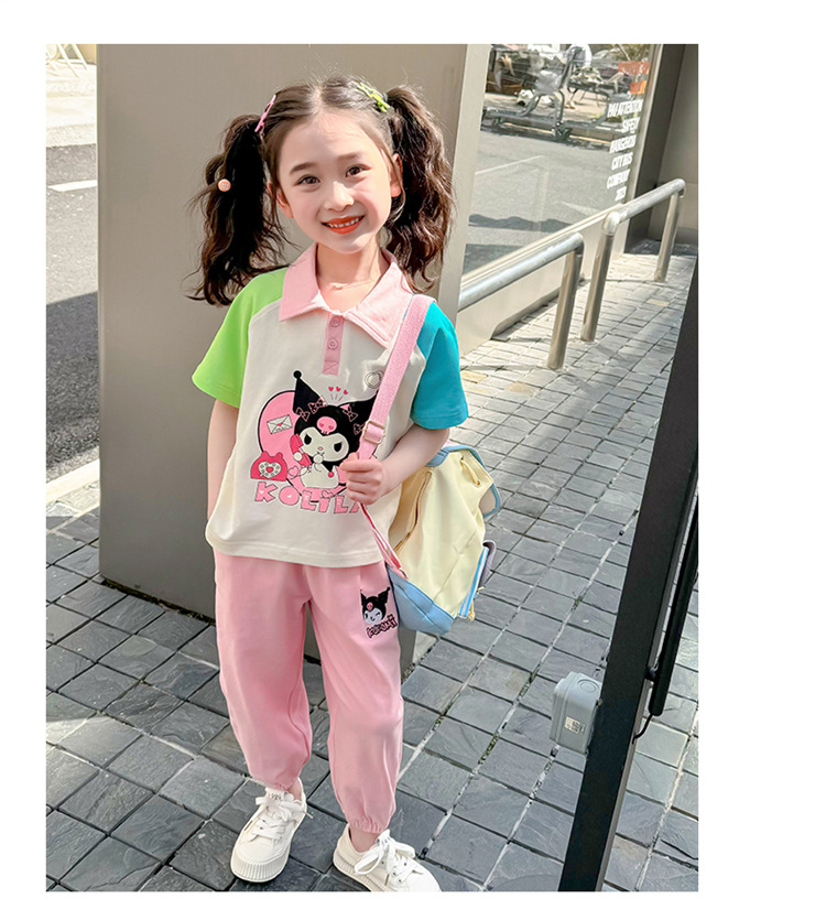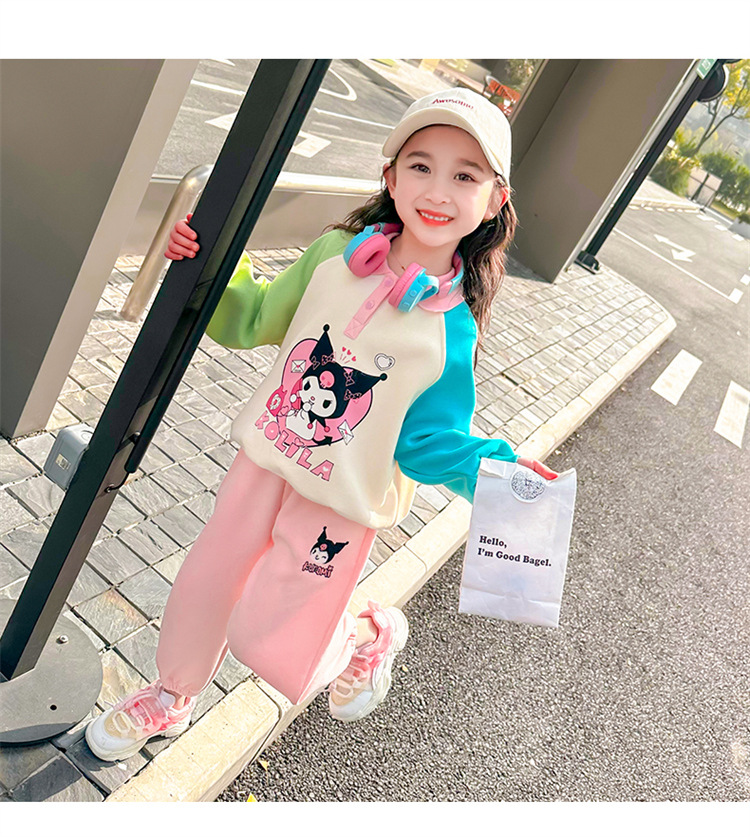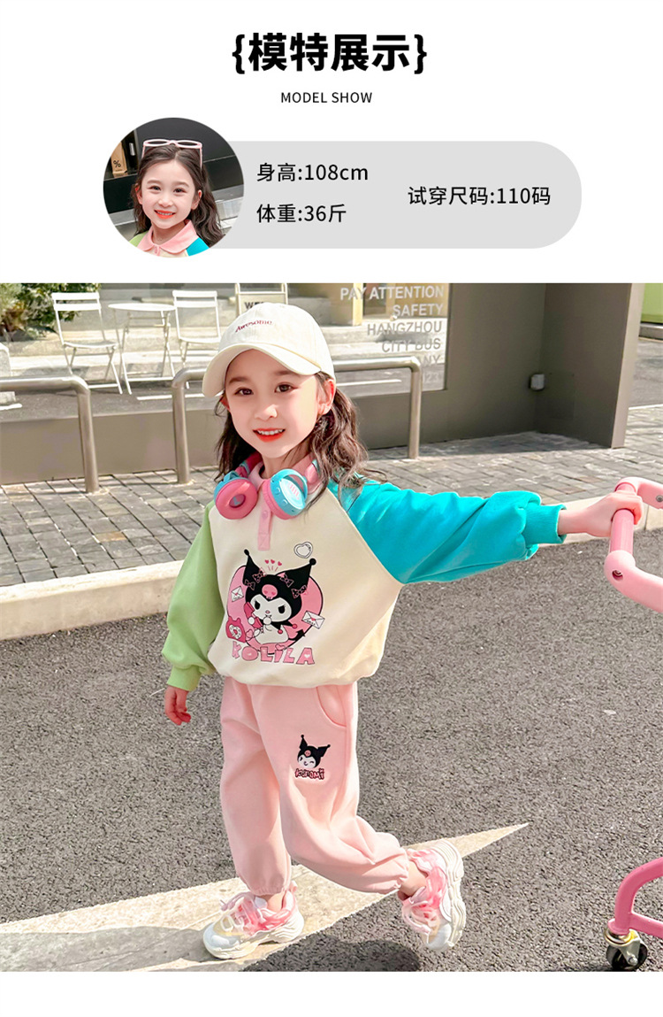 여아 만화 캐릭터 배색 스웨트셔츠 세트 2026 봄 한국 스타일 투피스 세트 아동복 트렌디한 한국 스타일 아동복