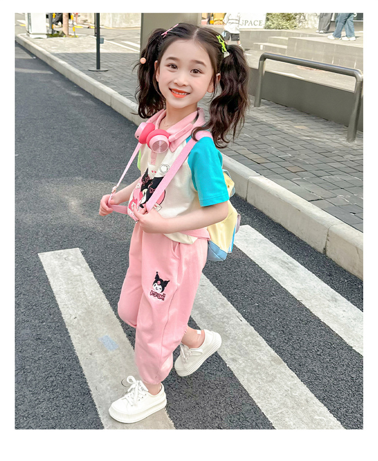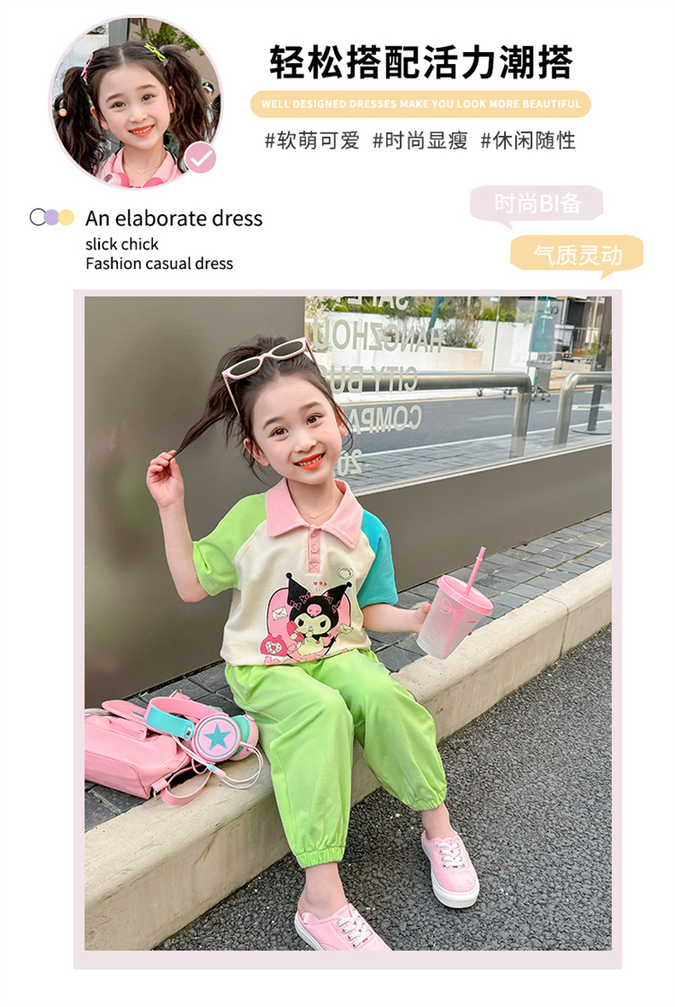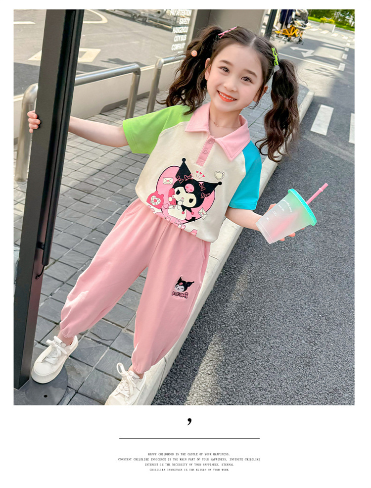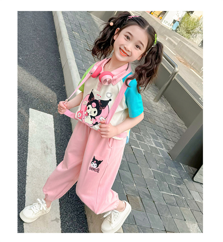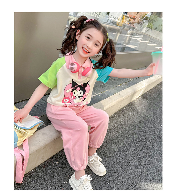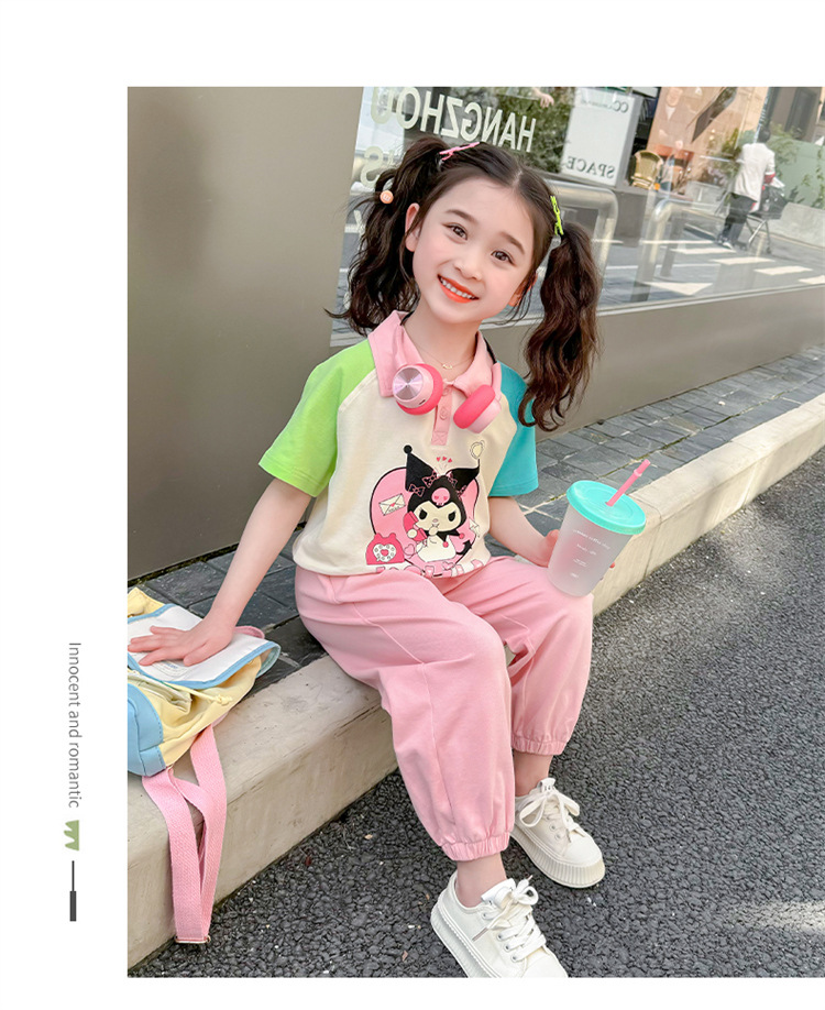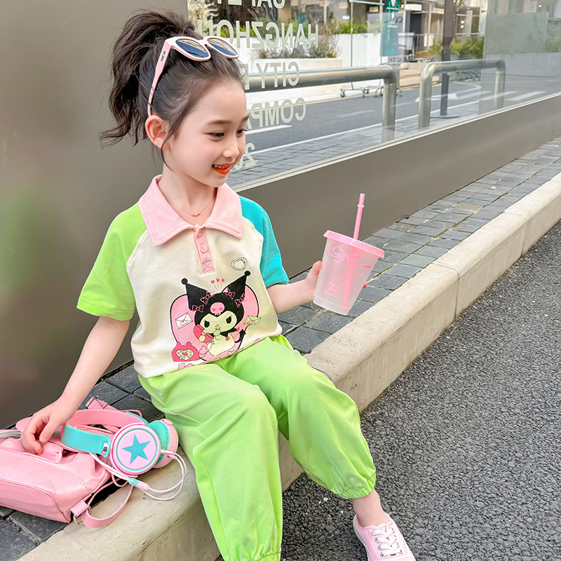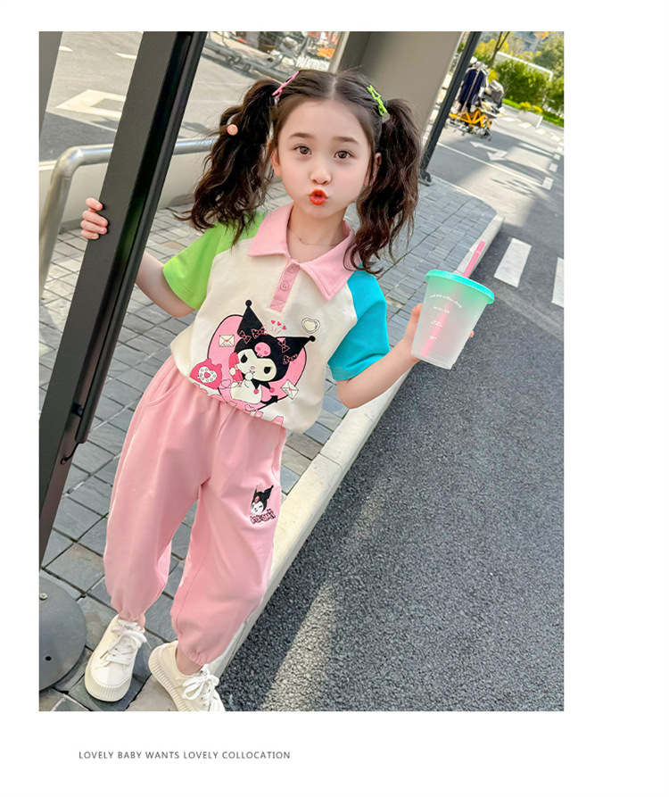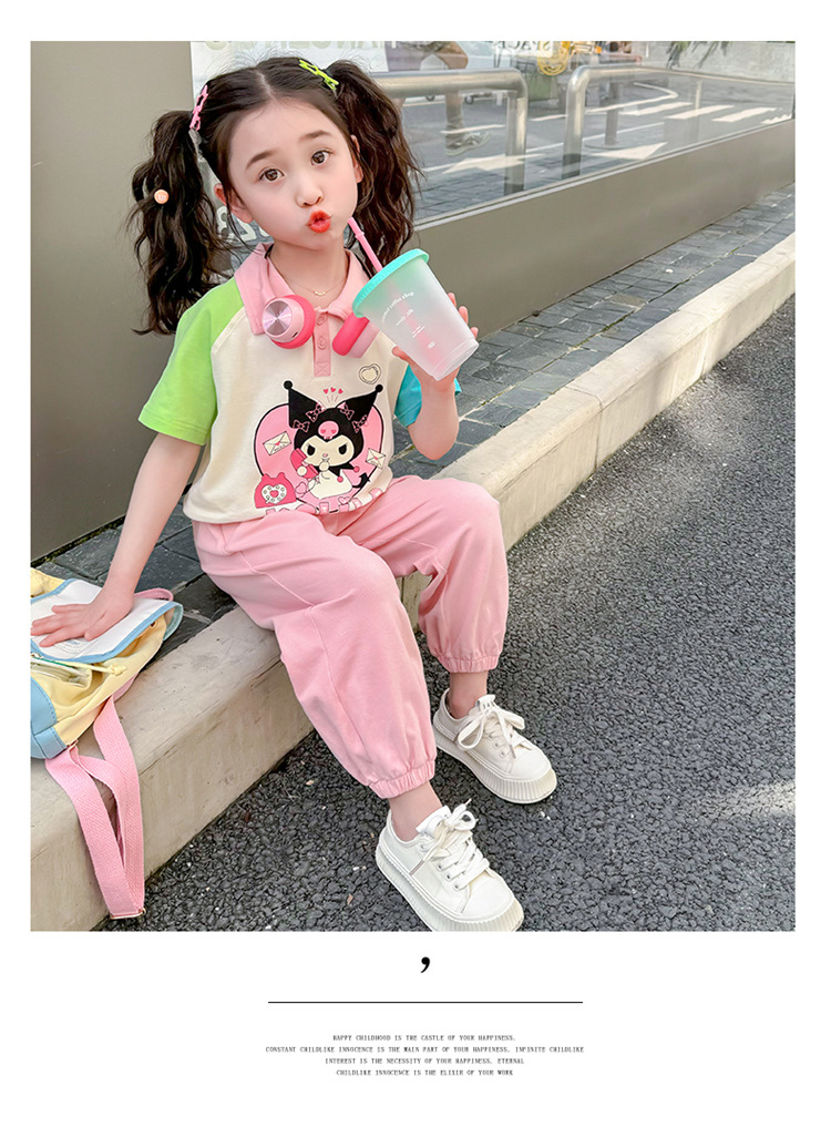 여아 만화 캐릭터 배색 스웨트셔츠 세트 2026 봄 한국 스타일 투피스 세트 아동복 트렌디한 한국 스타일 아동복