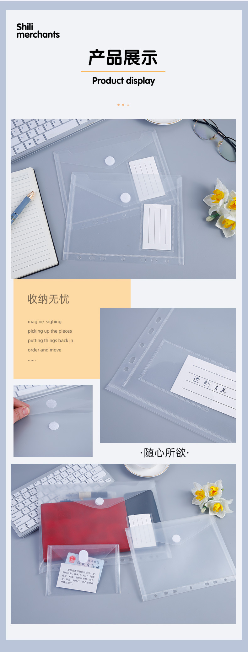 벨크로 파일 가방 투명 11 홀 느슨한 잎 가방 7 홀 느슨한 잎 손 책 저장 카드 가방 다기능 저장 가방스토어 가기