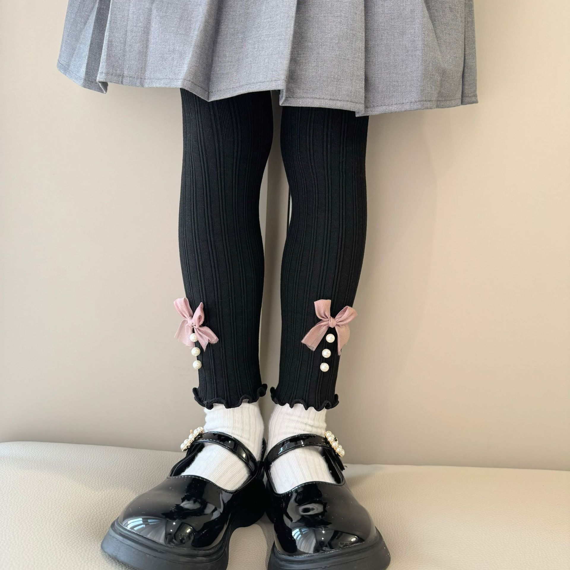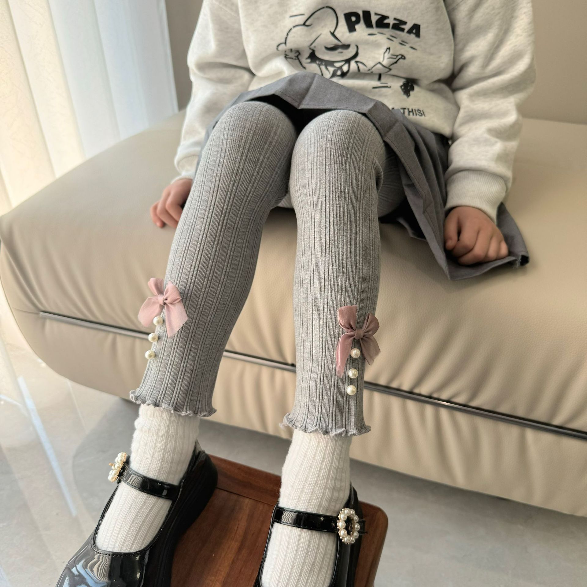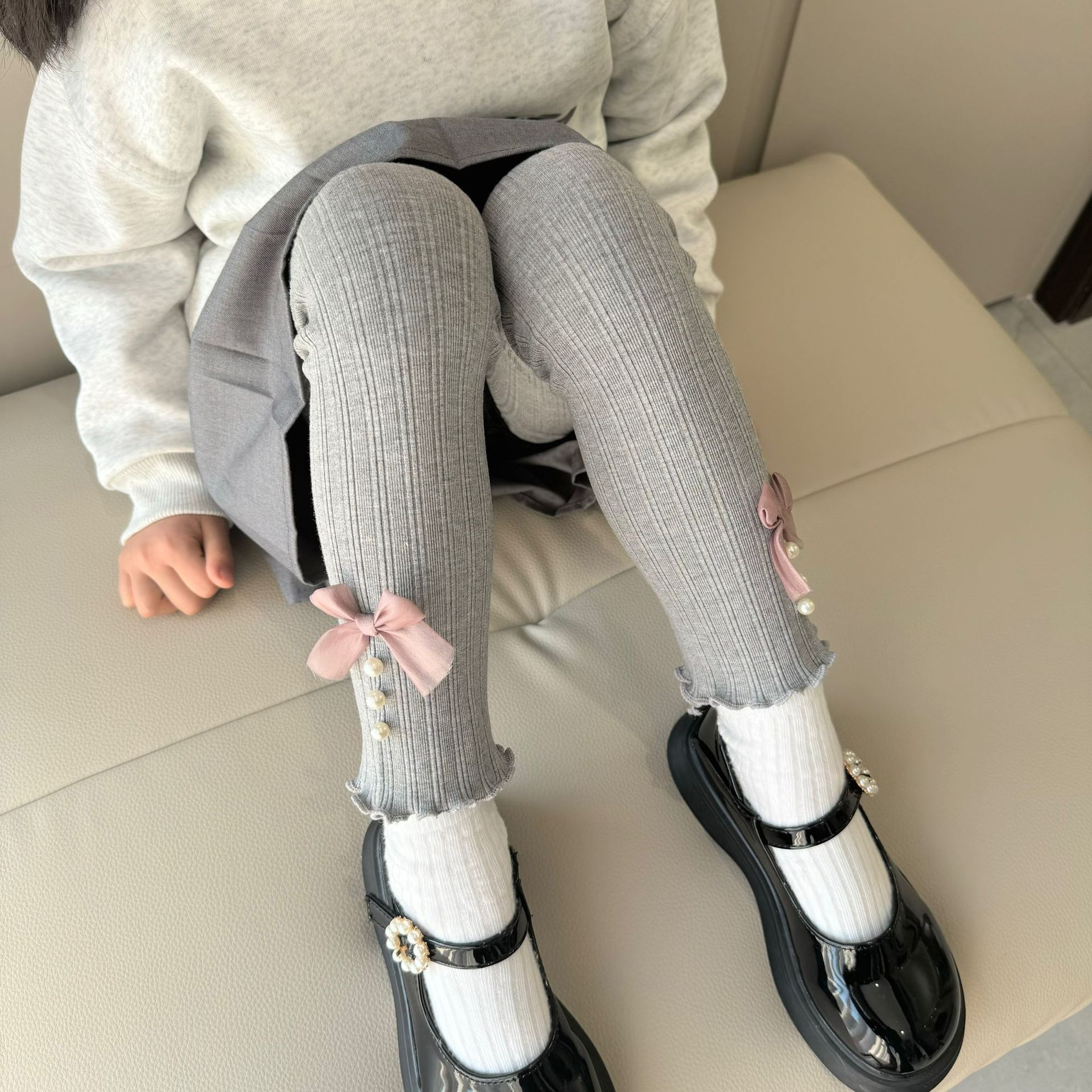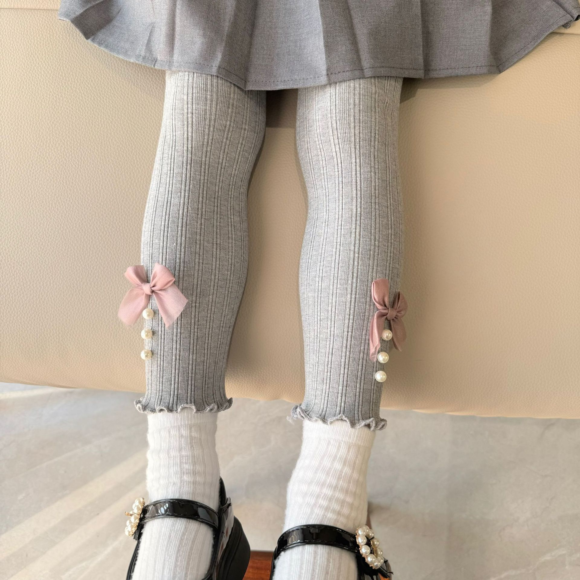 소녀 봄과 가을 레깅스 겉옷 2024 새로운 아기 소녀 어린이 바지 어린이 바지 진주 활스토어 가기
