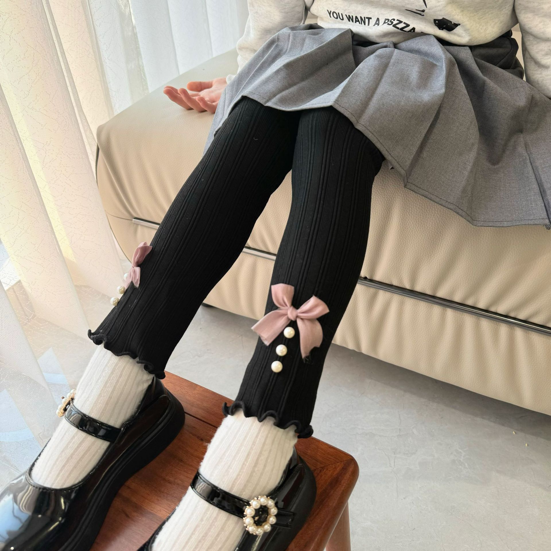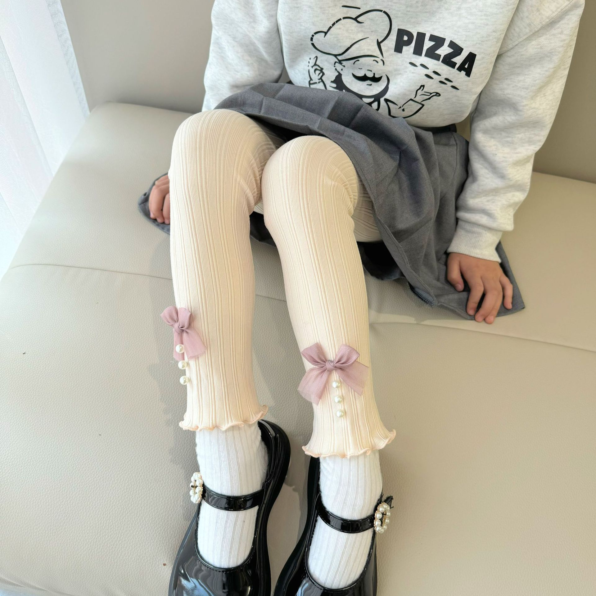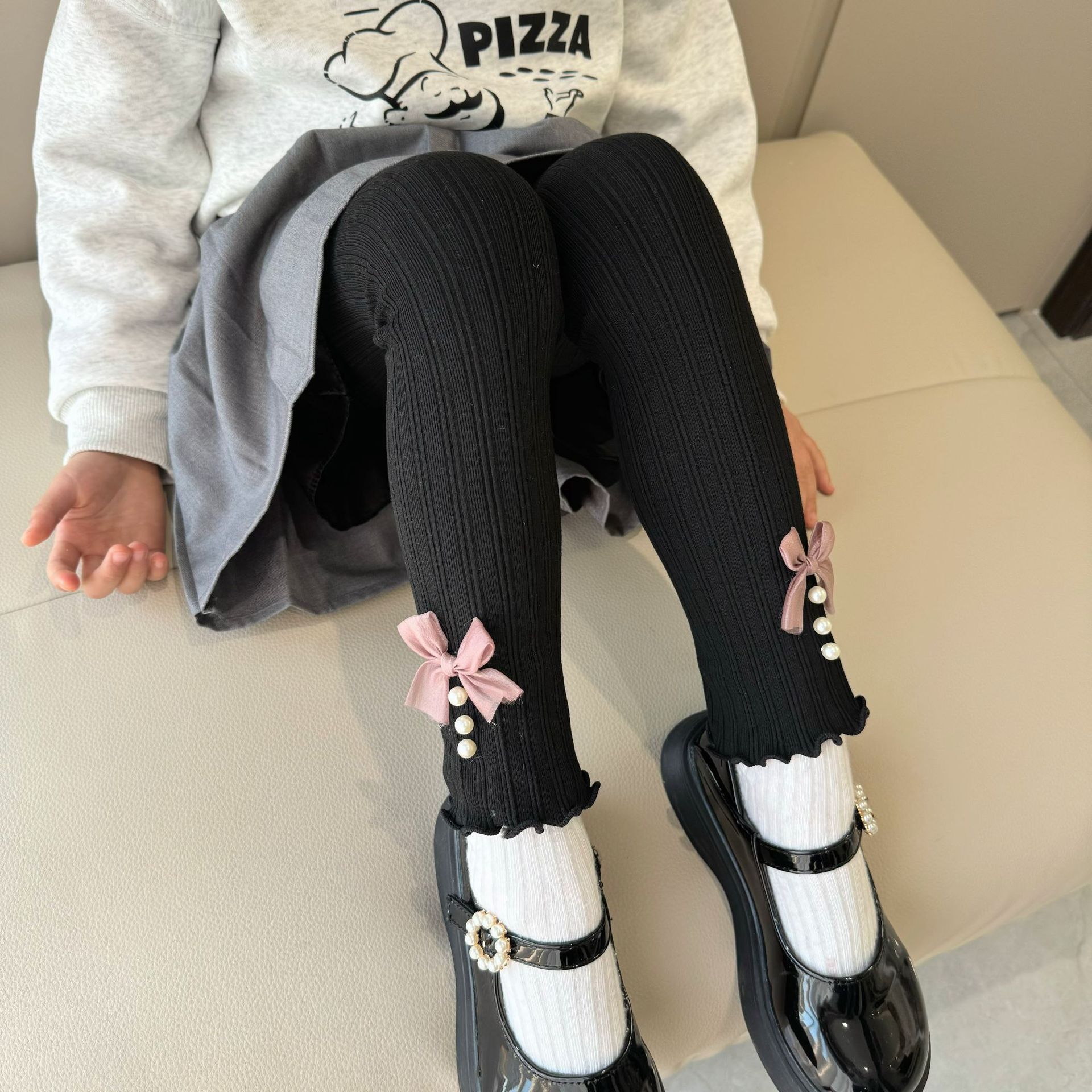 소녀 봄과 가을 레깅스 겉옷 2024 새로운 아기 소녀 어린이 바지 어린이 바지 진주 활스토어 가기